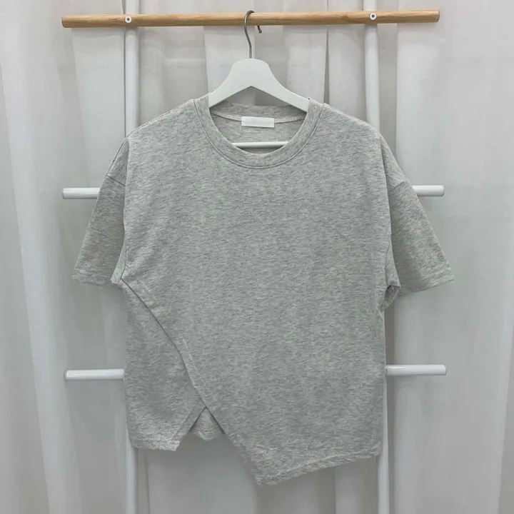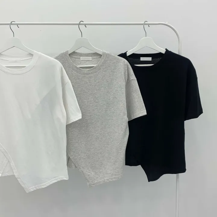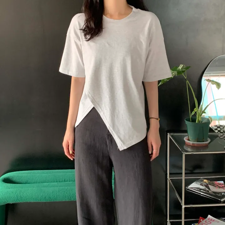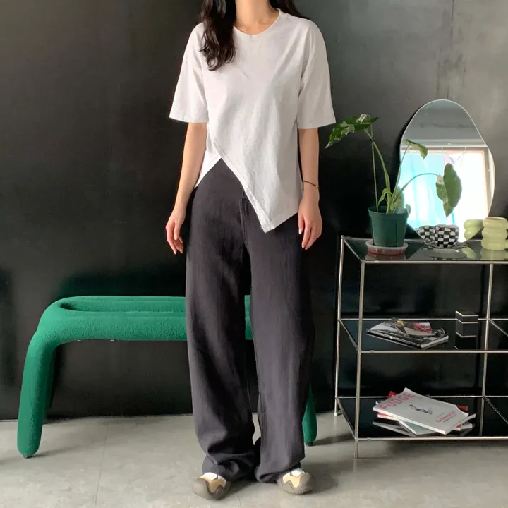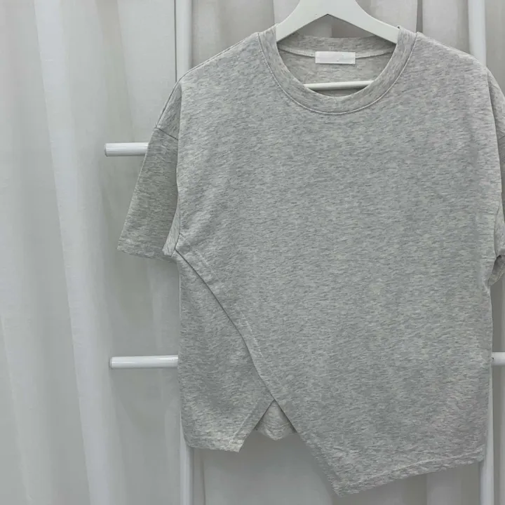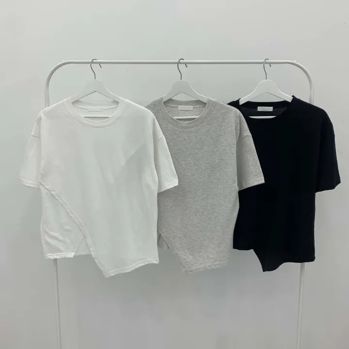 斜めアシンメトリーラウンド半袖Tシャツ(3color)