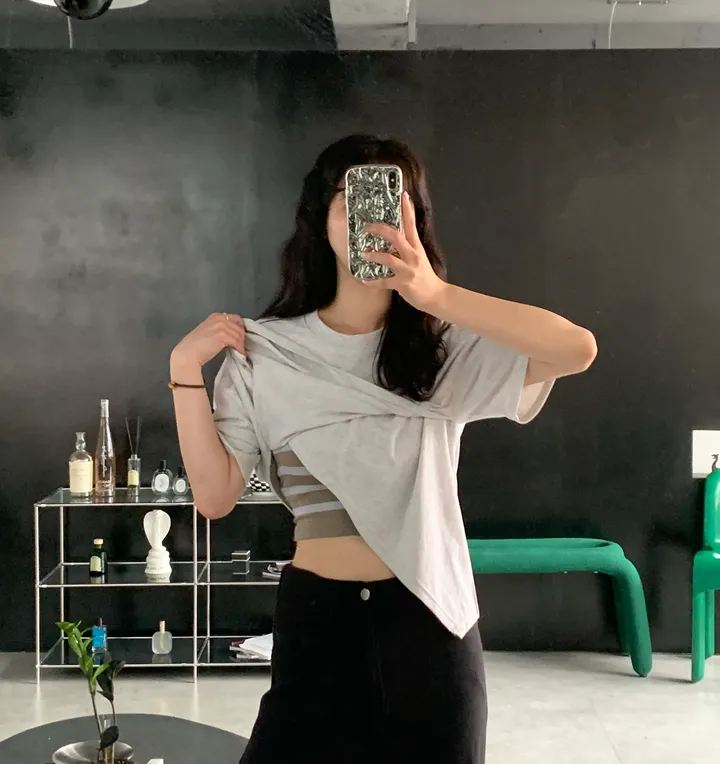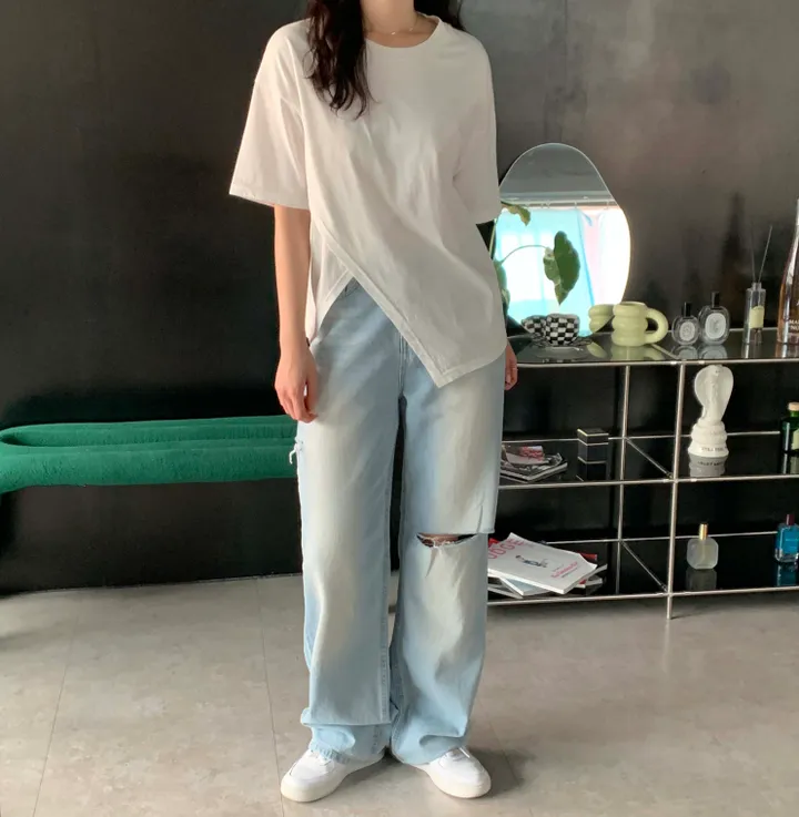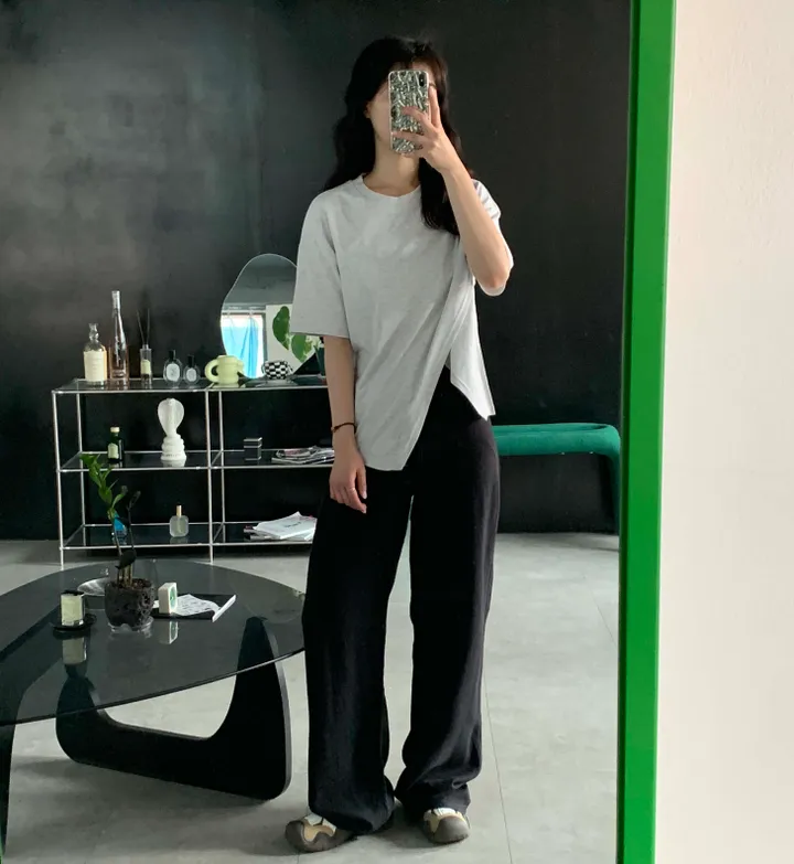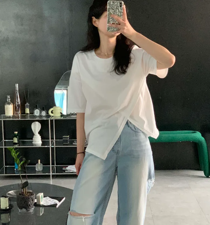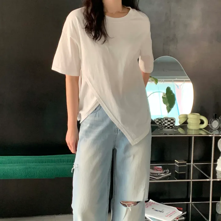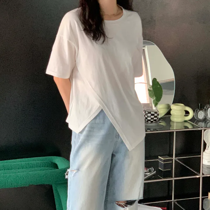 斜めアシンメトリーラウンド半袖Tシャツ(3color)