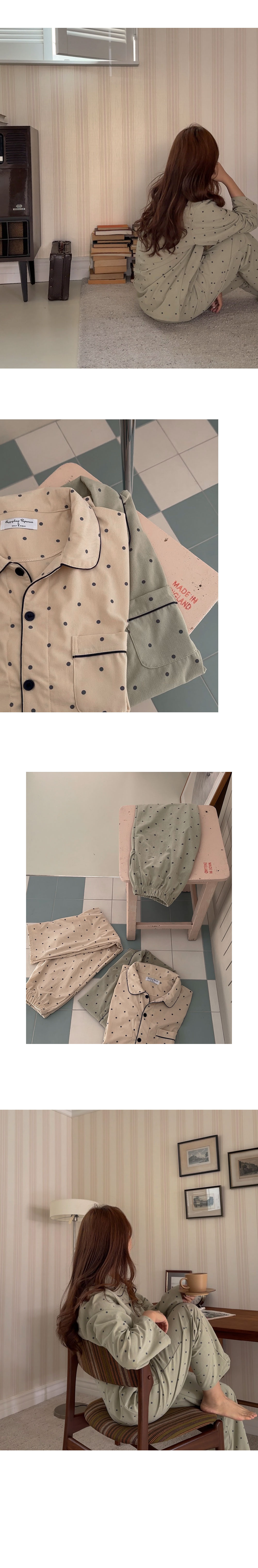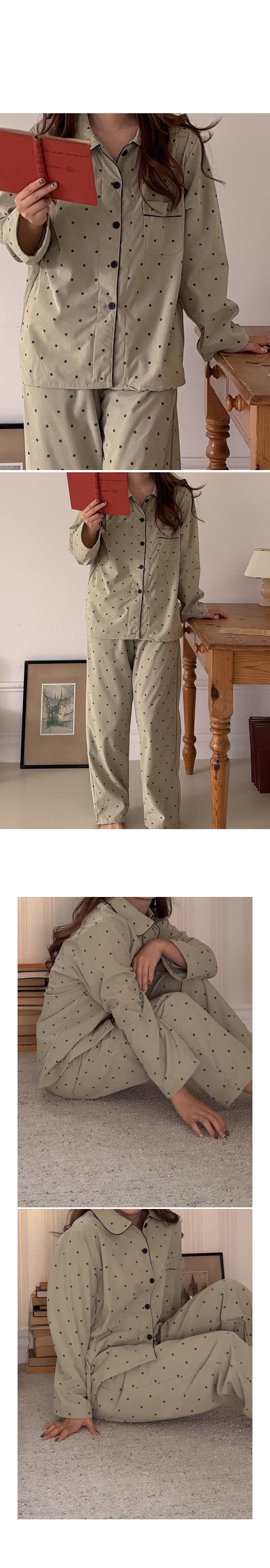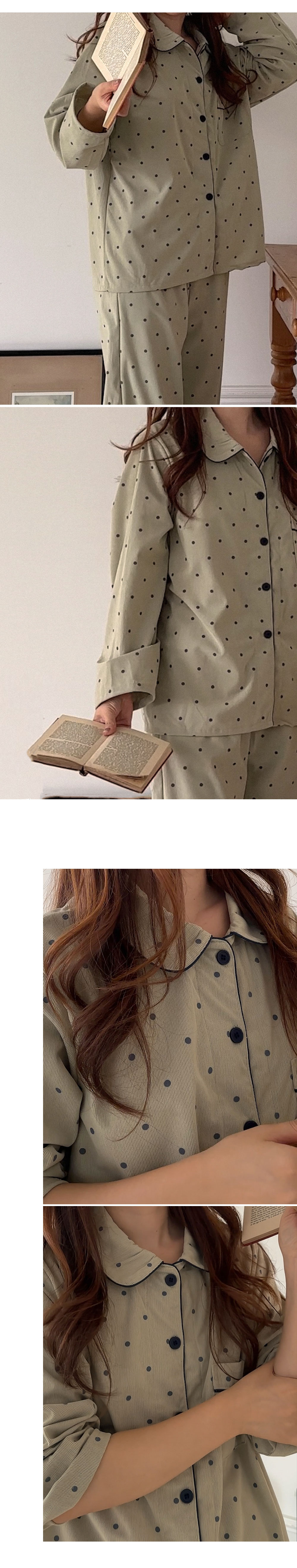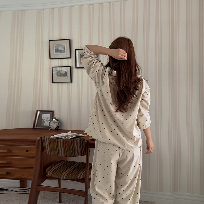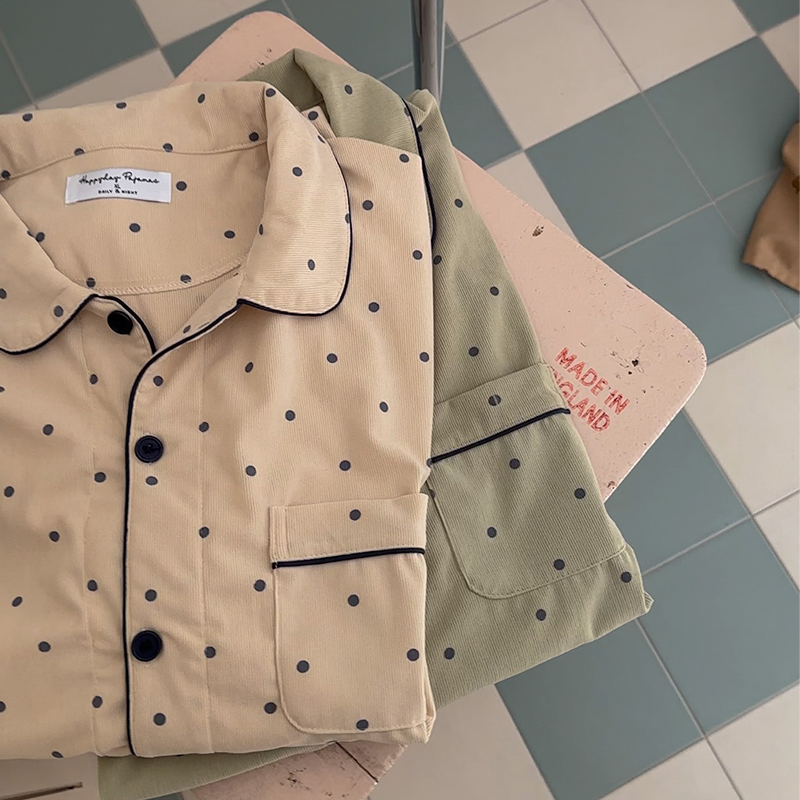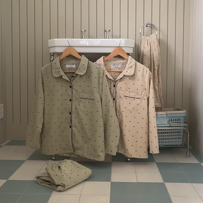 [2color]ドットリブ長袖パジャマセット