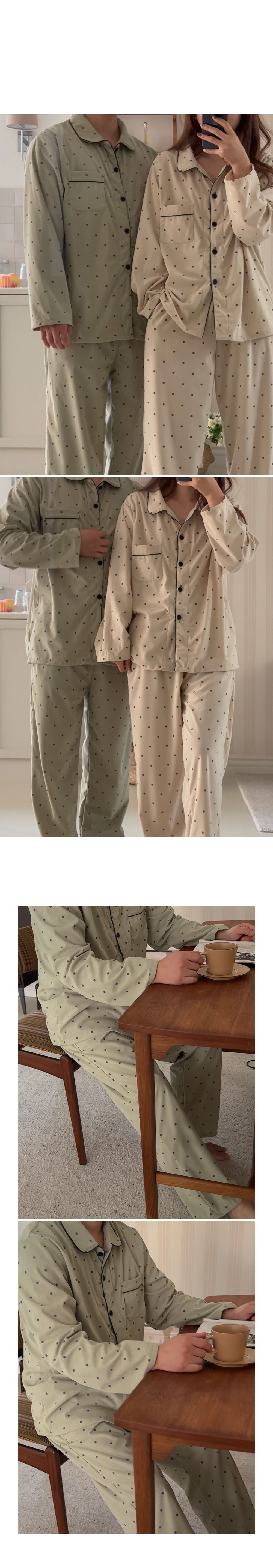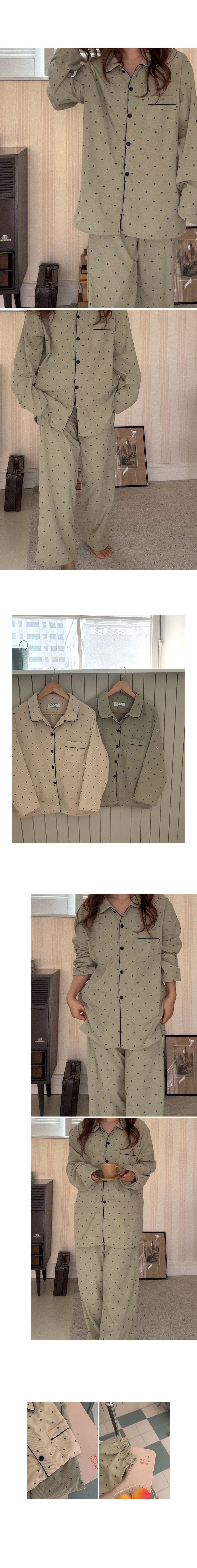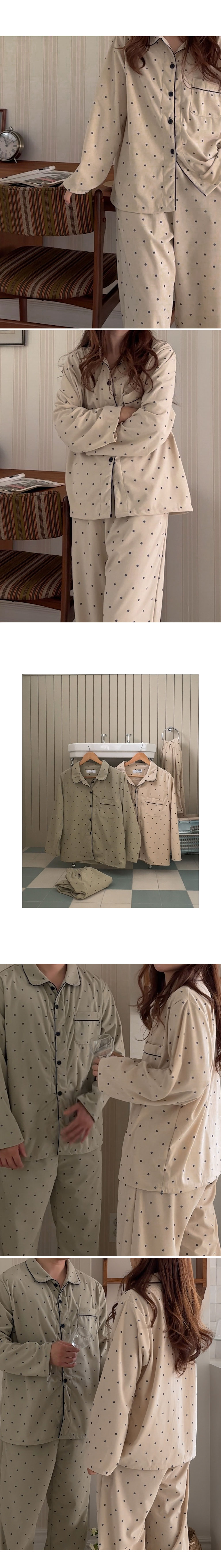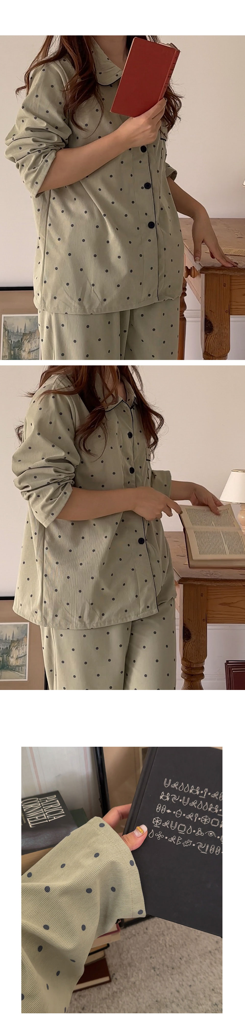 [2color]ドットリブ長袖パジャマセット