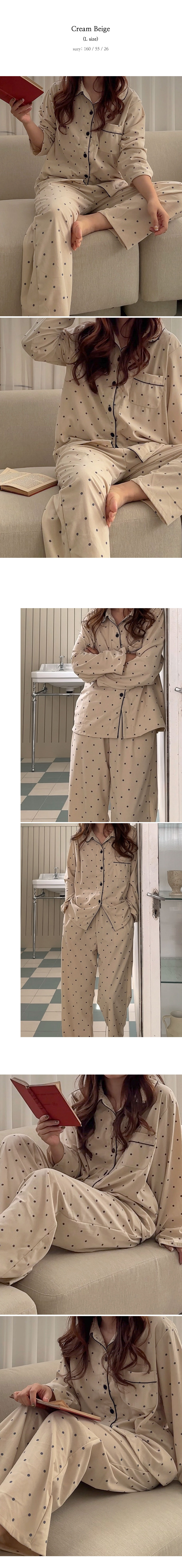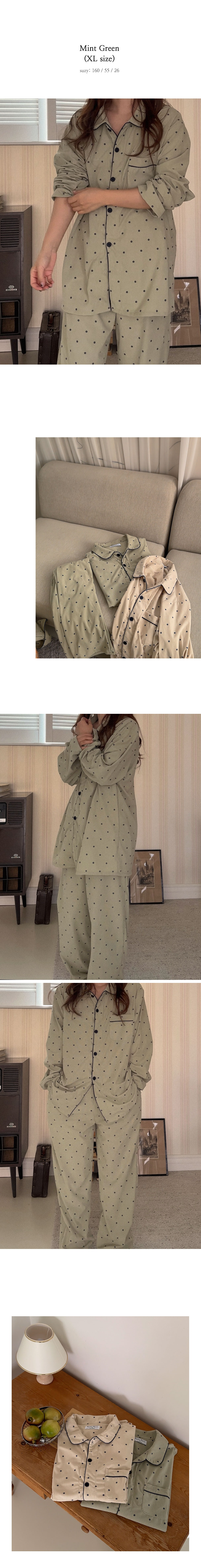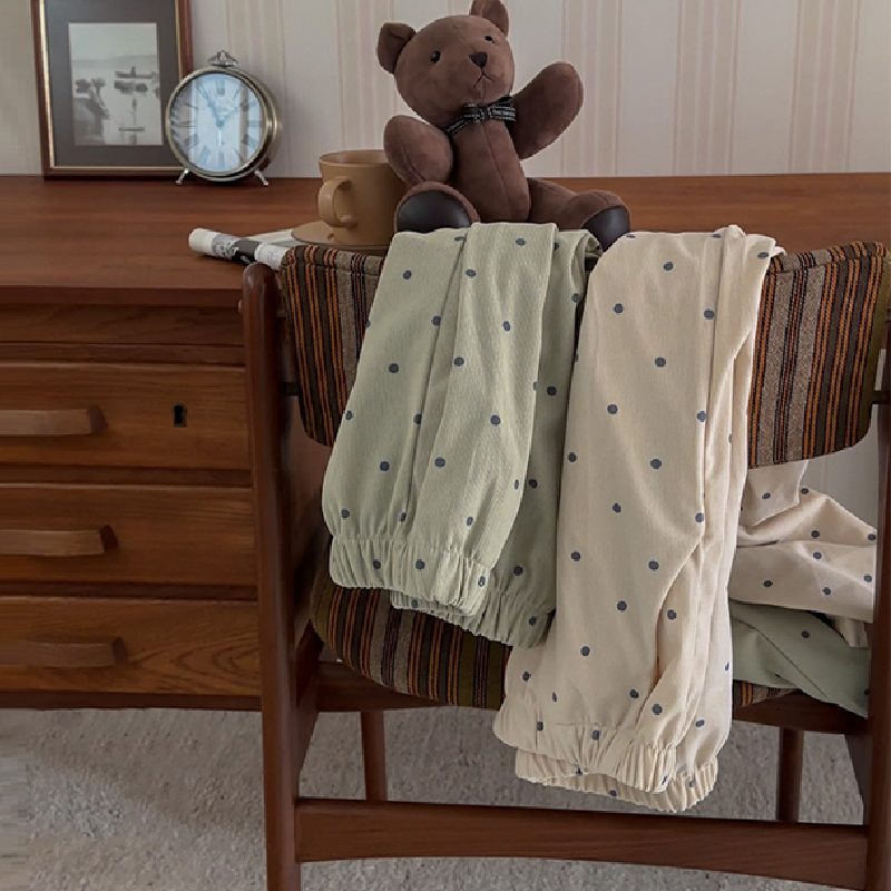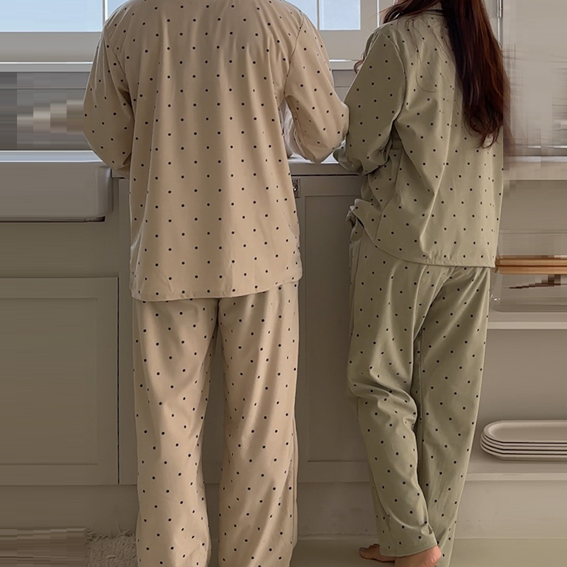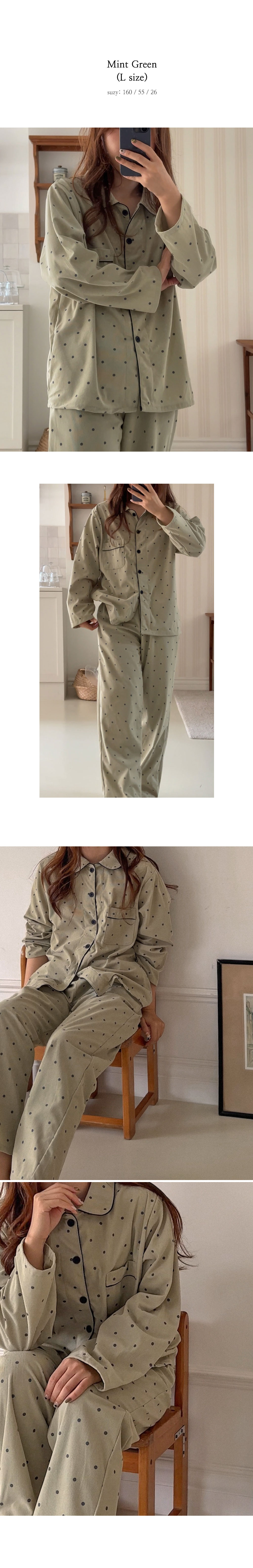 [2color]ドットリブ長袖パジャマセット