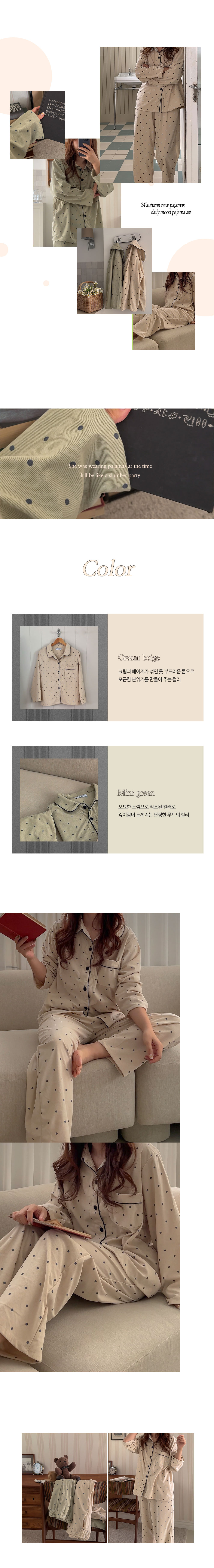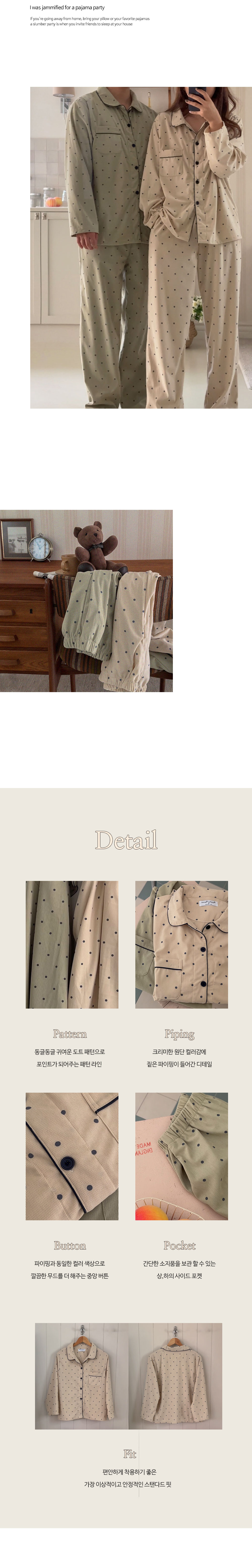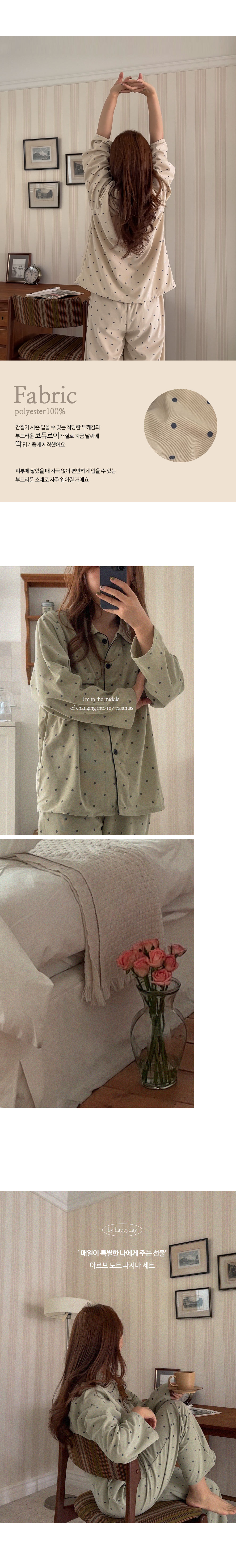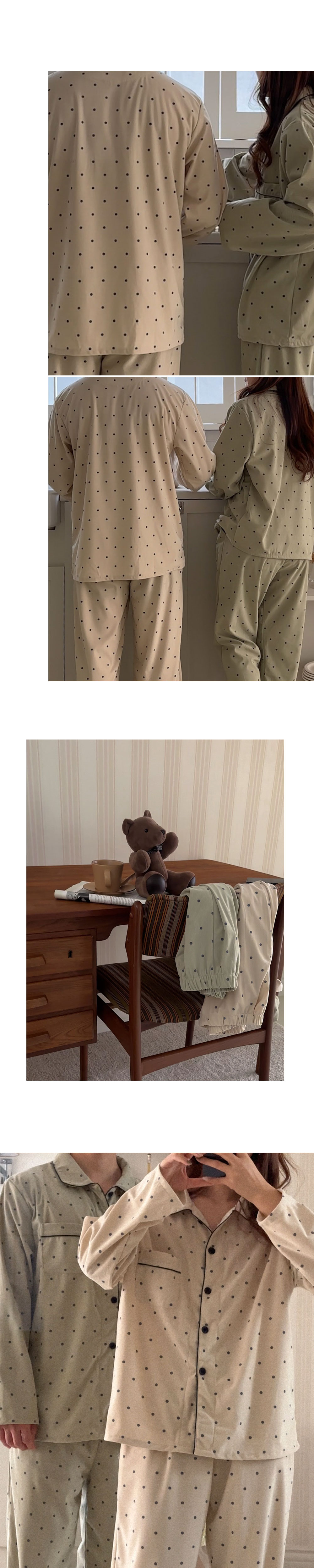 [2color]ドットリブ長袖パジャマセット