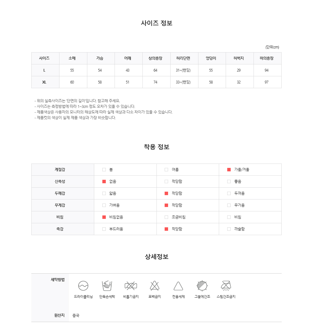 스탠다드 핏으로 제작했어요