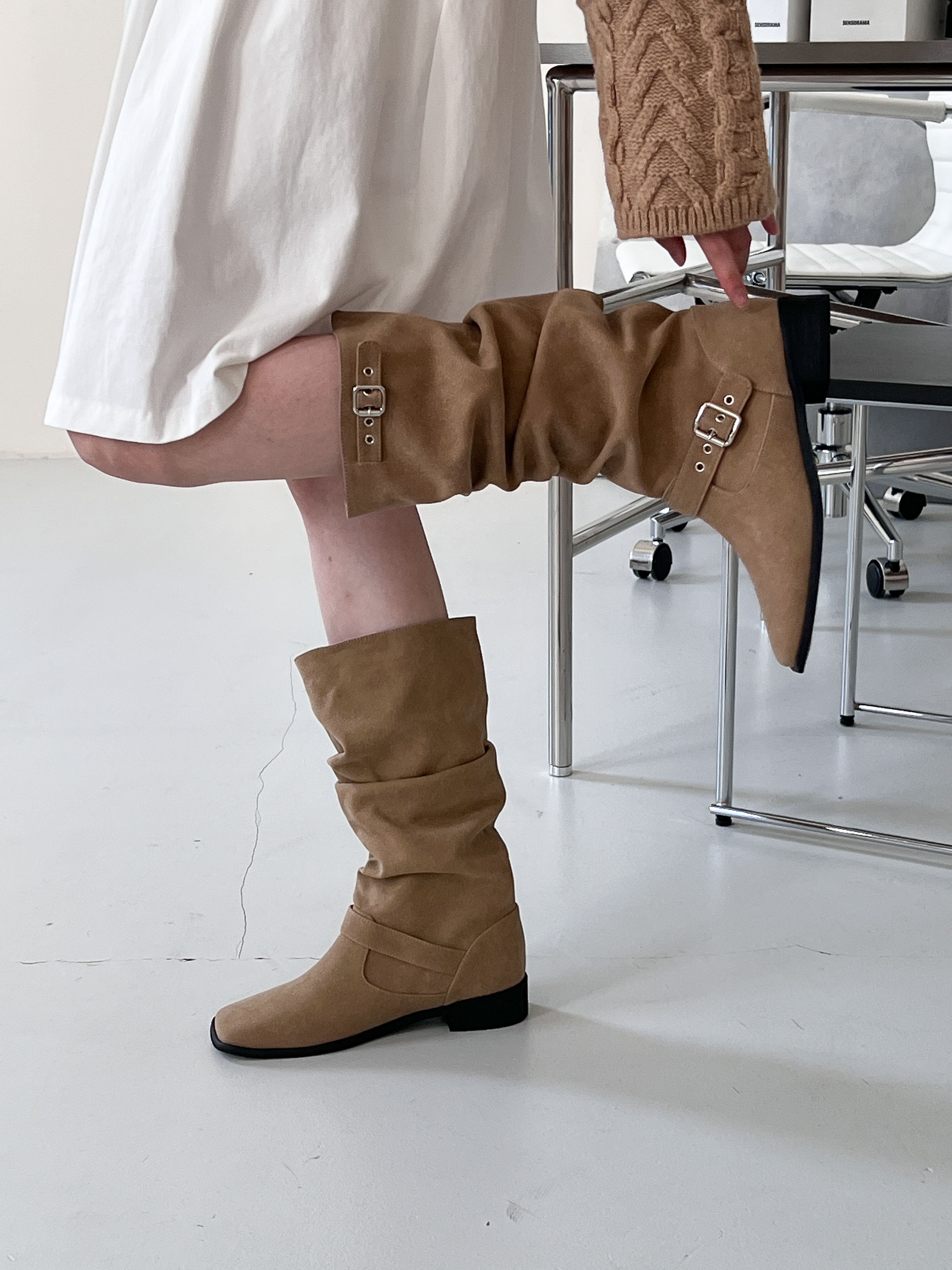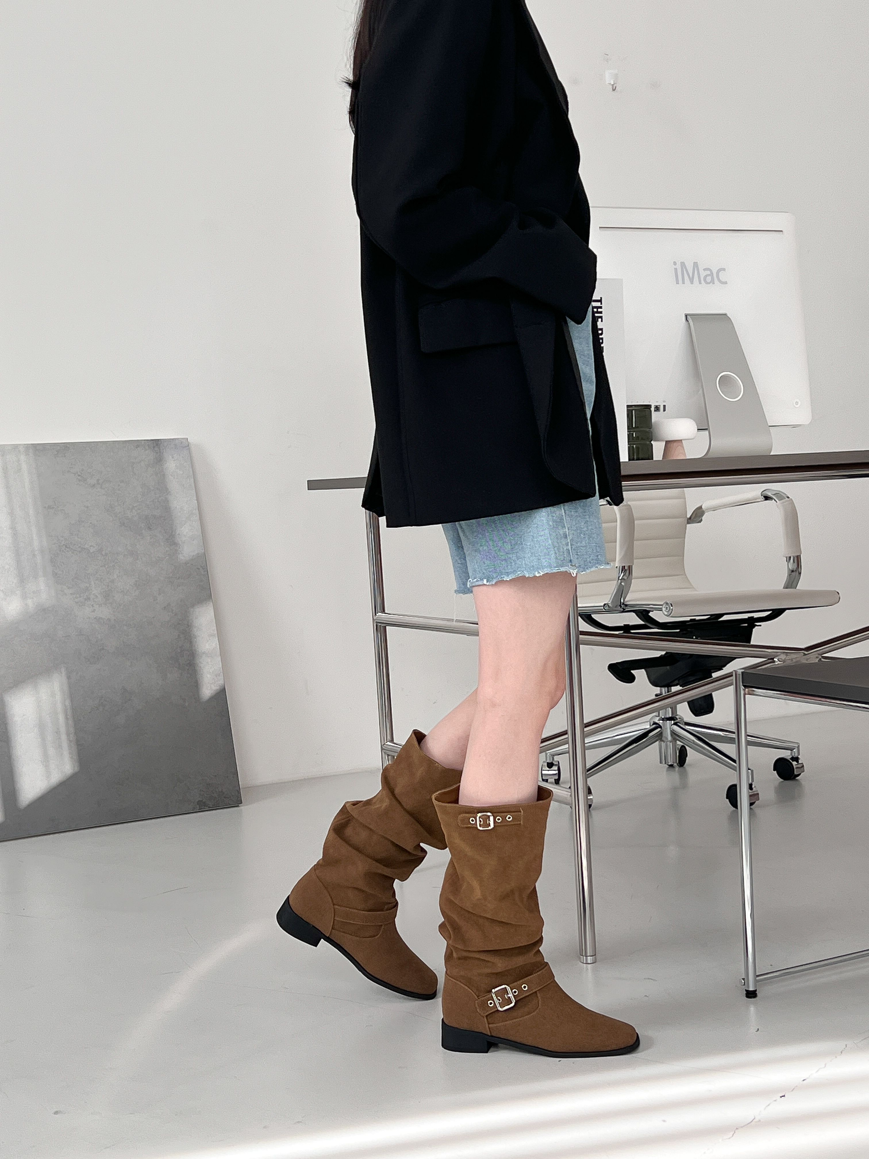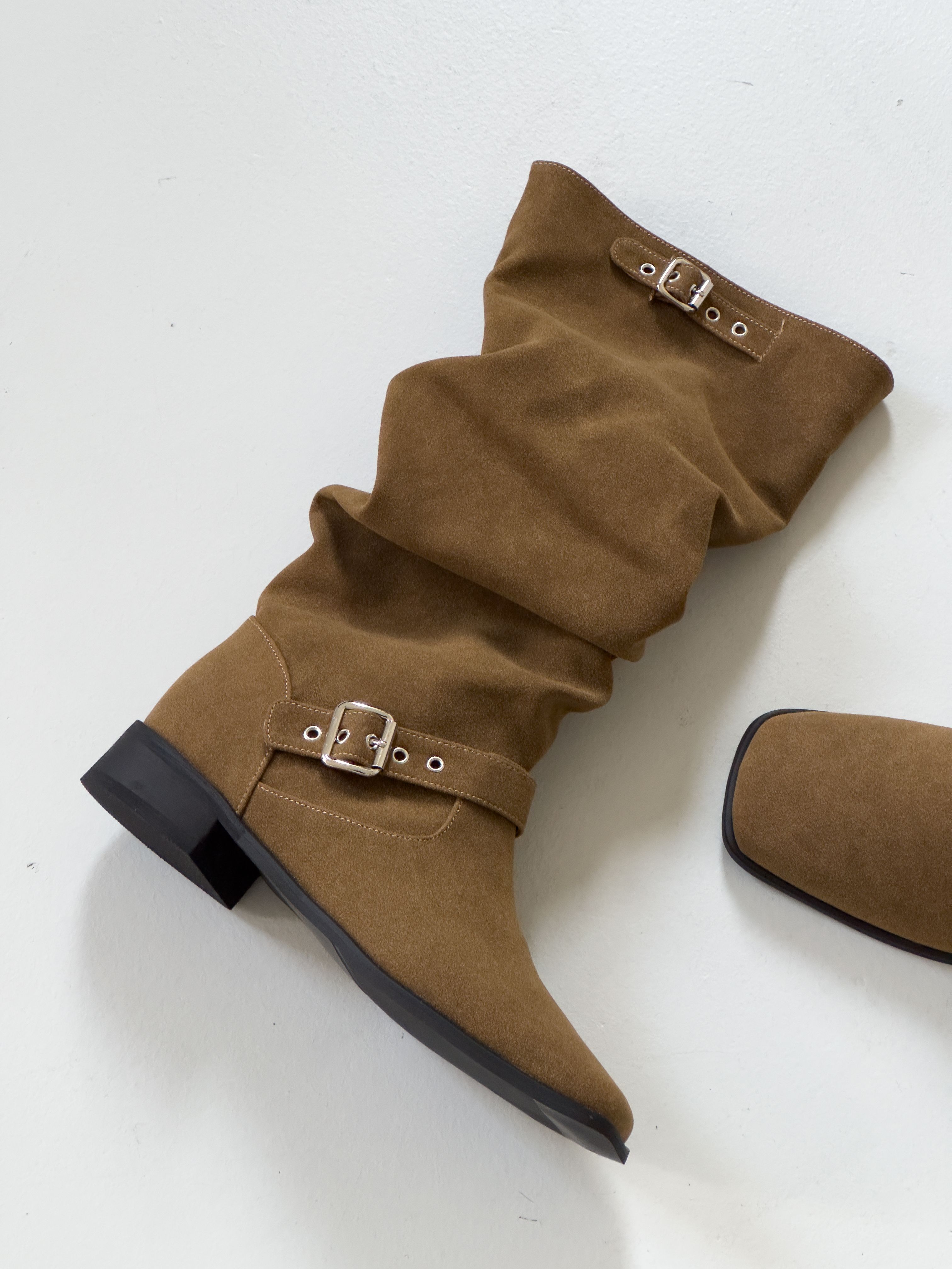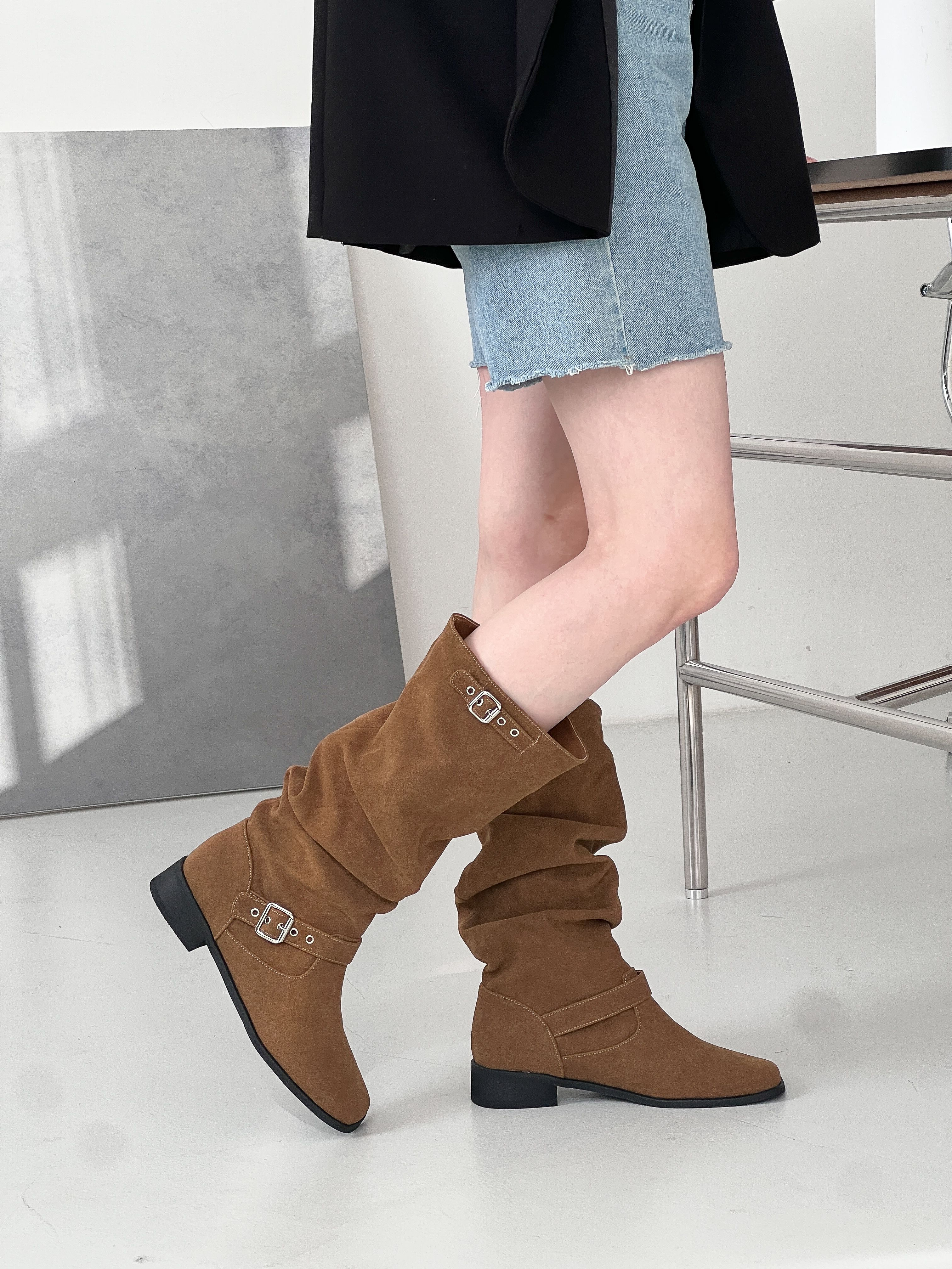[3CM]シャーリングスエードバックルミドルブーツ