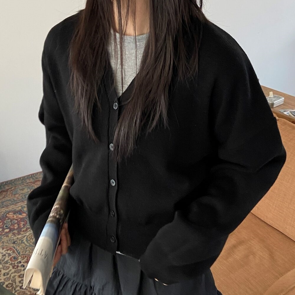 Vネックベーシック無地ニットカーディガン5color