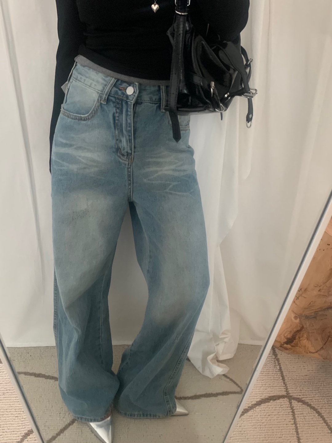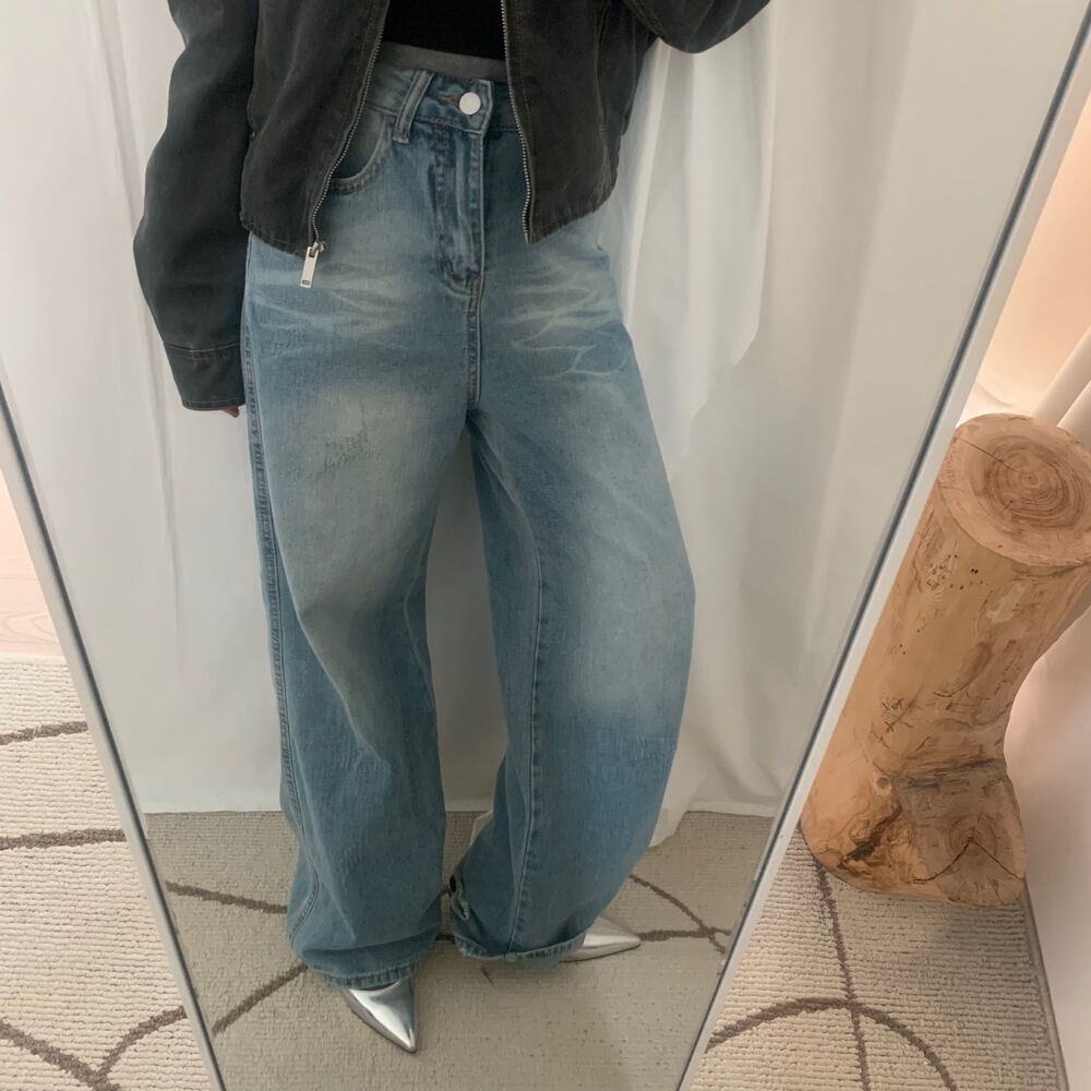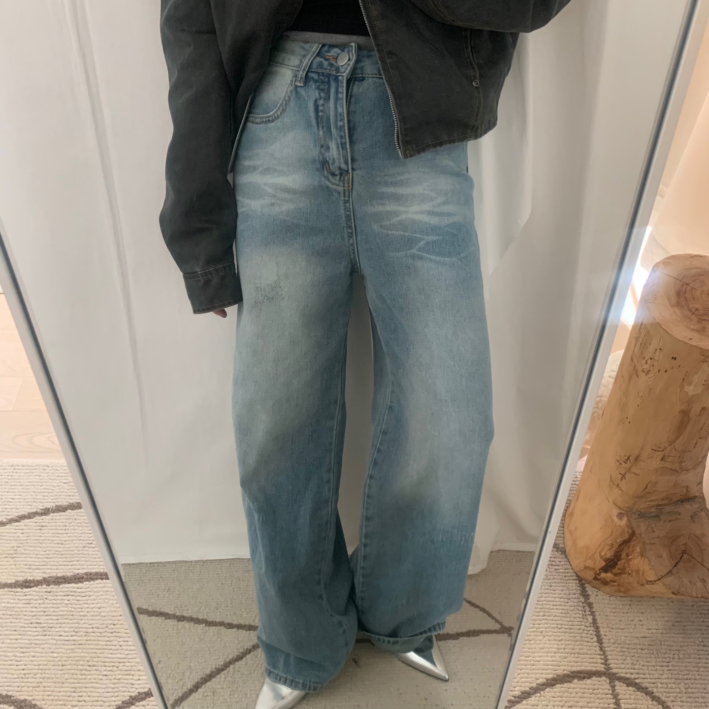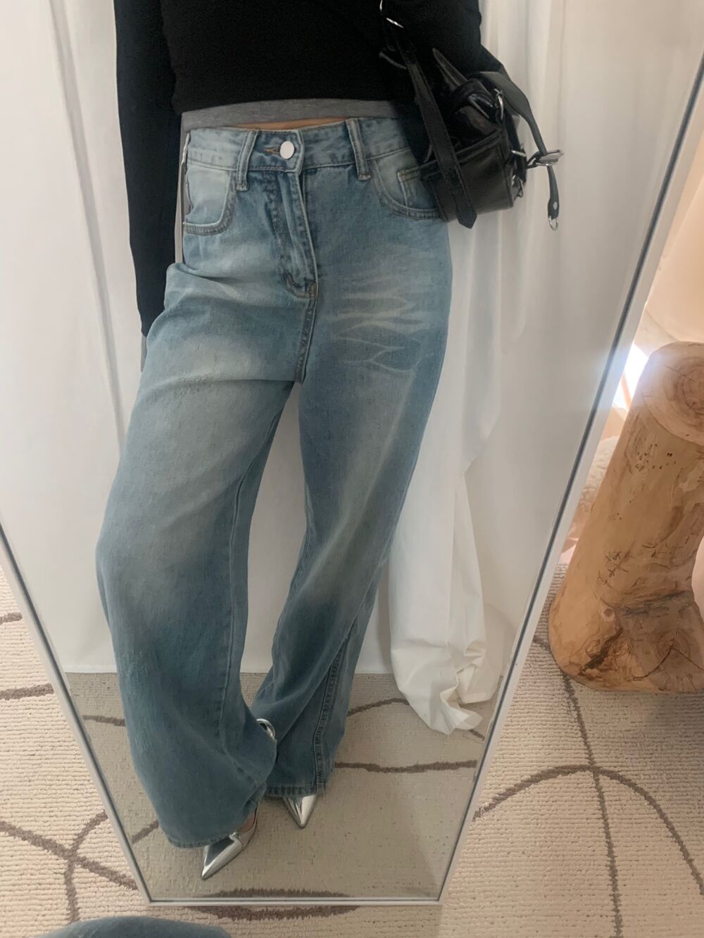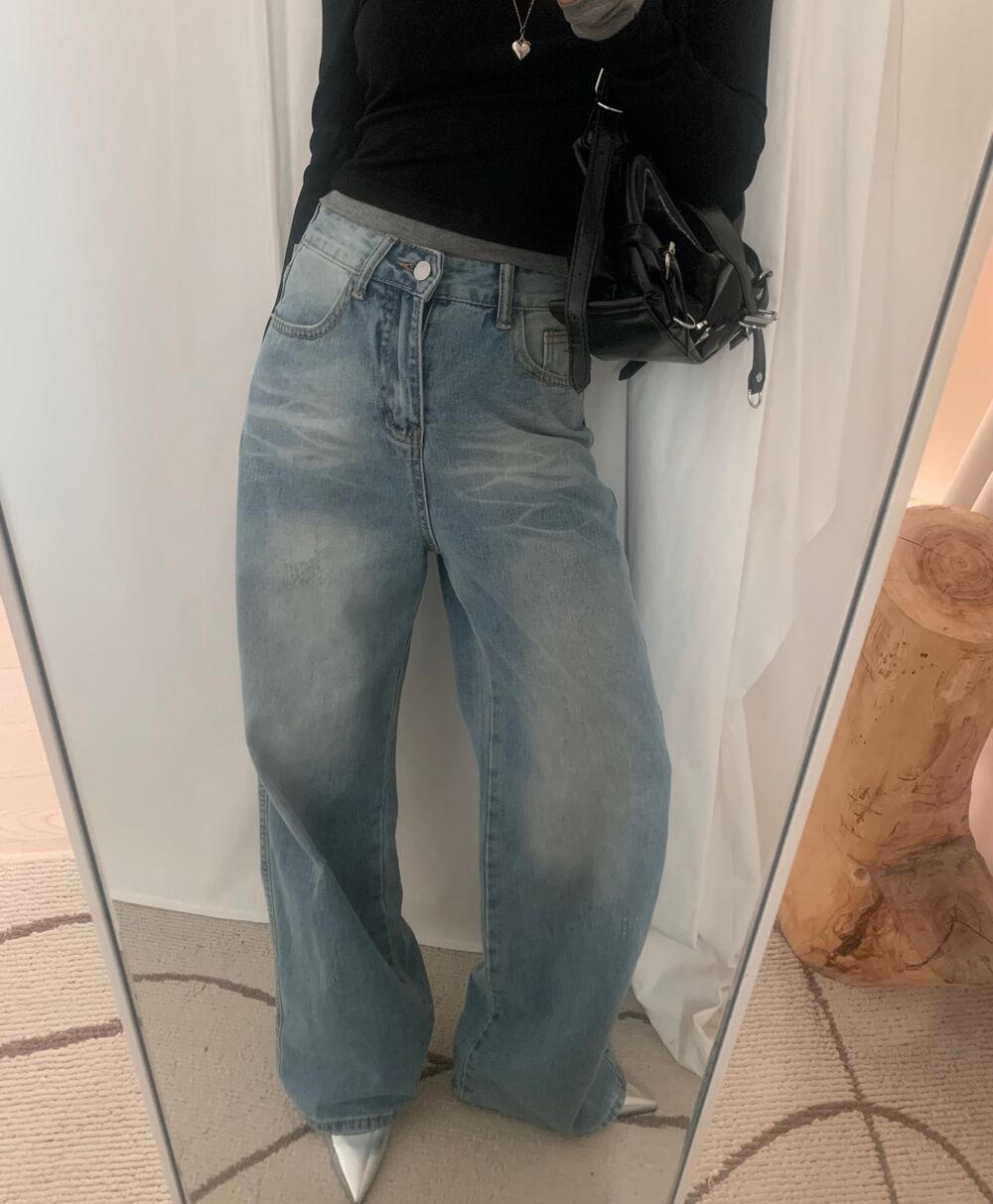 ライトデニムウォッシュヴィンテージワイドパンツ