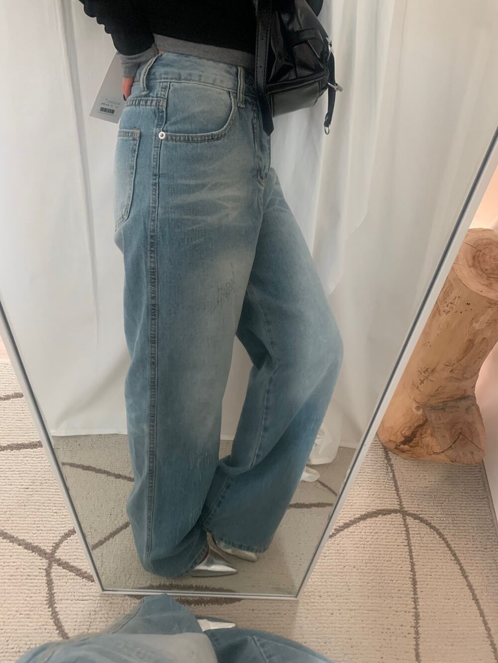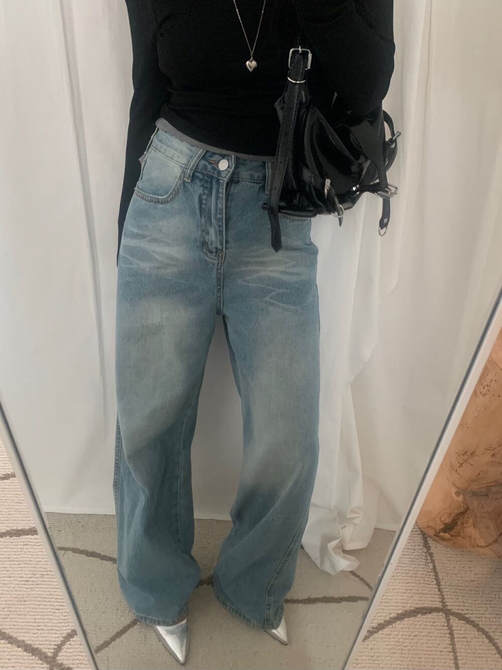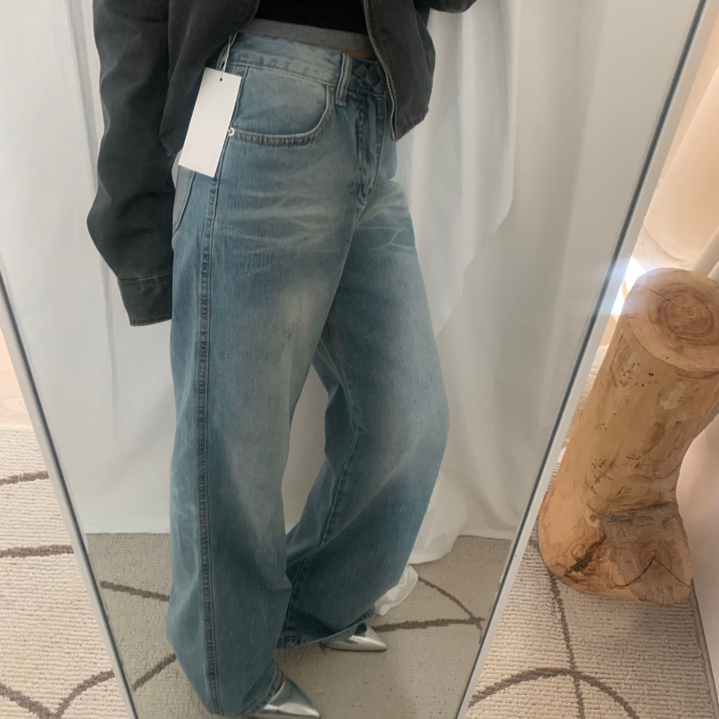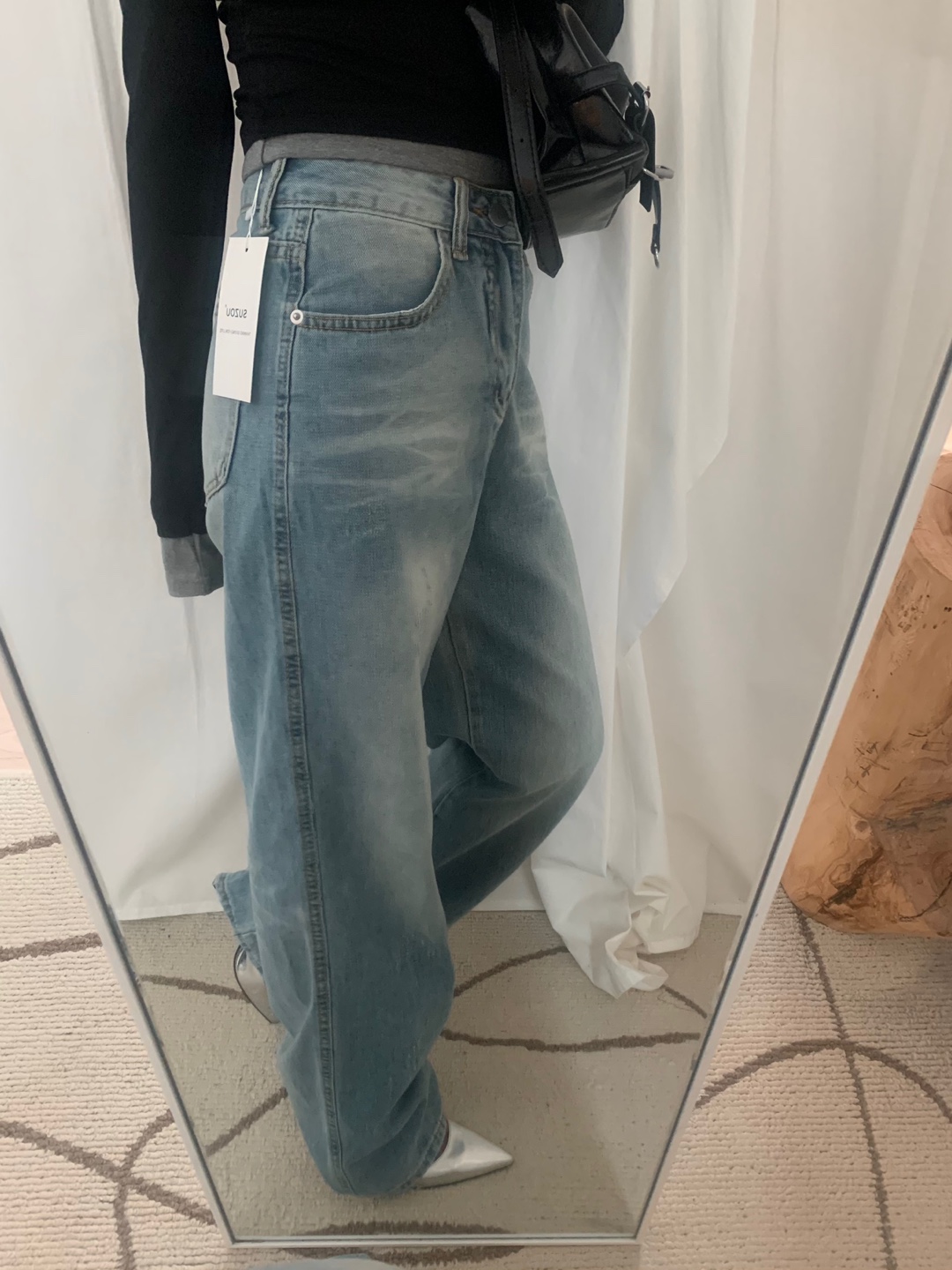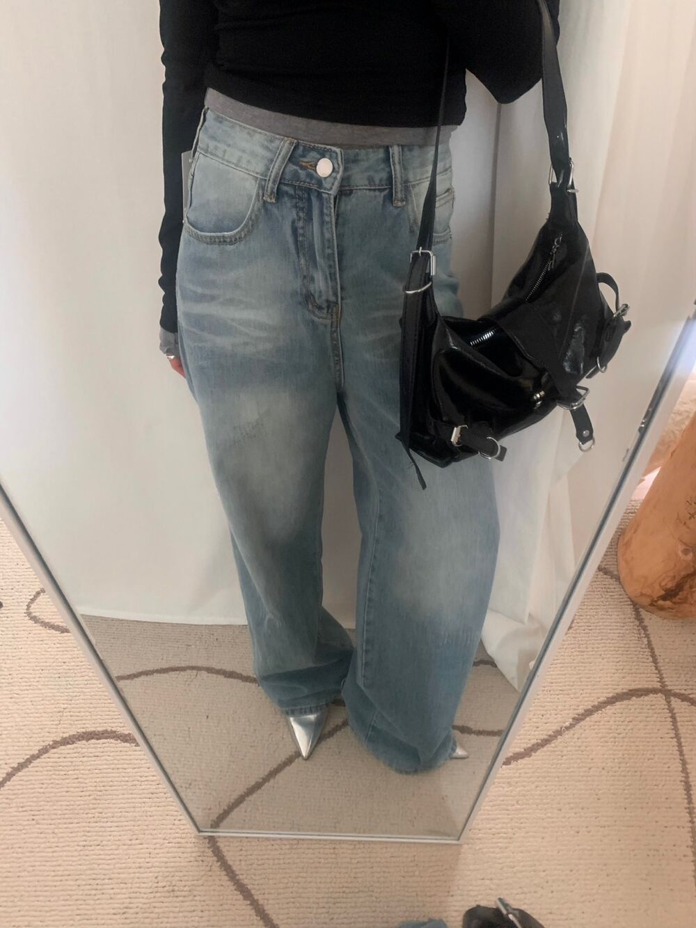 ライトデニムウォッシュヴィンテージワイドパンツ