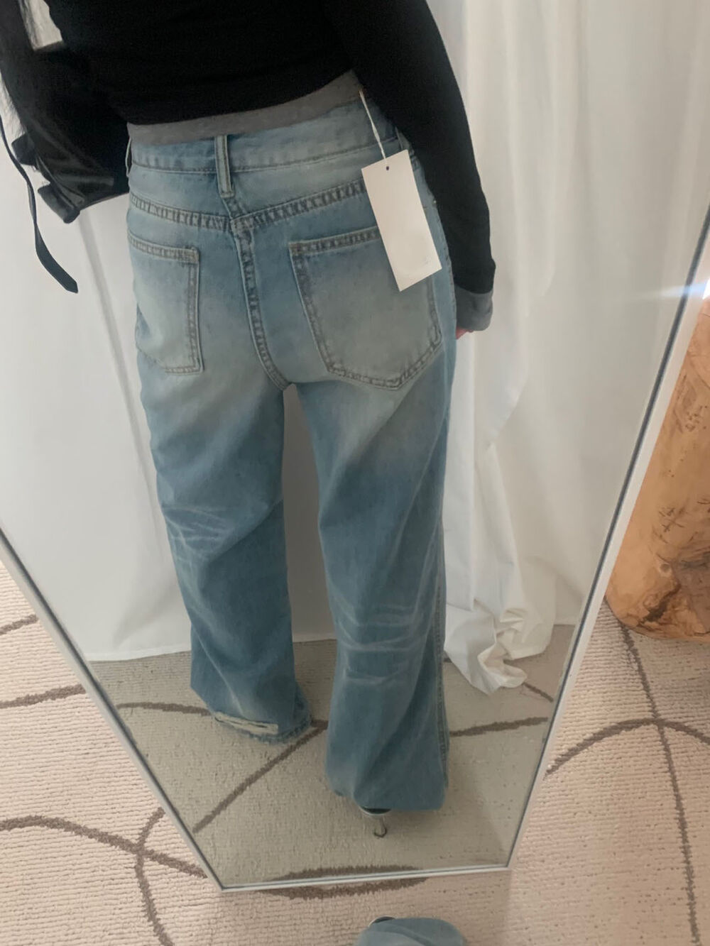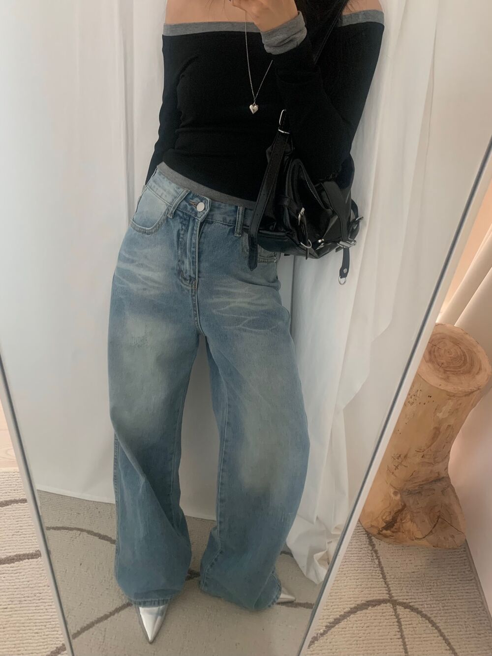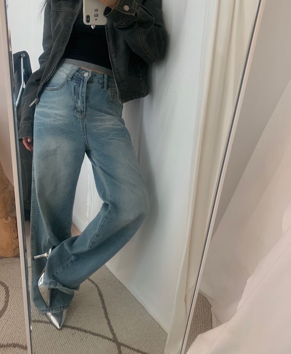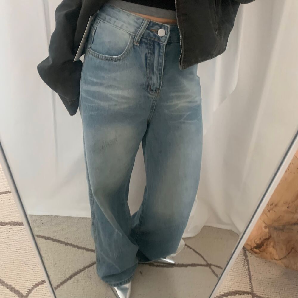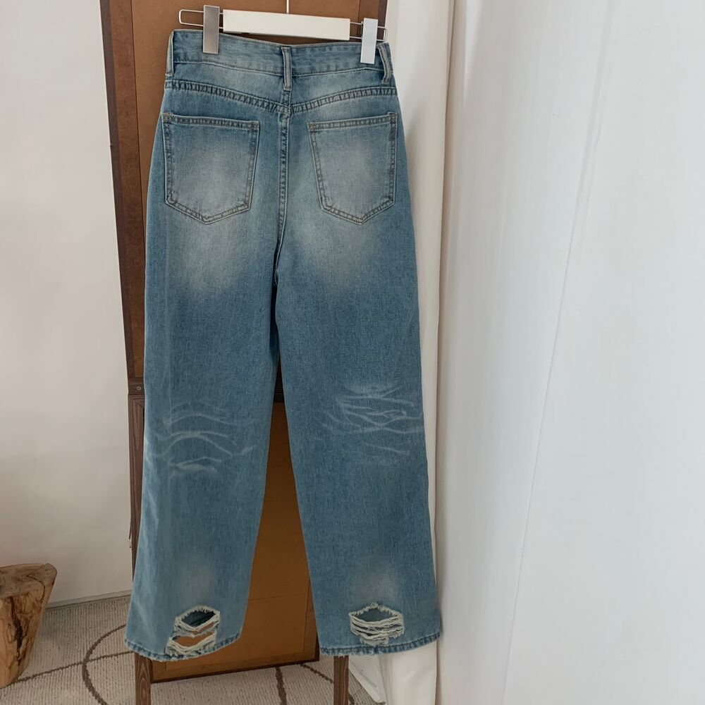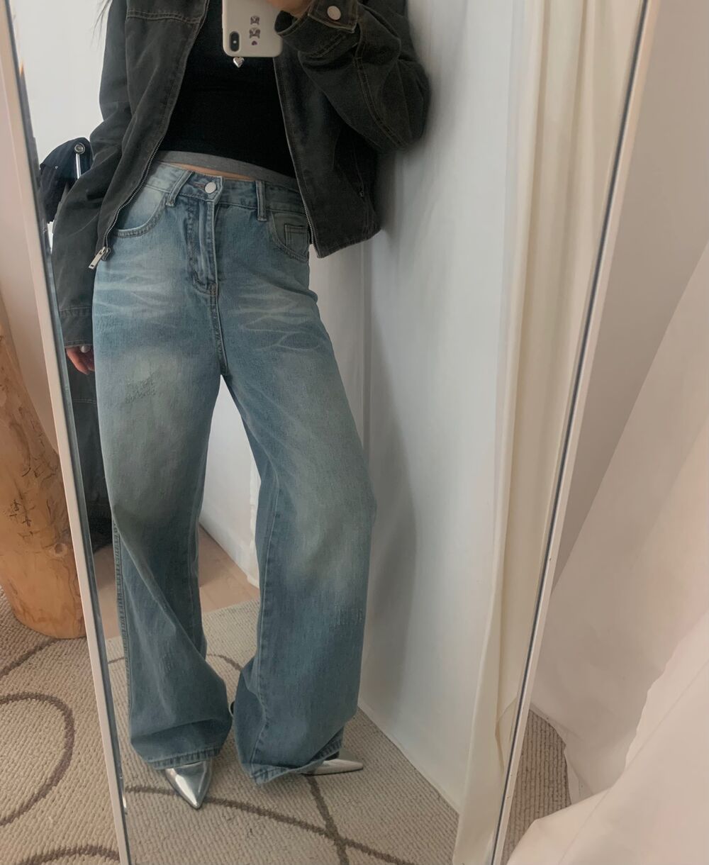 ライトデニムウォッシュヴィンテージワイドパンツ