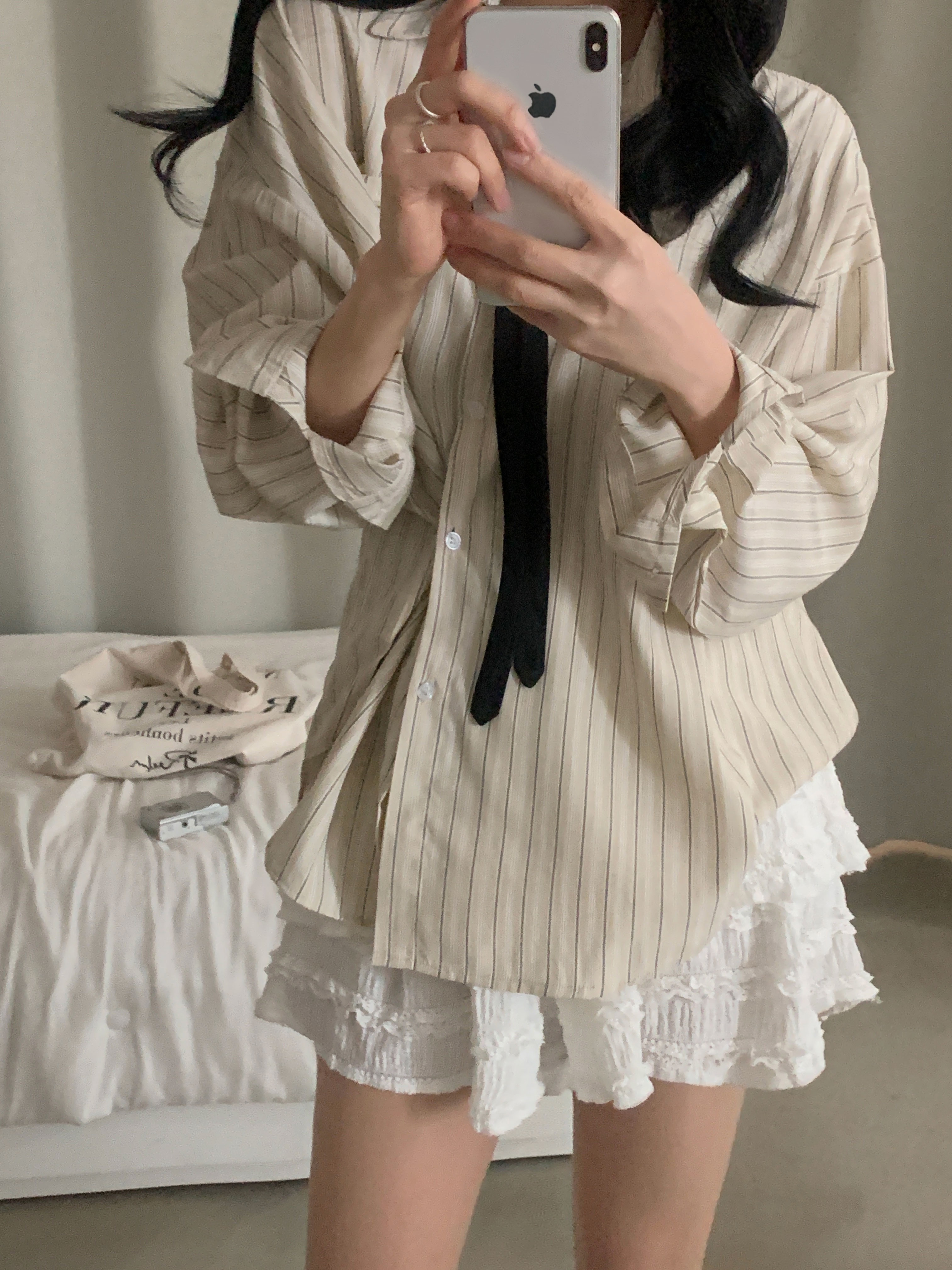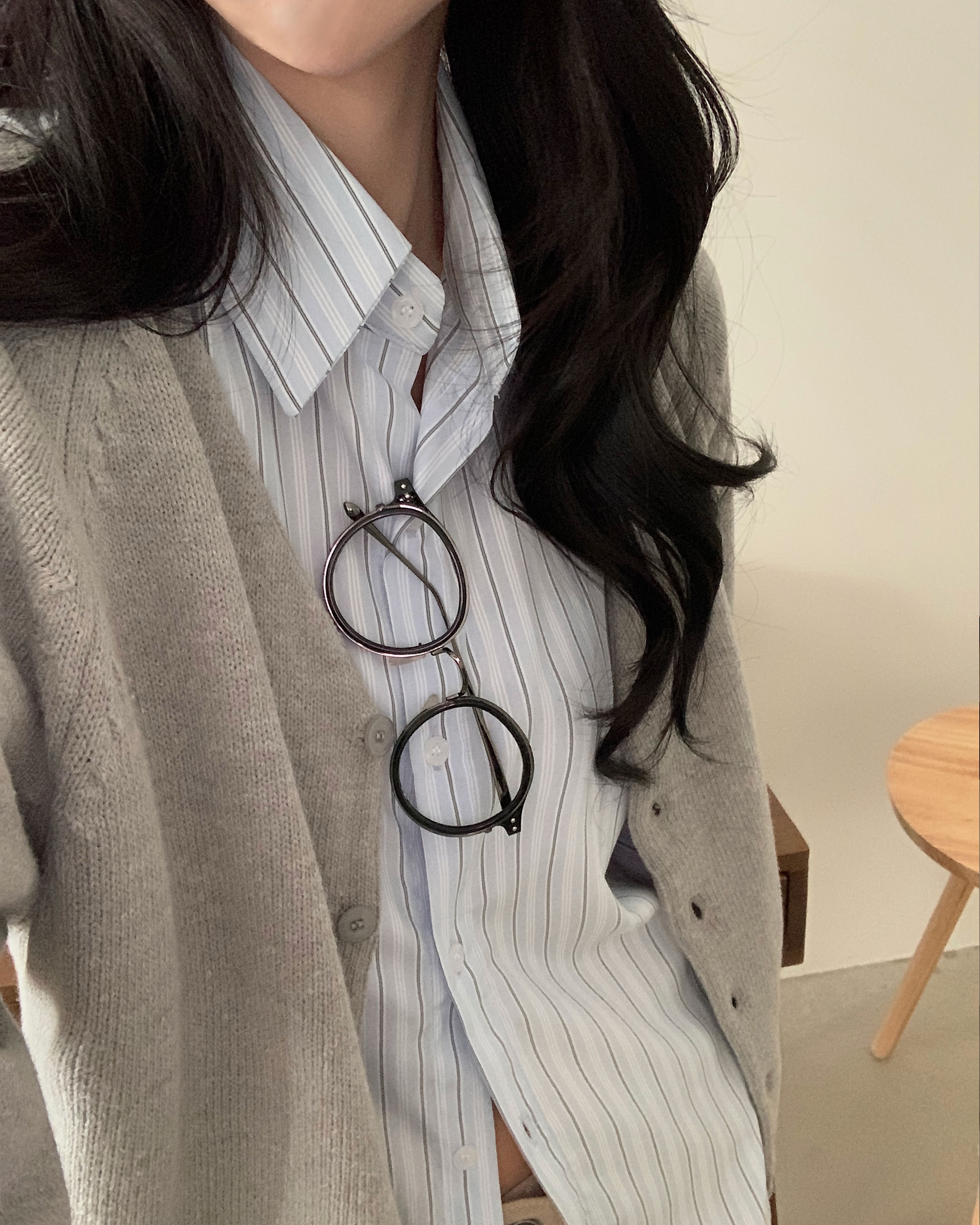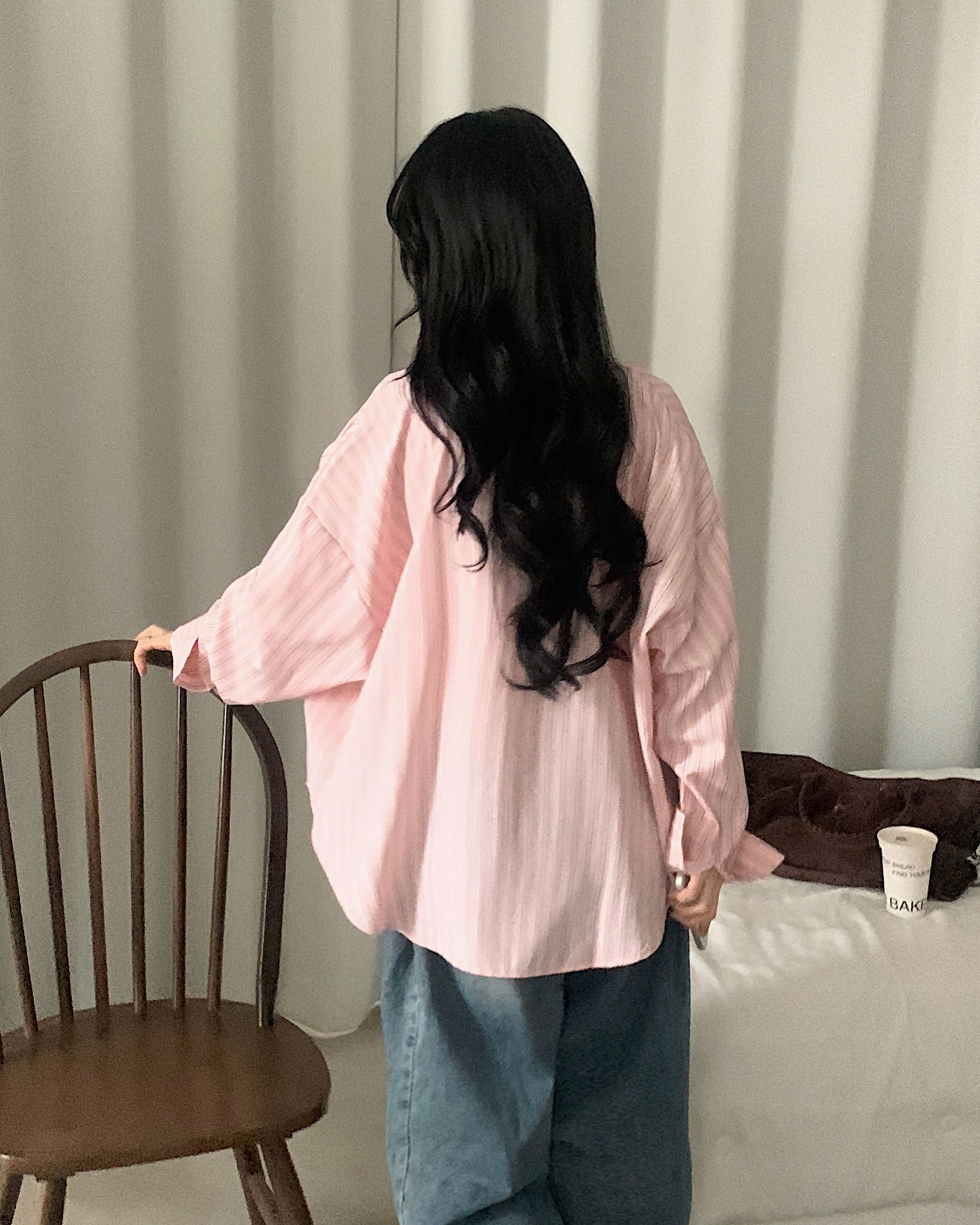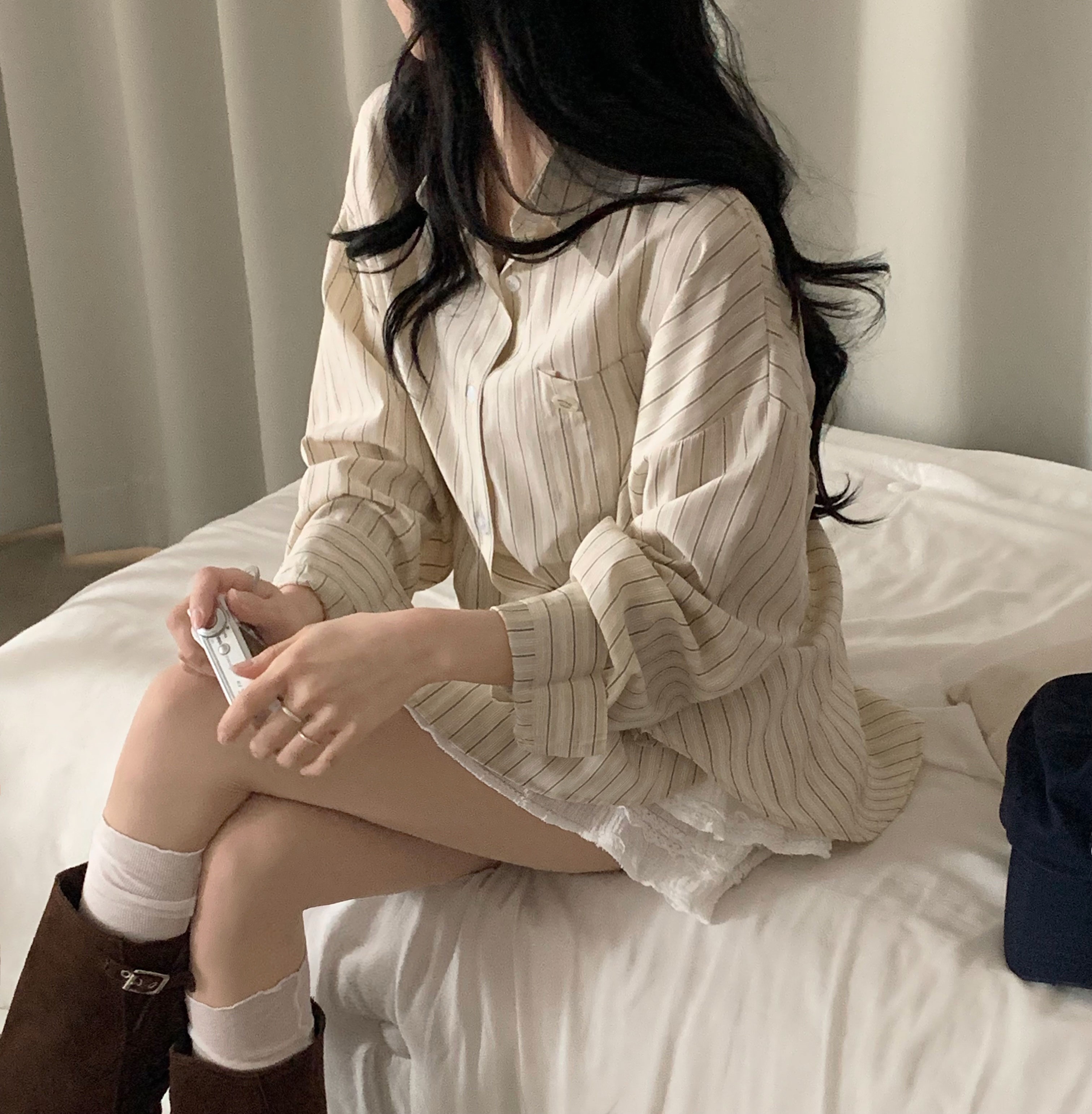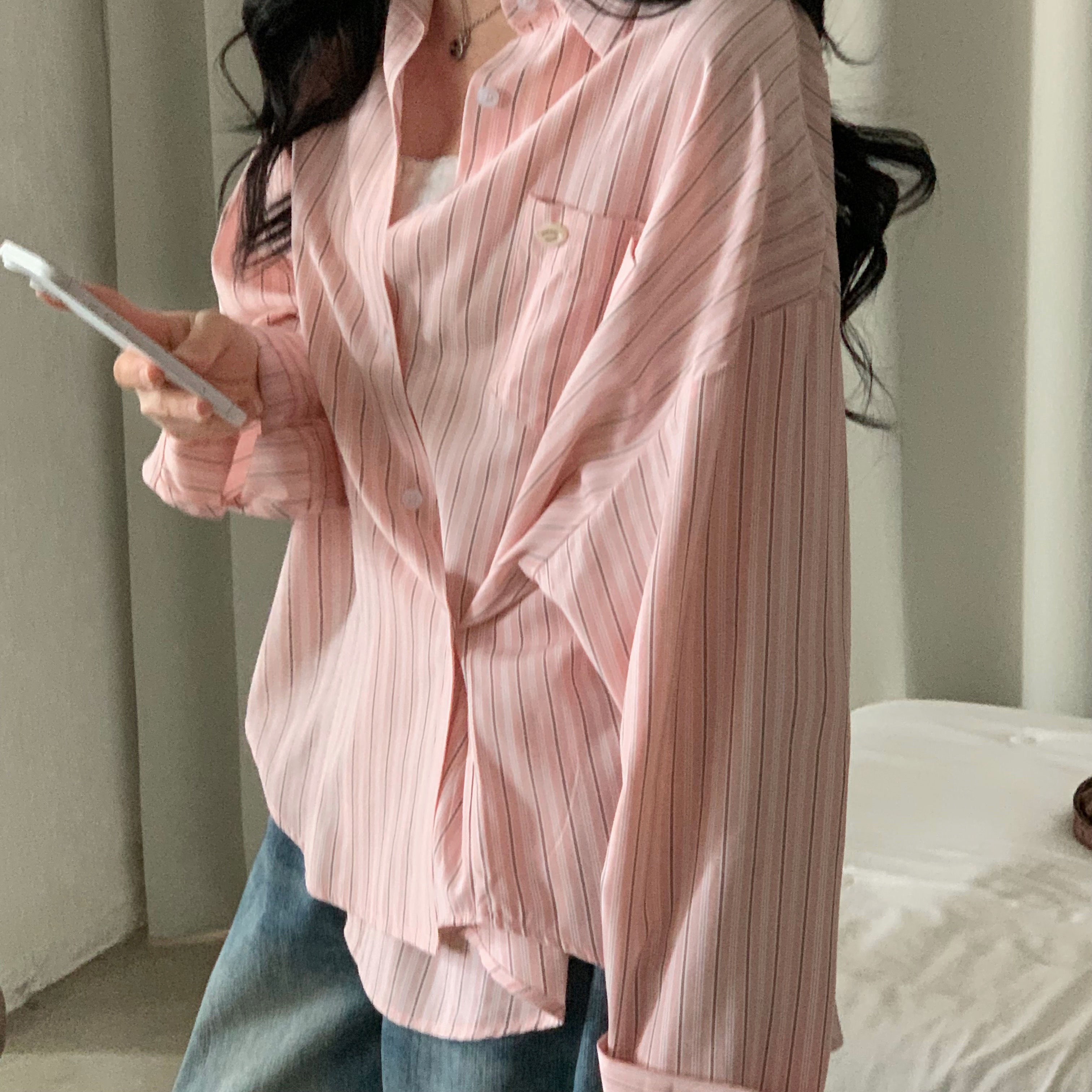 (3color)ストライプ ボーダーラップオーバーサイズシャツ