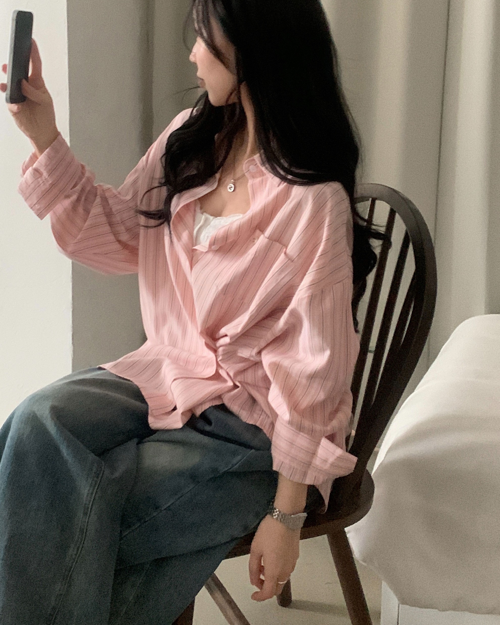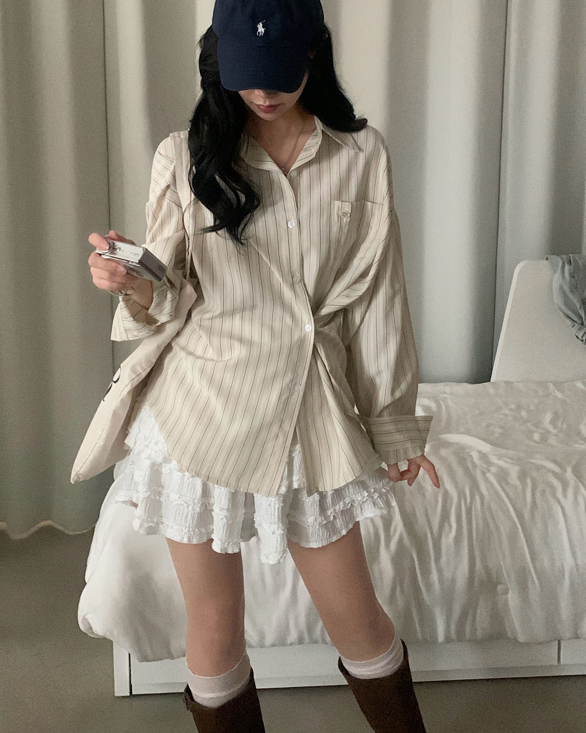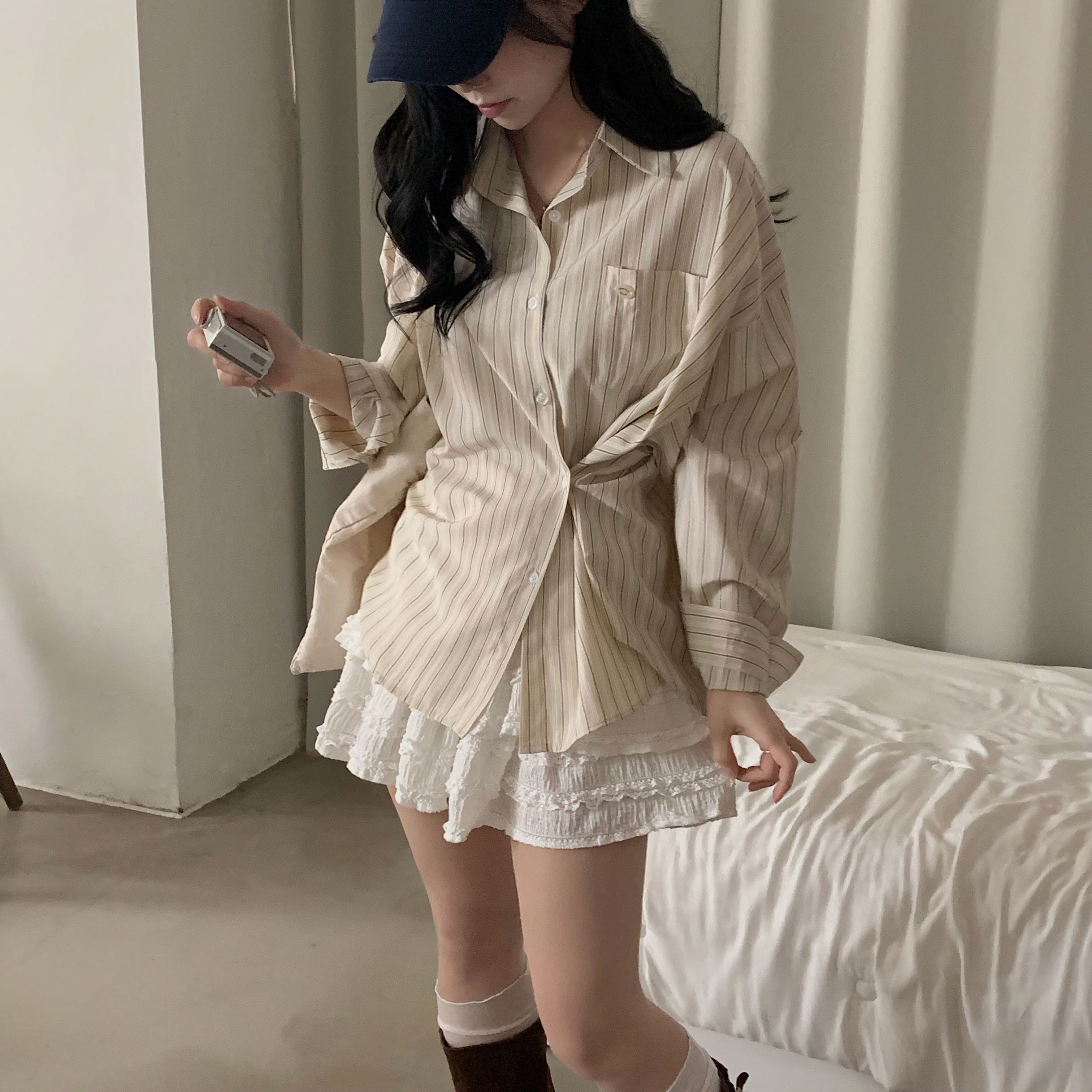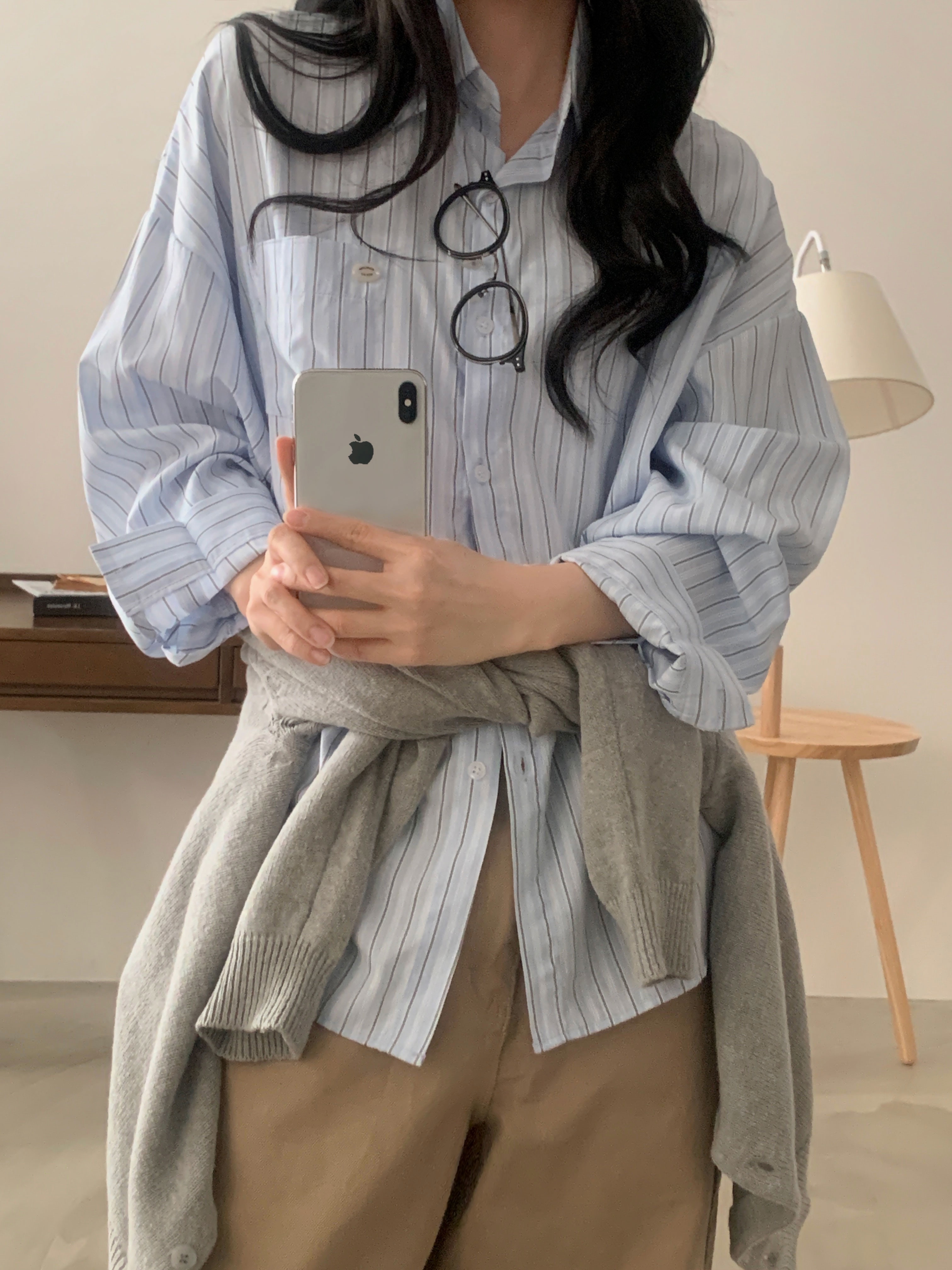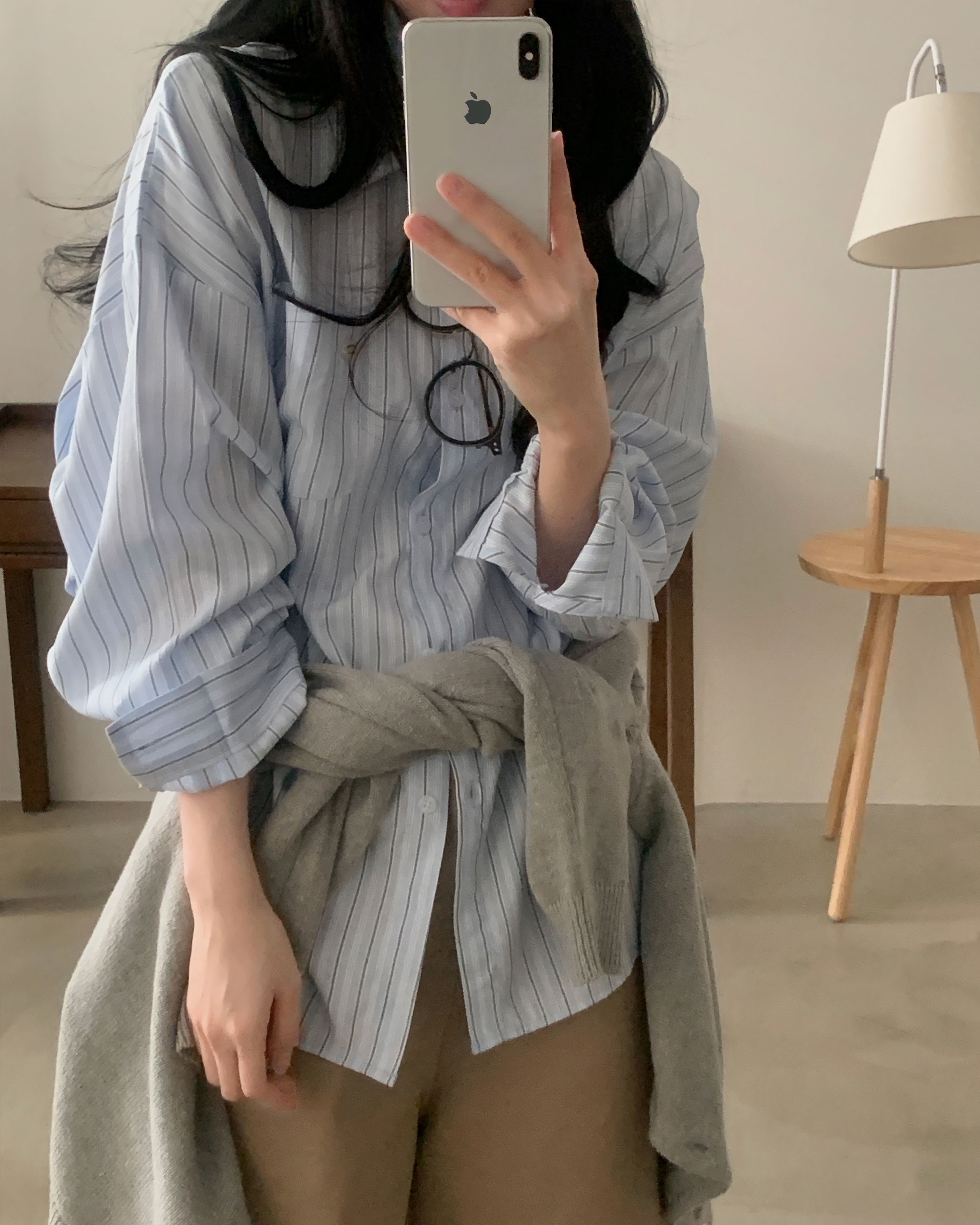 (3color)ストライプ ボーダーラップオーバーサイズシャツ
