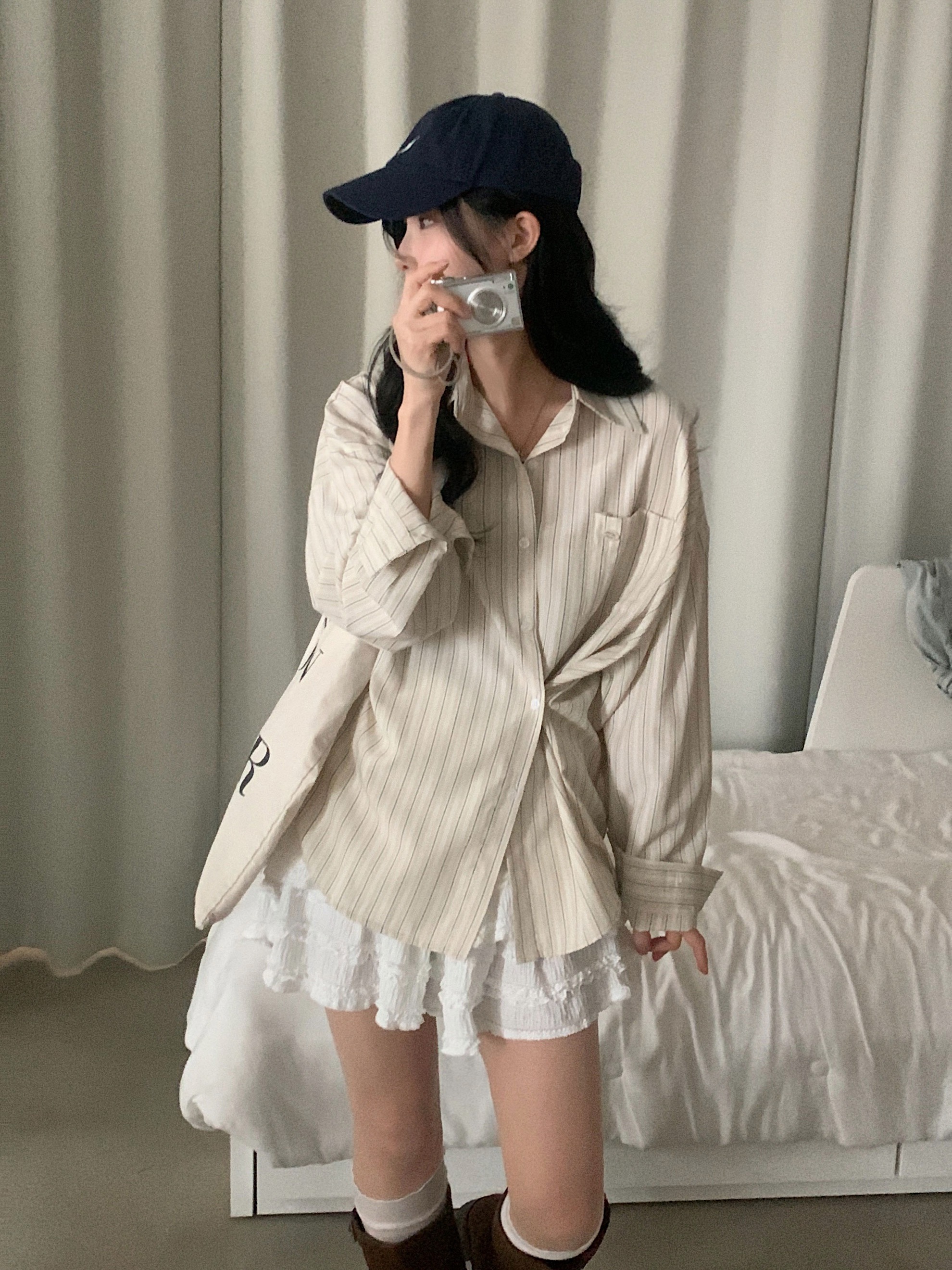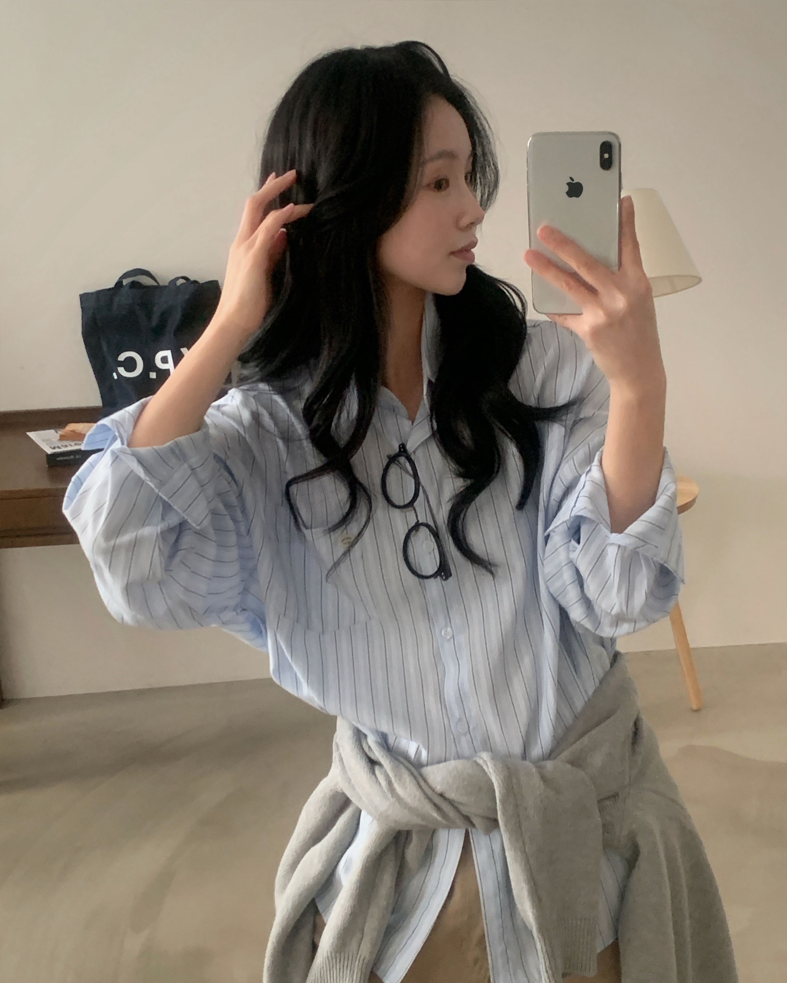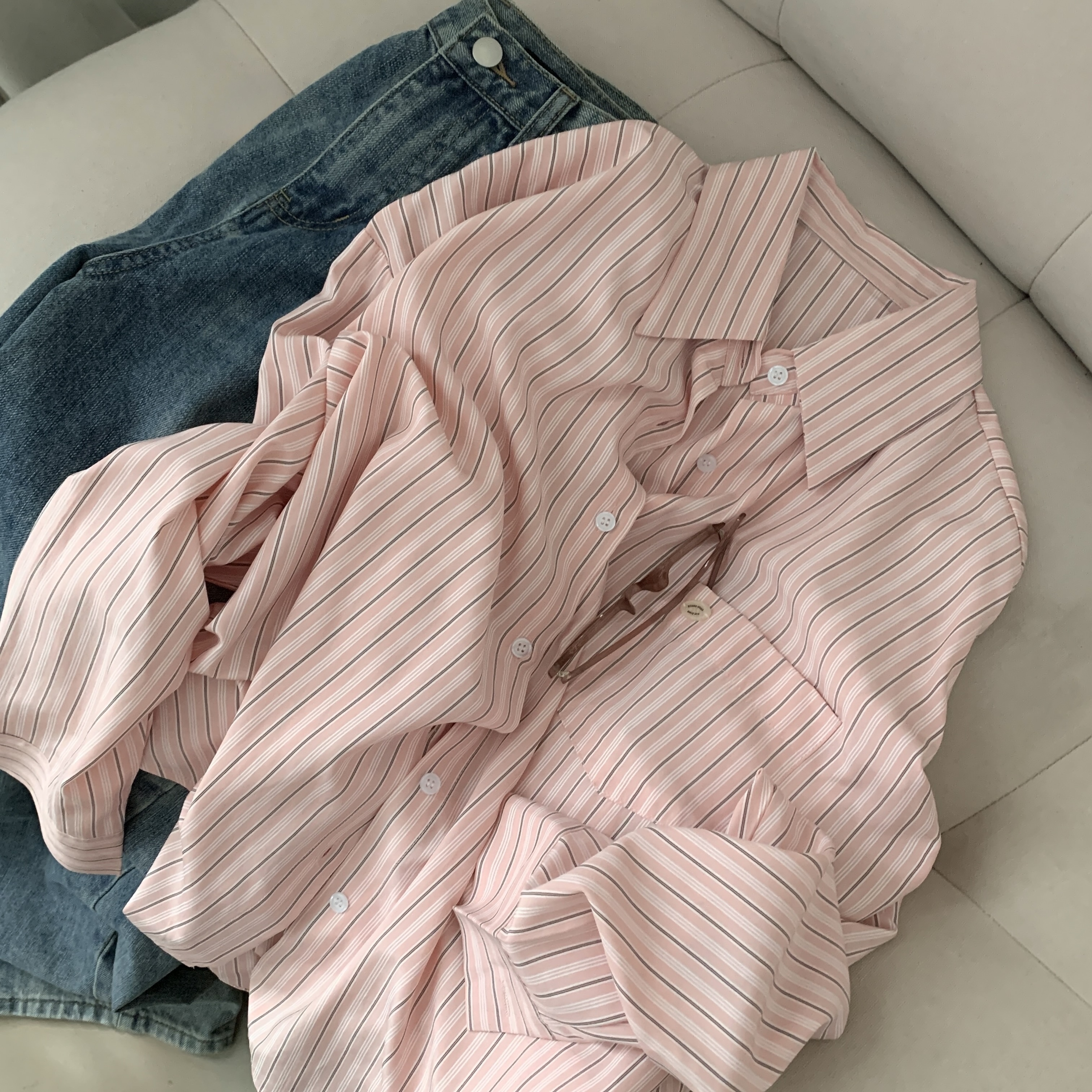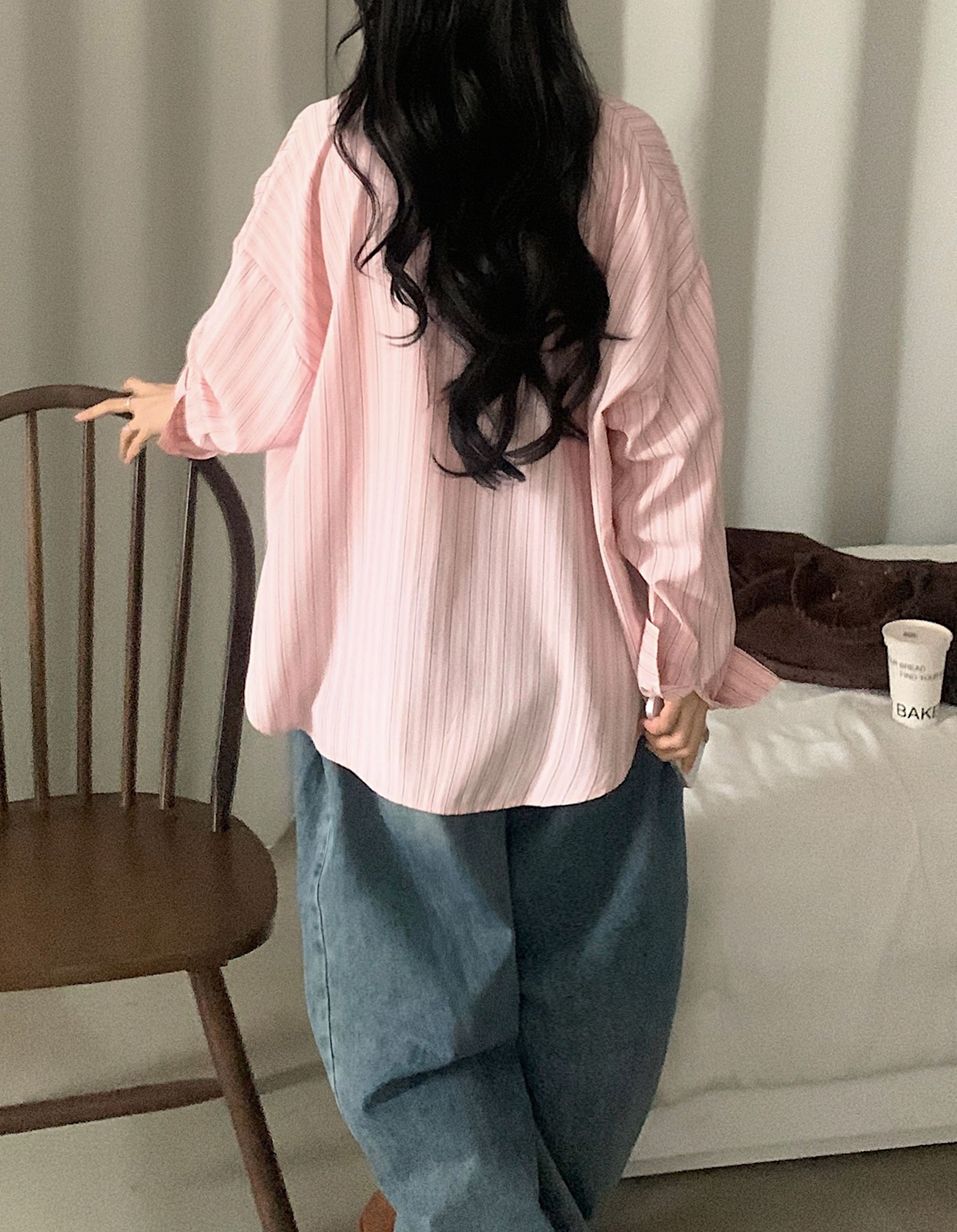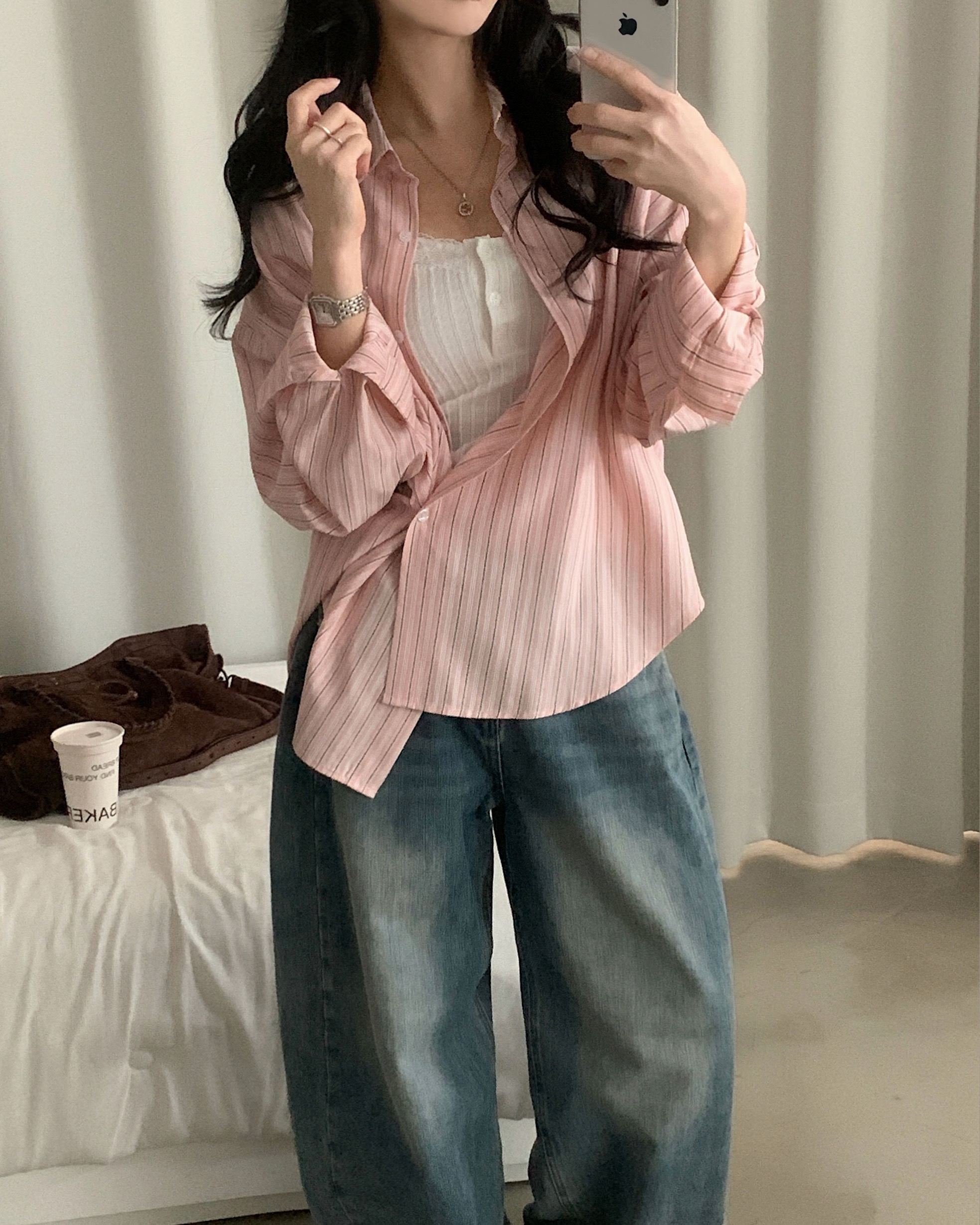 (3color)ストライプ ボーダーラップオーバーサイズシャツ