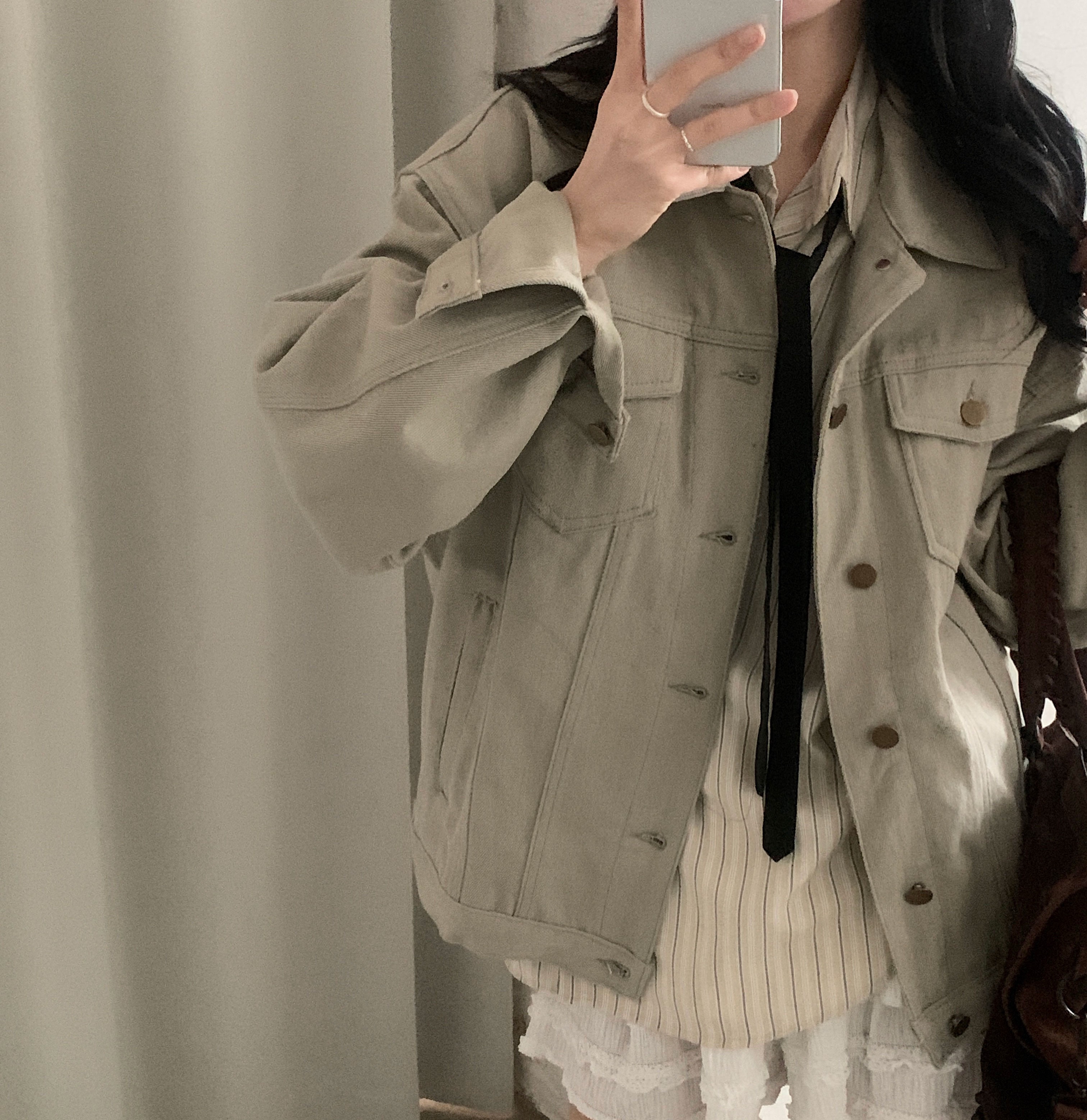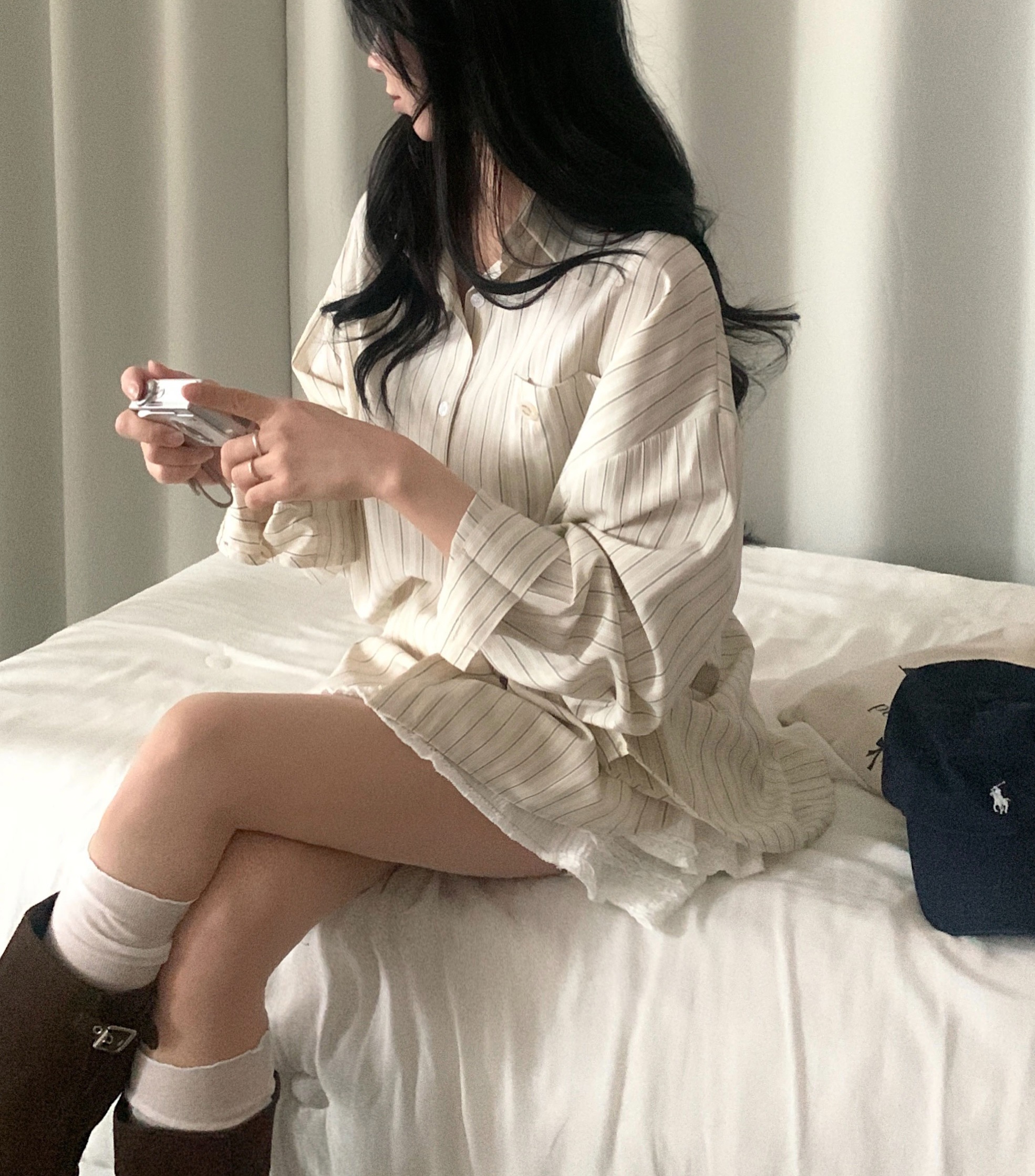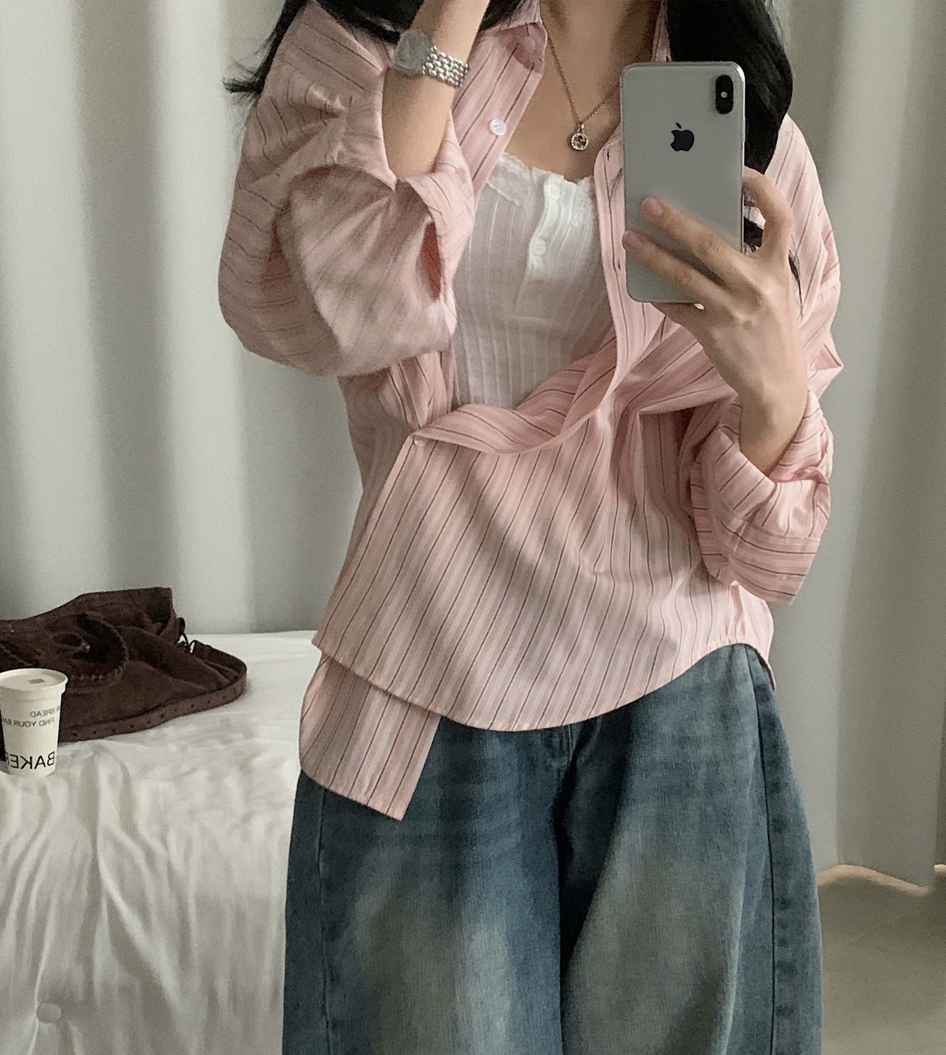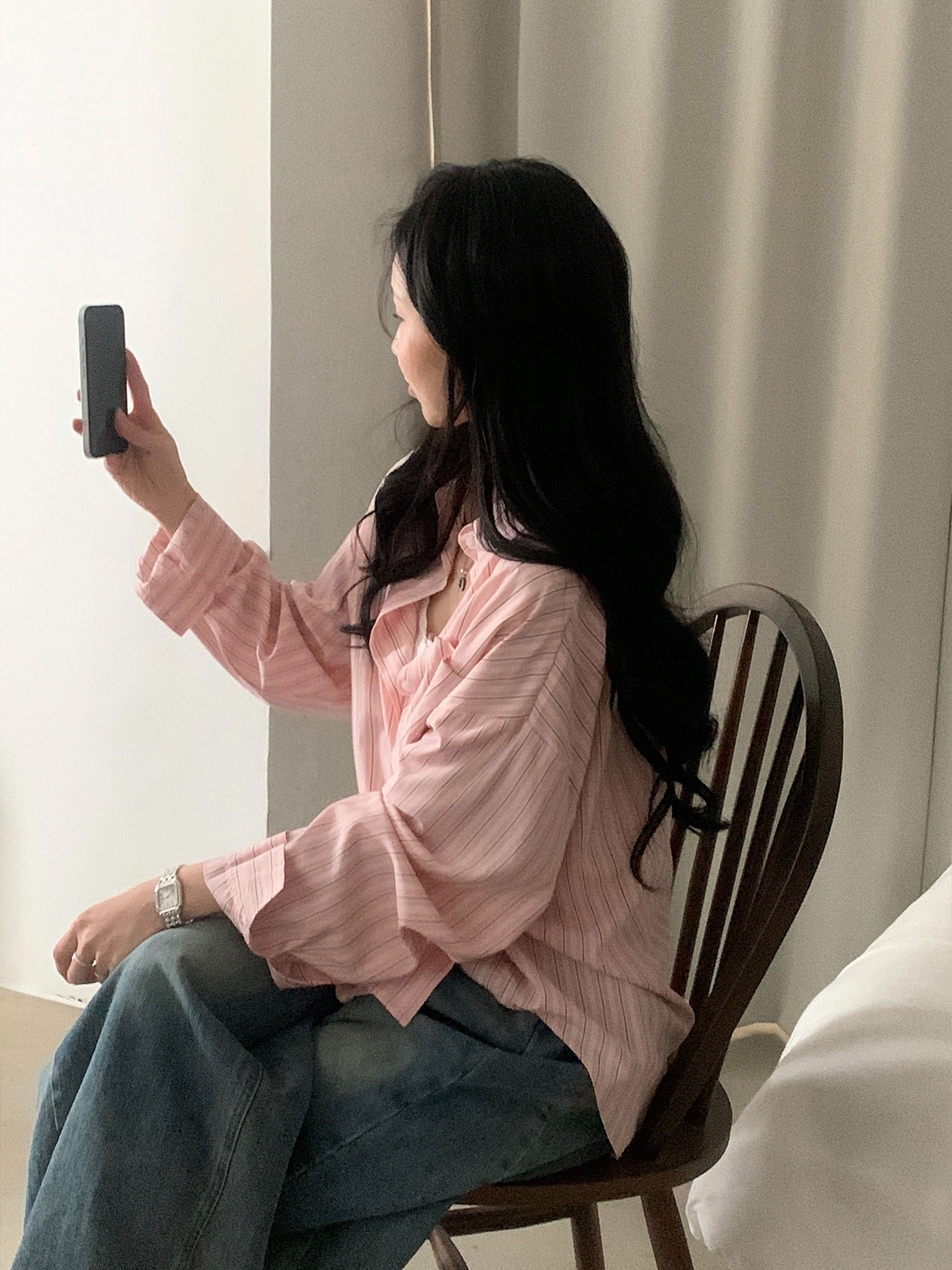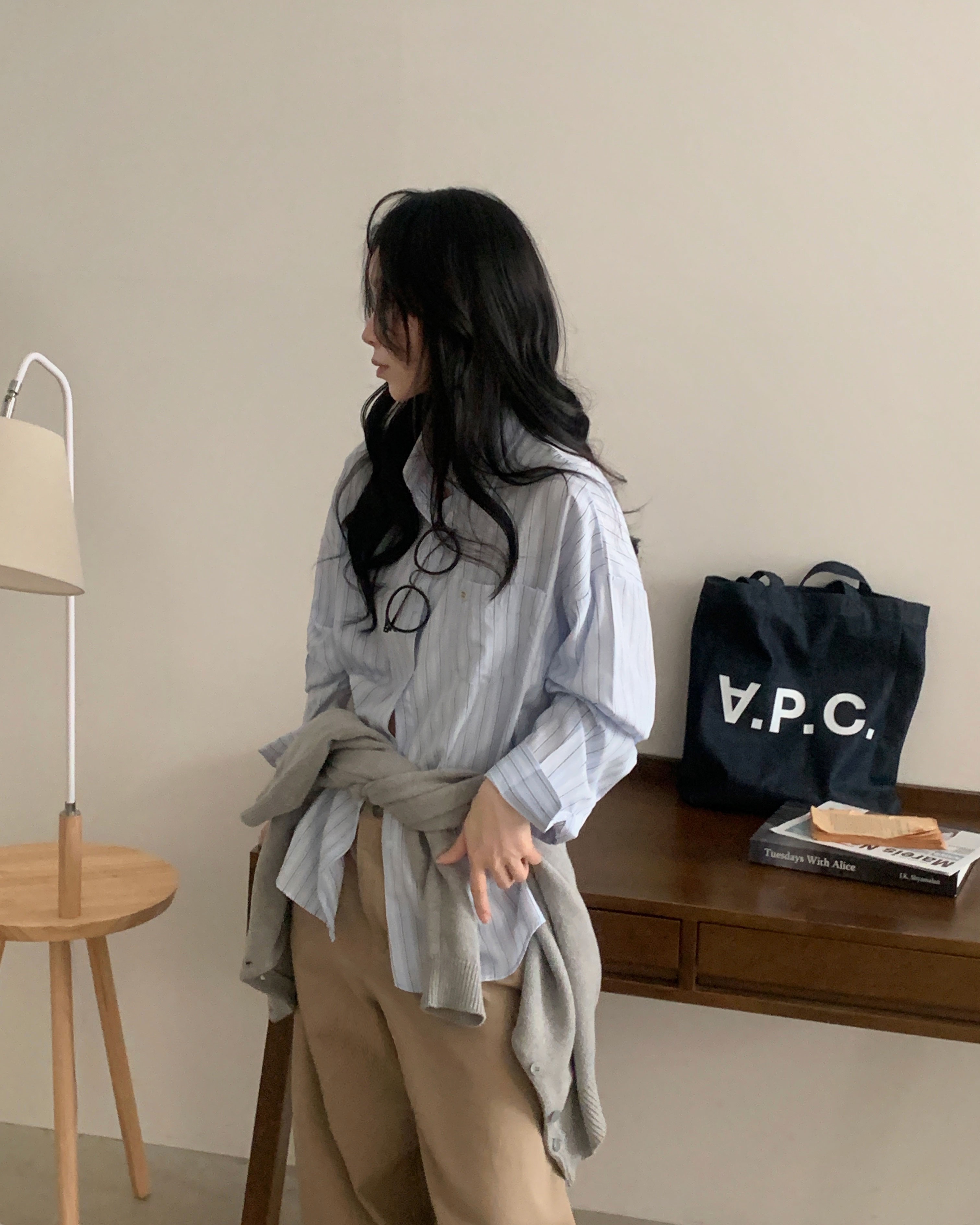 (3color)ストライプ ボーダーラップオーバーサイズシャツ
