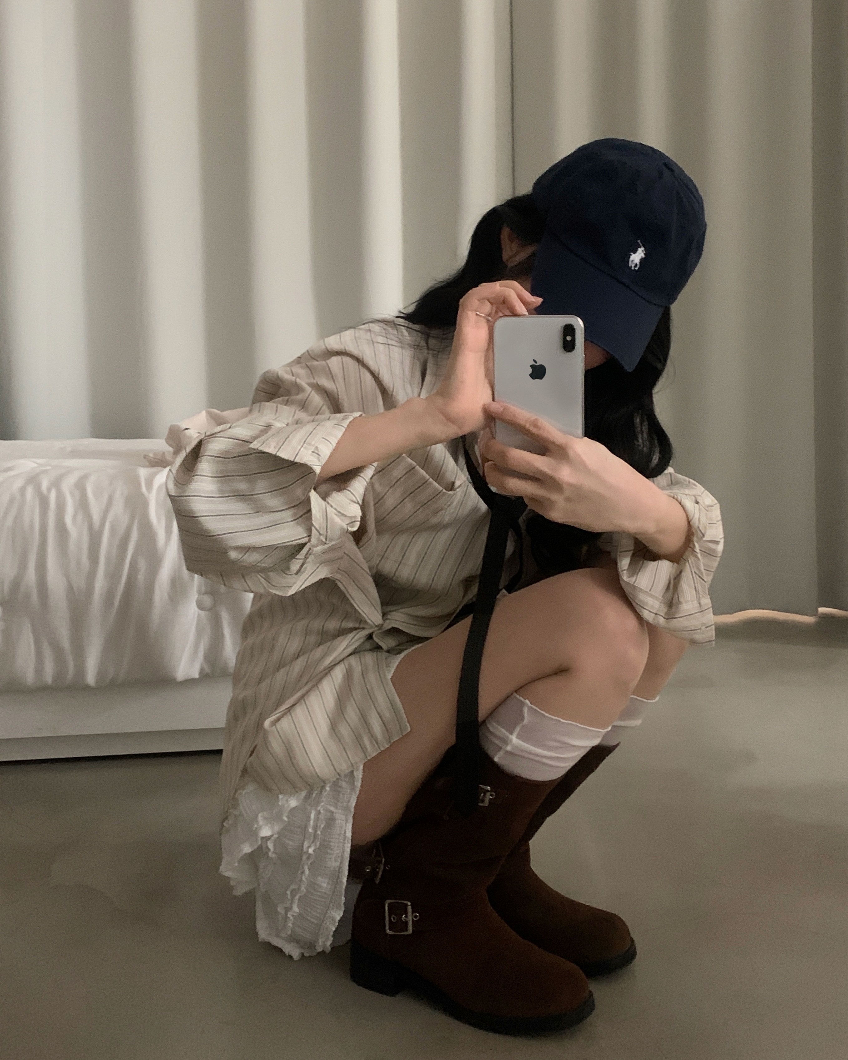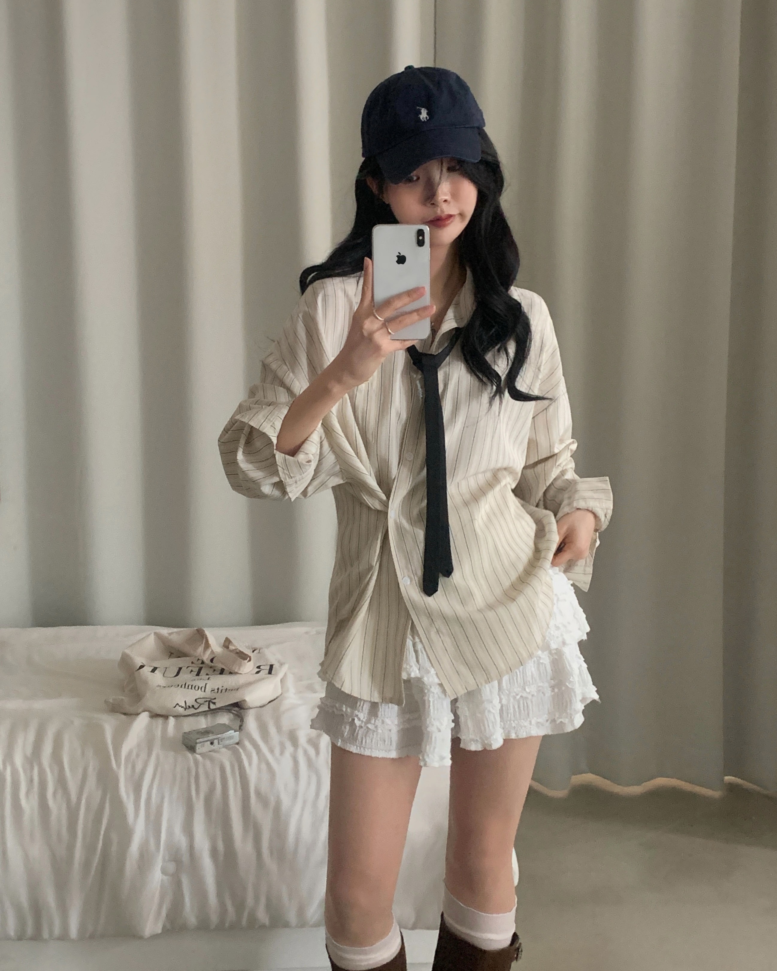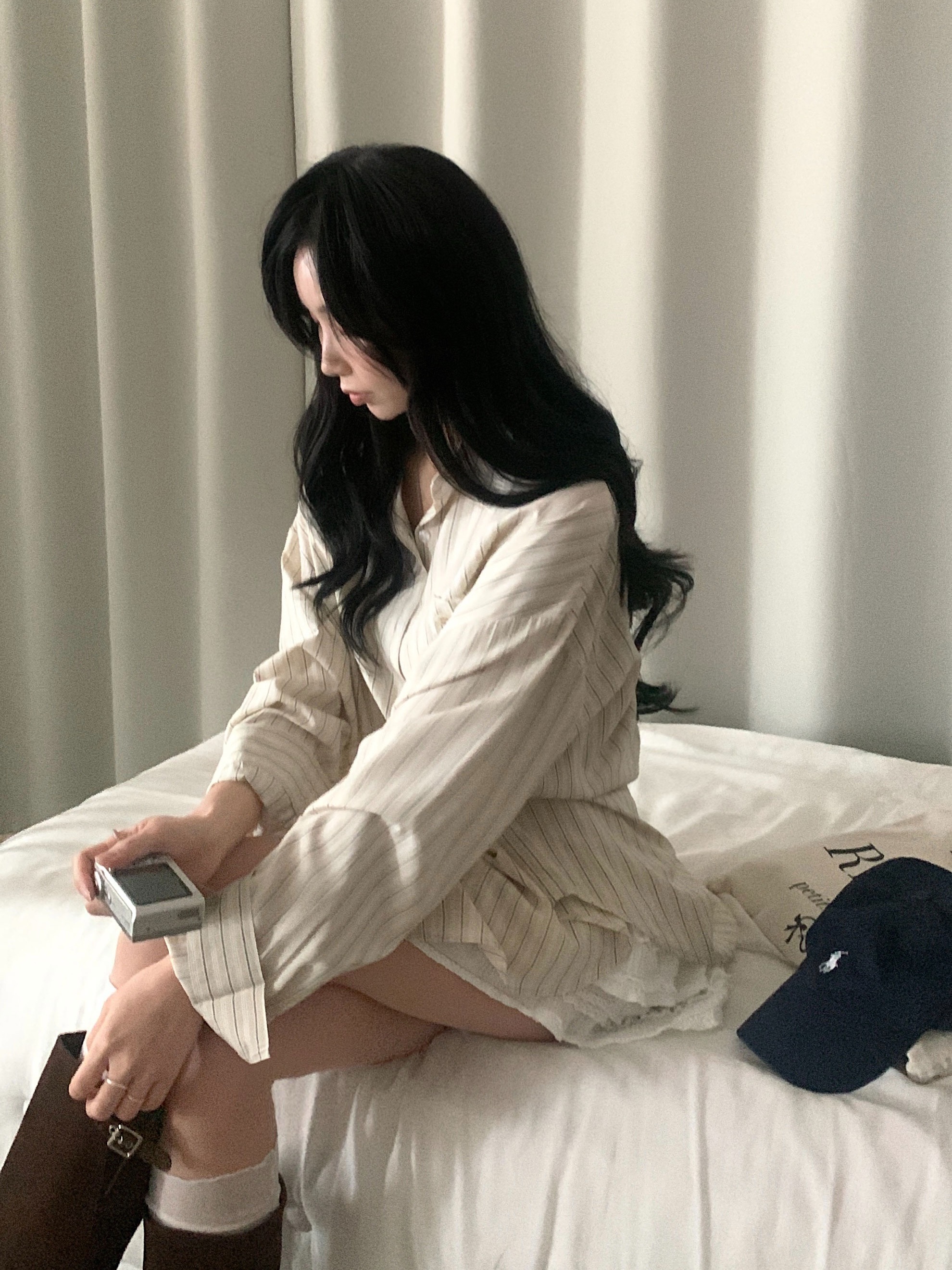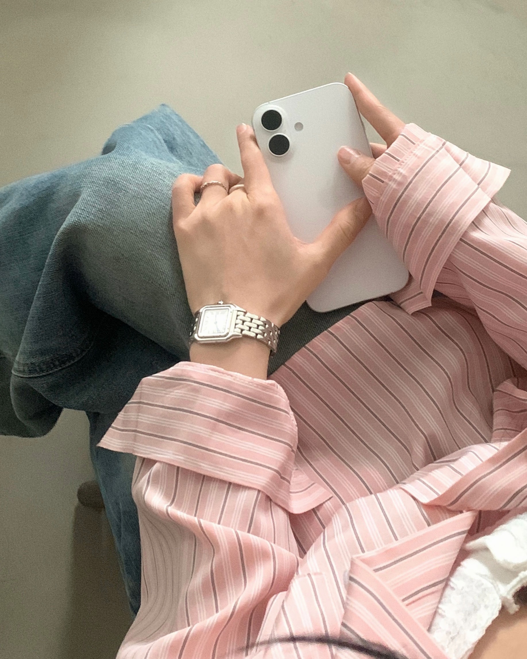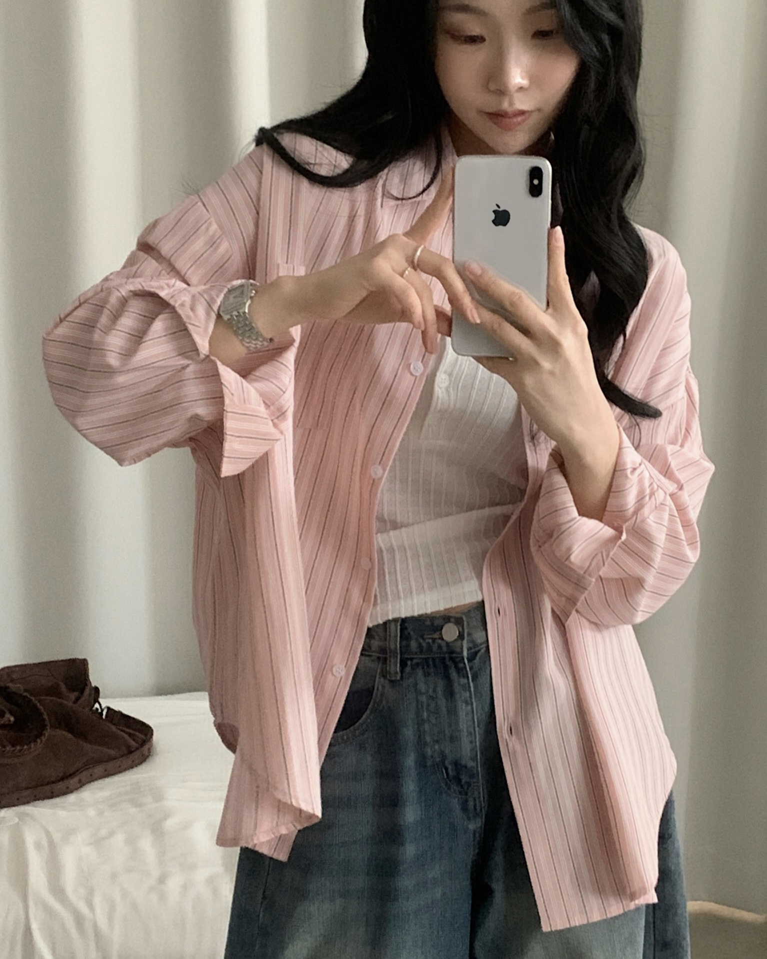 (3color)ストライプ ボーダーラップオーバーサイズシャツ