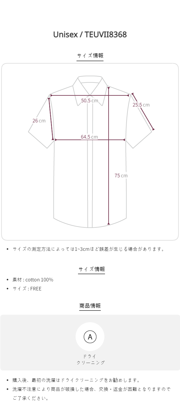 (UNISEX)コットン半袖シャツ