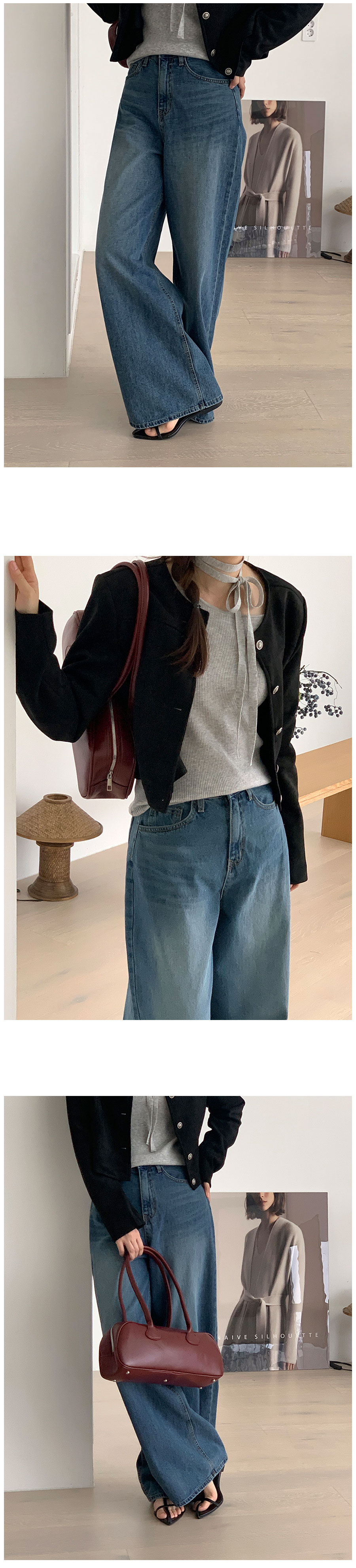 와이드한 핏과 맥시한 기장감이 매력적인 데님 팬츠입니다.