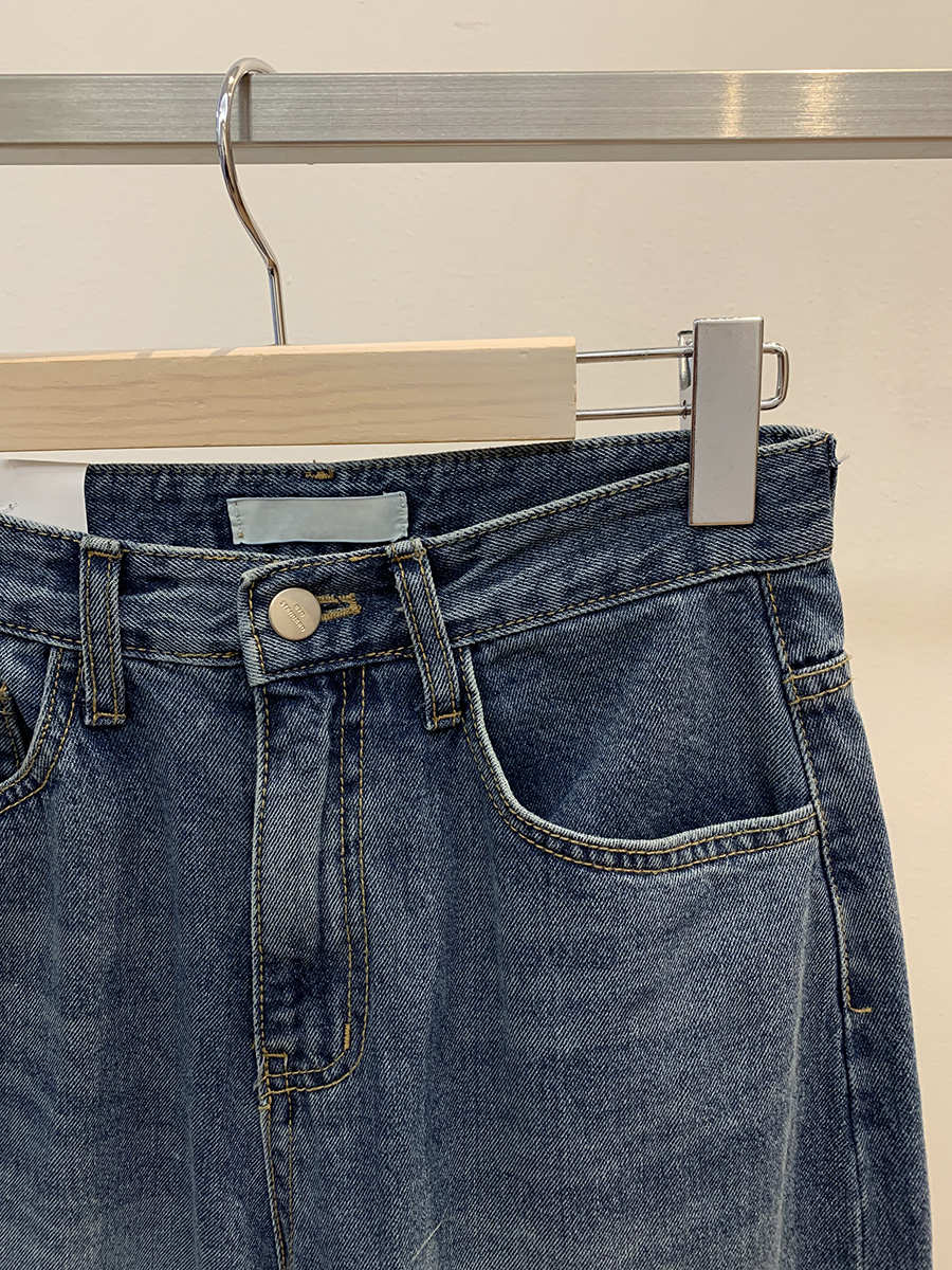 골반부터 무릎까지 길게 이어진 워싱 디테일로