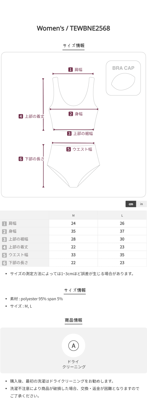· 스윔웨어는 매우 촘촘하게 봉제되어 착용하실 때 튿어지는 소리가 날 수 있습니다.
