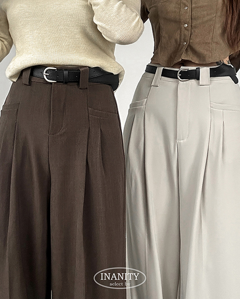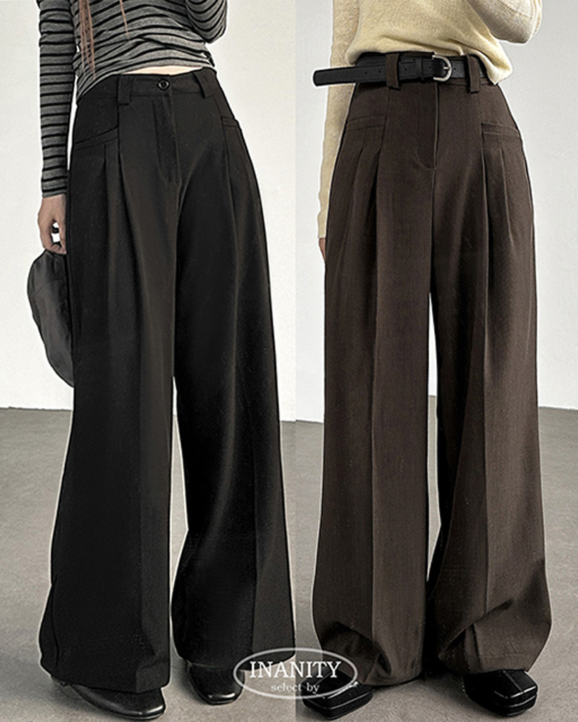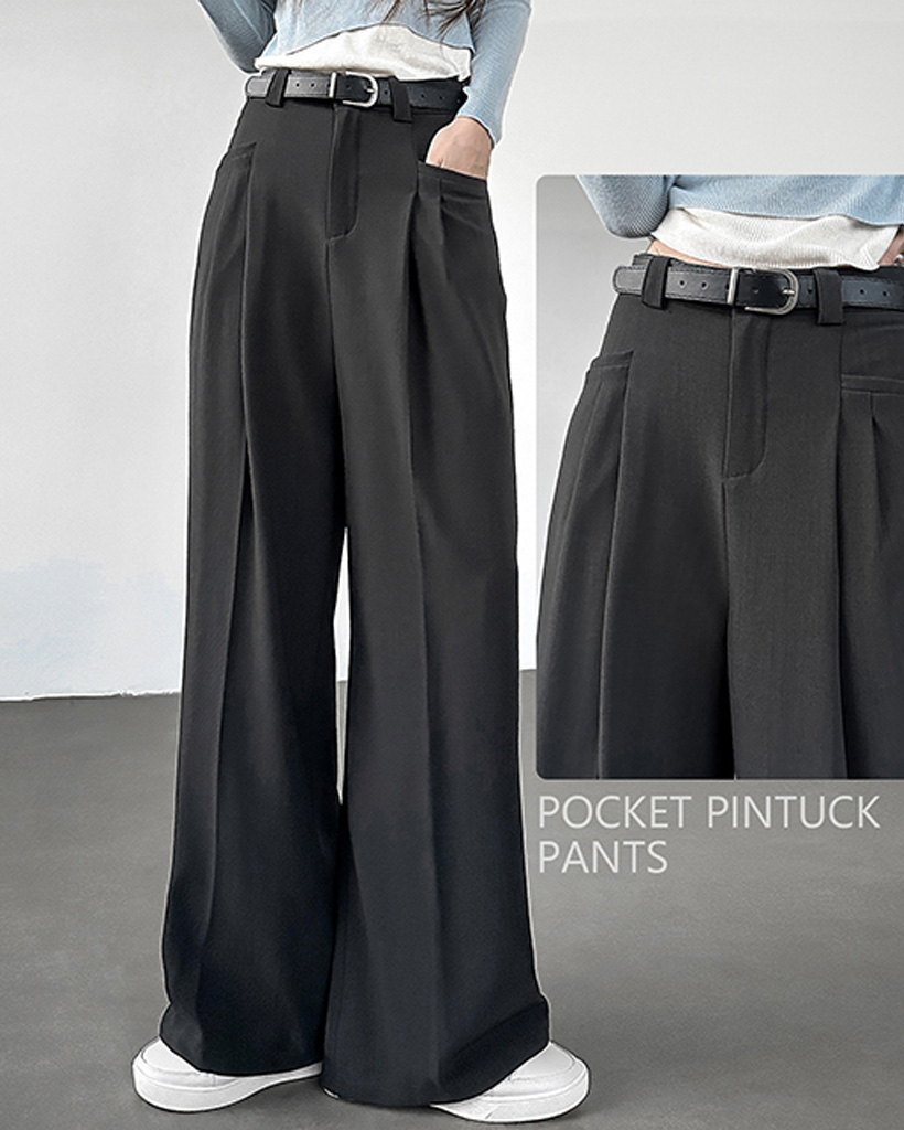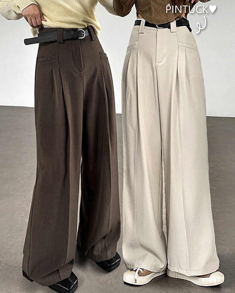 ハイウエストポケット付きタック入りワイドスラックス