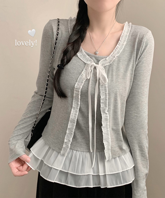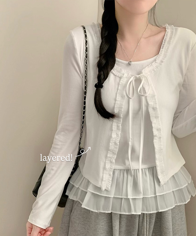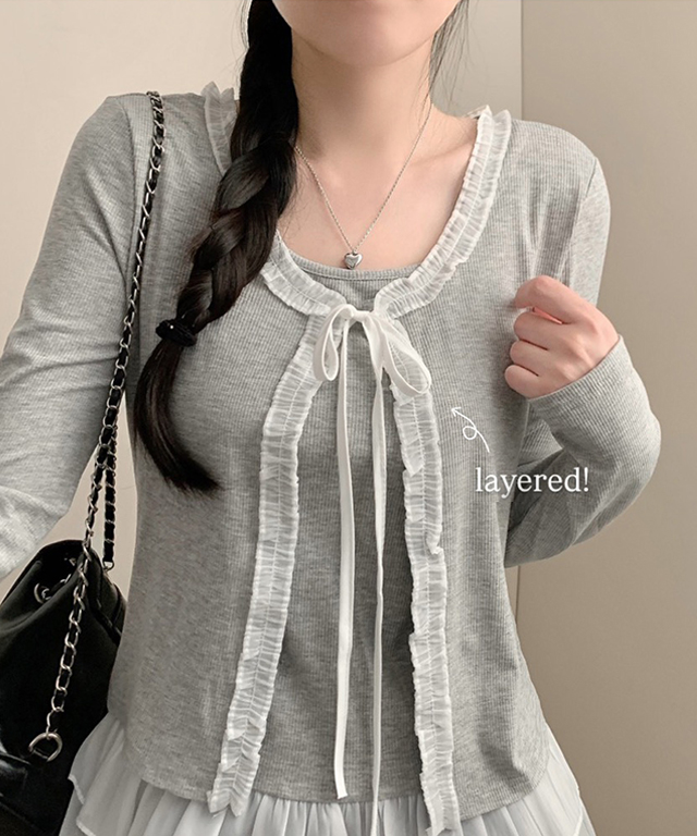(2color)ティアードレースレイヤードTシャツ
