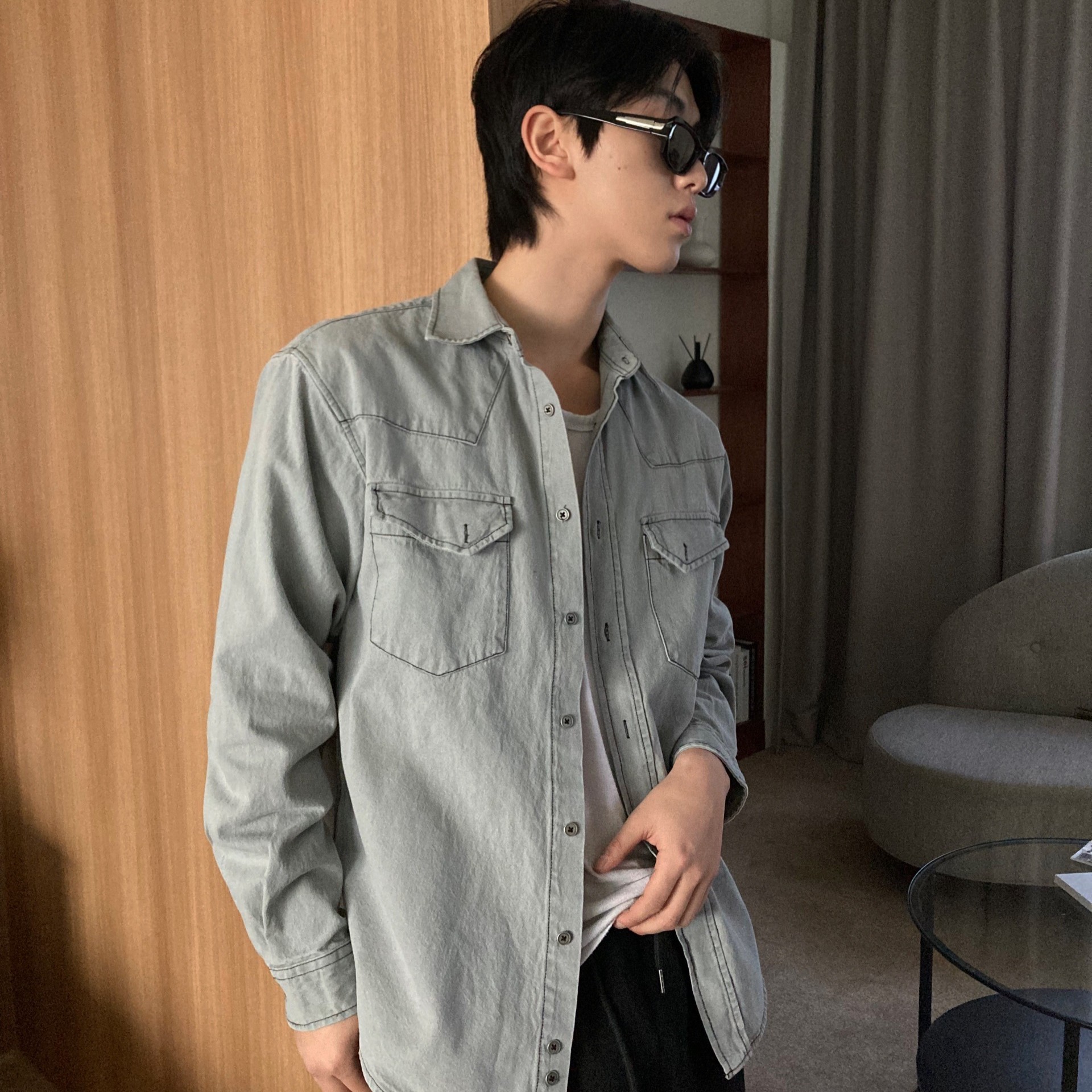 Western denim shirt (3color)