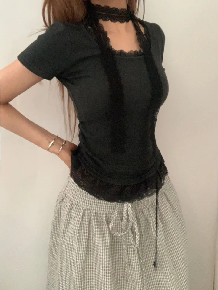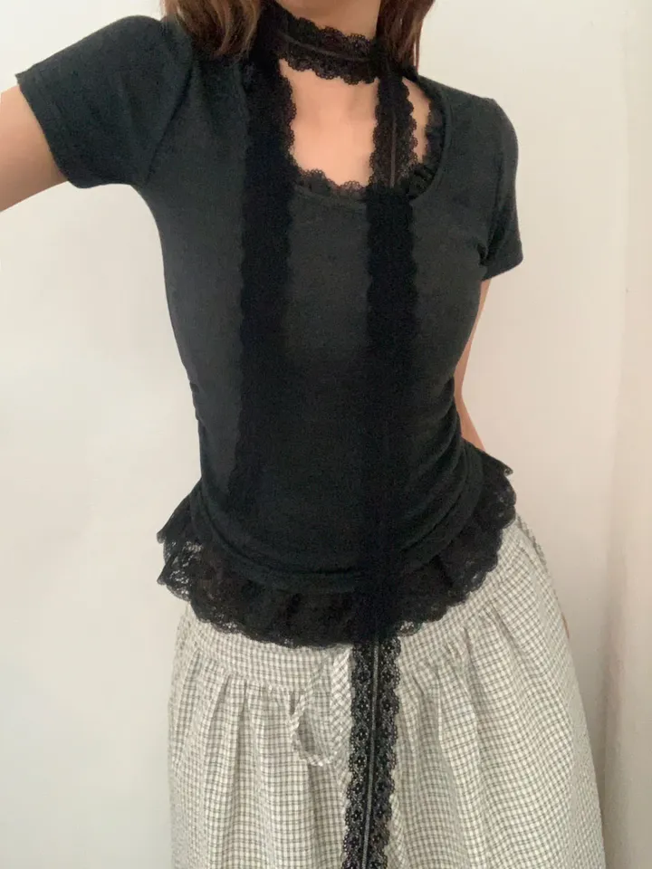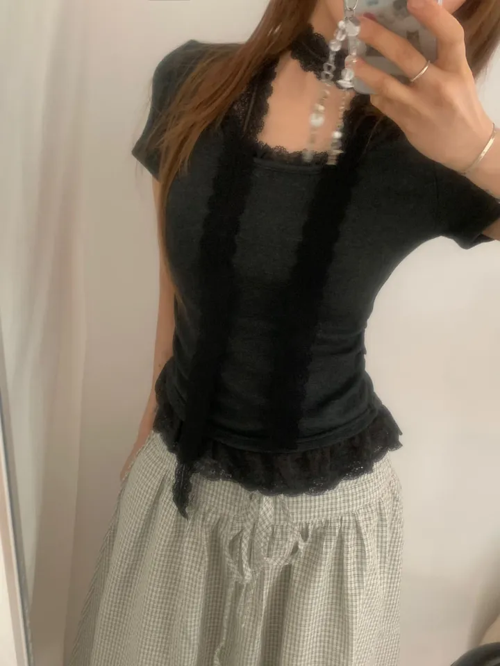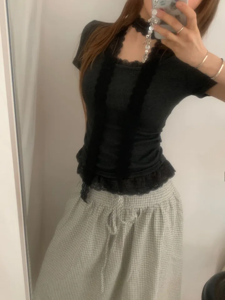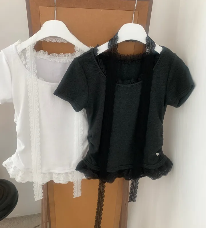 [タイセット]レースシャーリング半袖Tシャツ