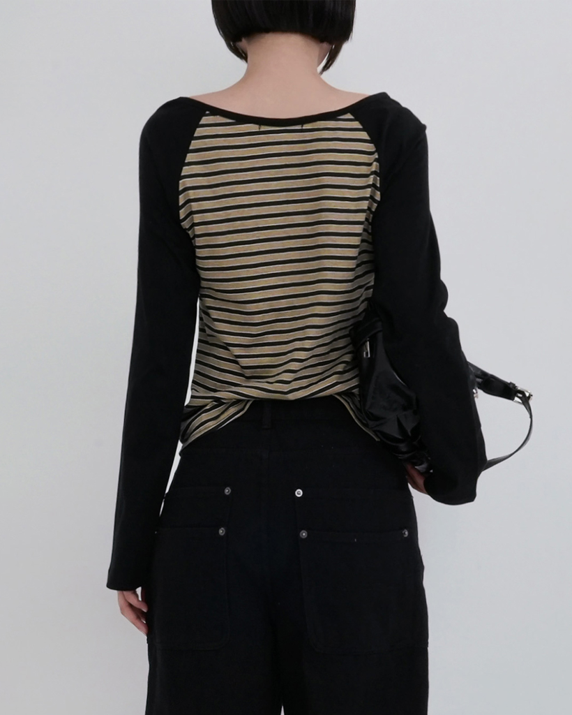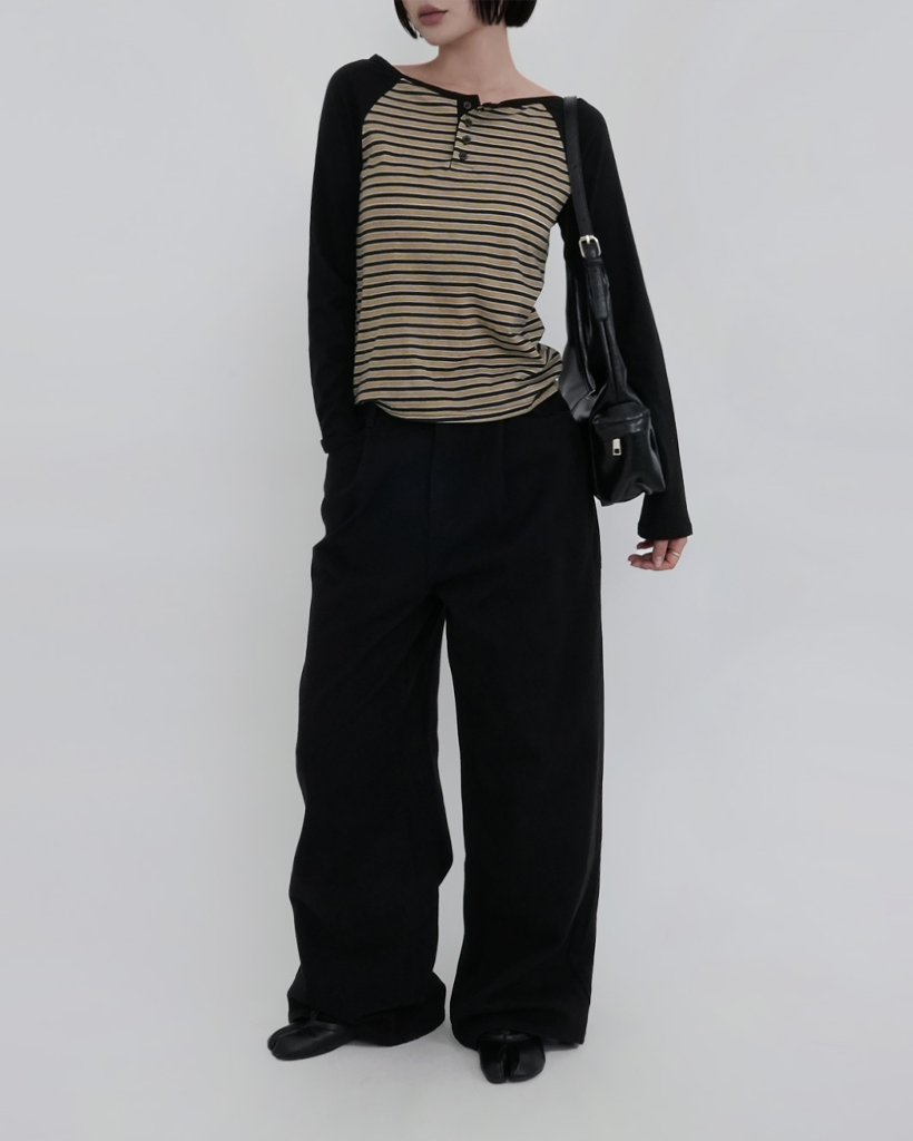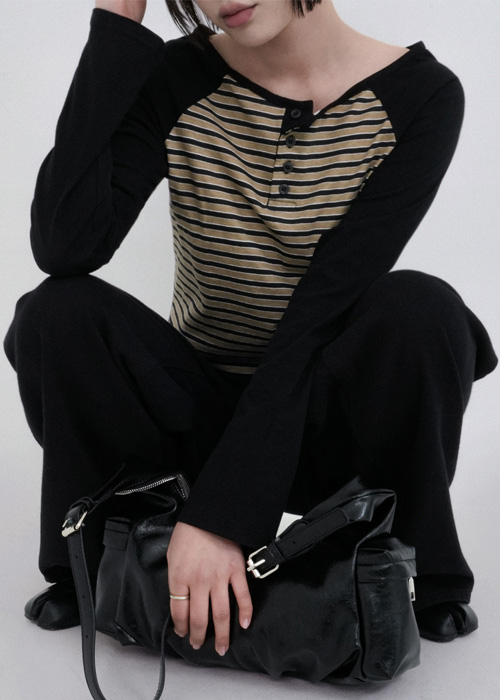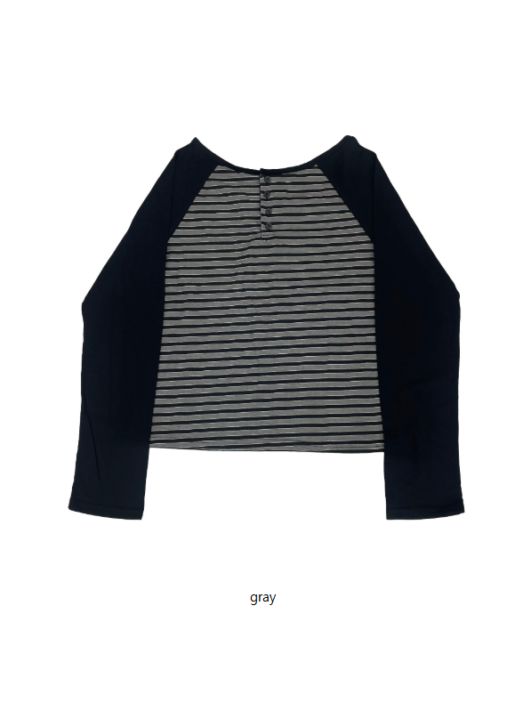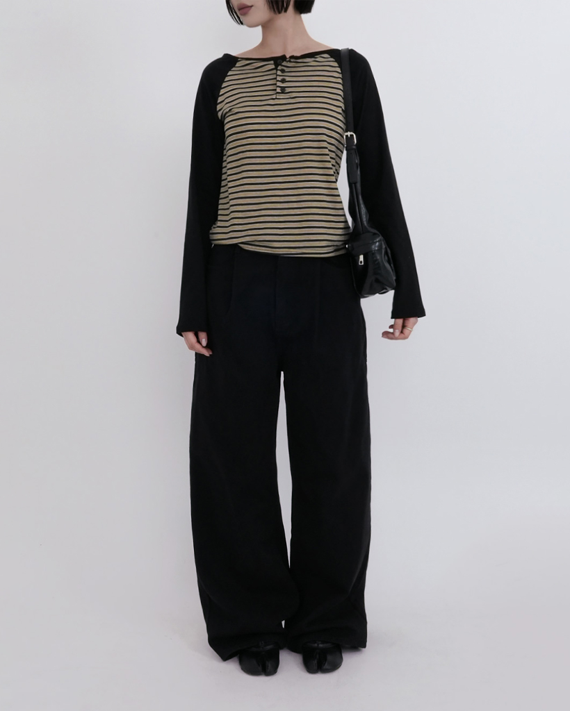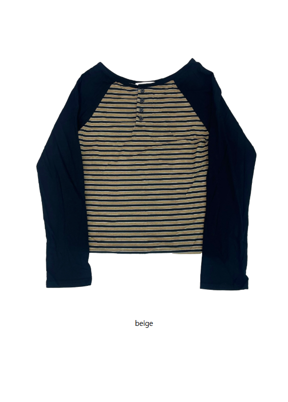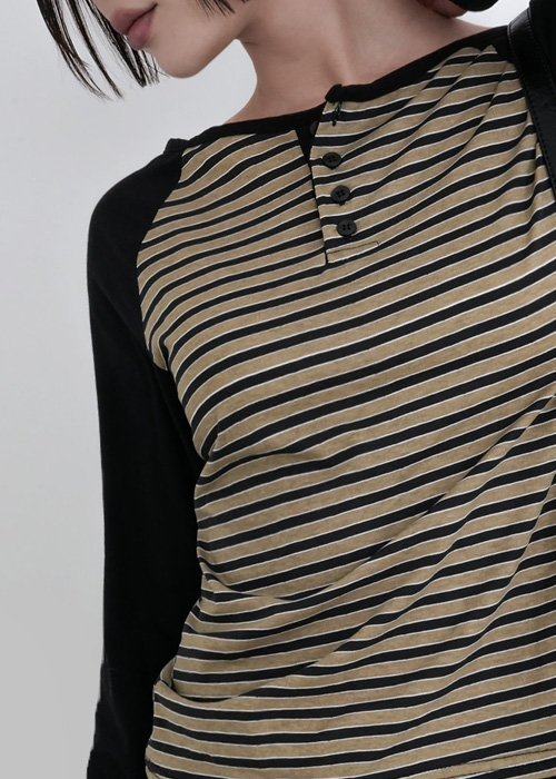 (High quality !) ラグラン ヘンリーネック ボーダー 長袖 Tシャツ