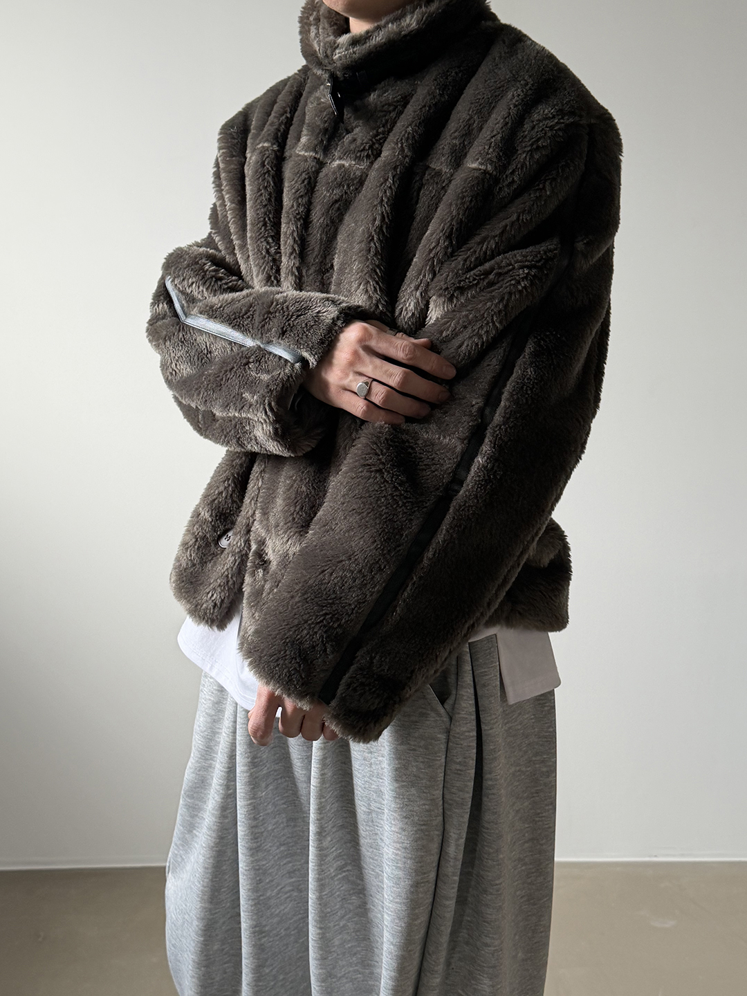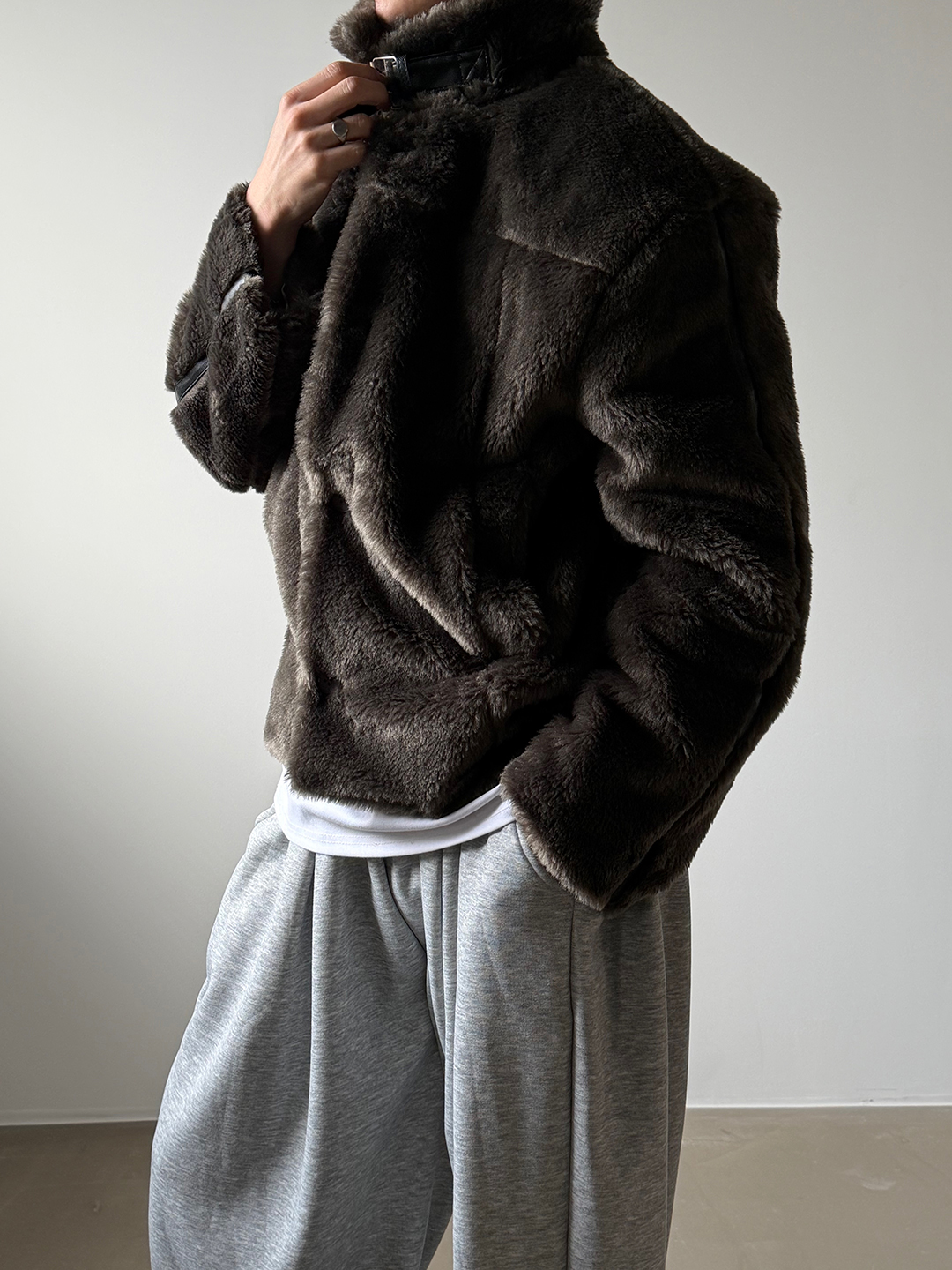 (3color) レザーライン ファー ムートンジャケット