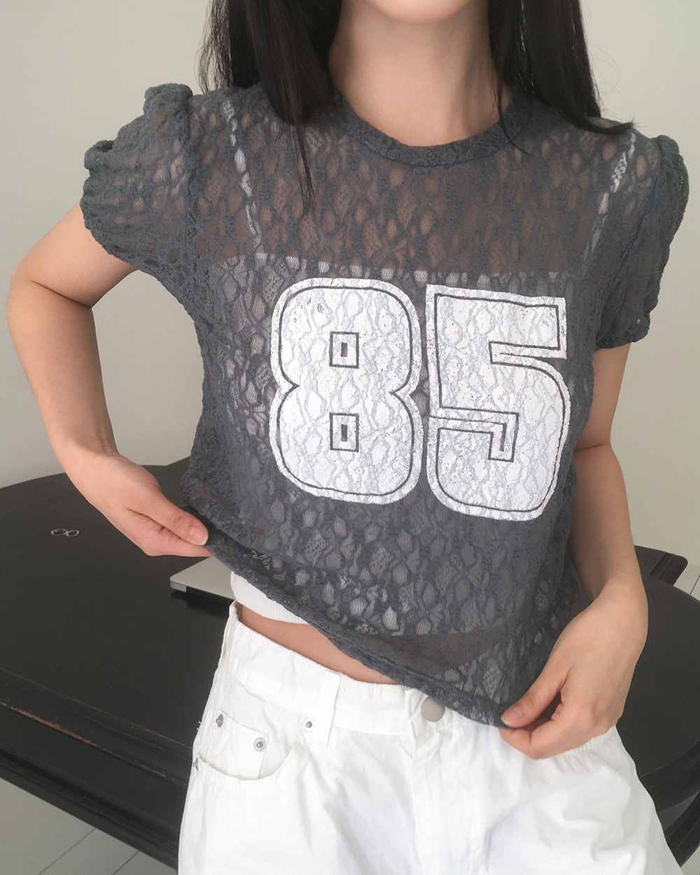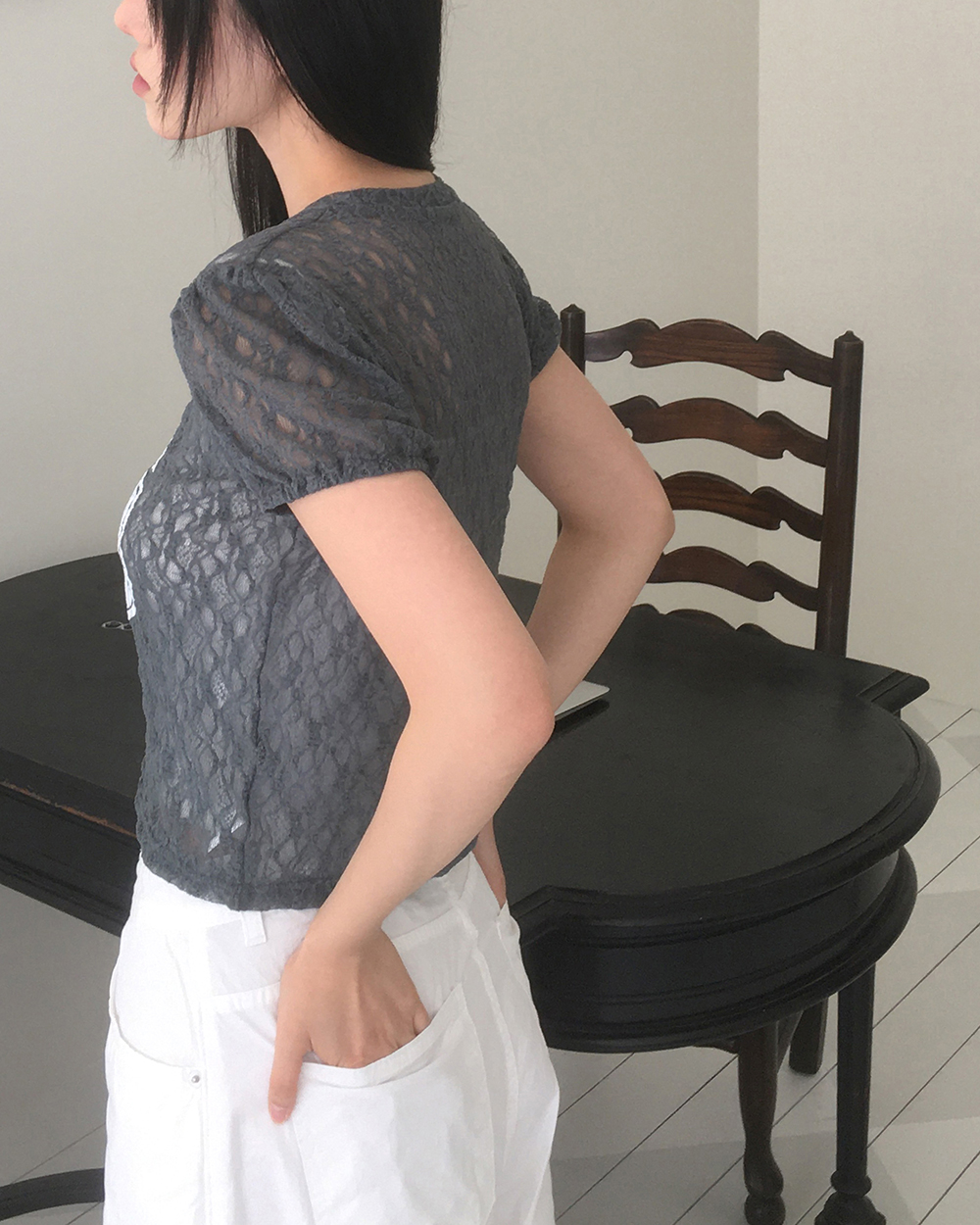 Nosen Lace Puff Short Sleeve T-shirt
