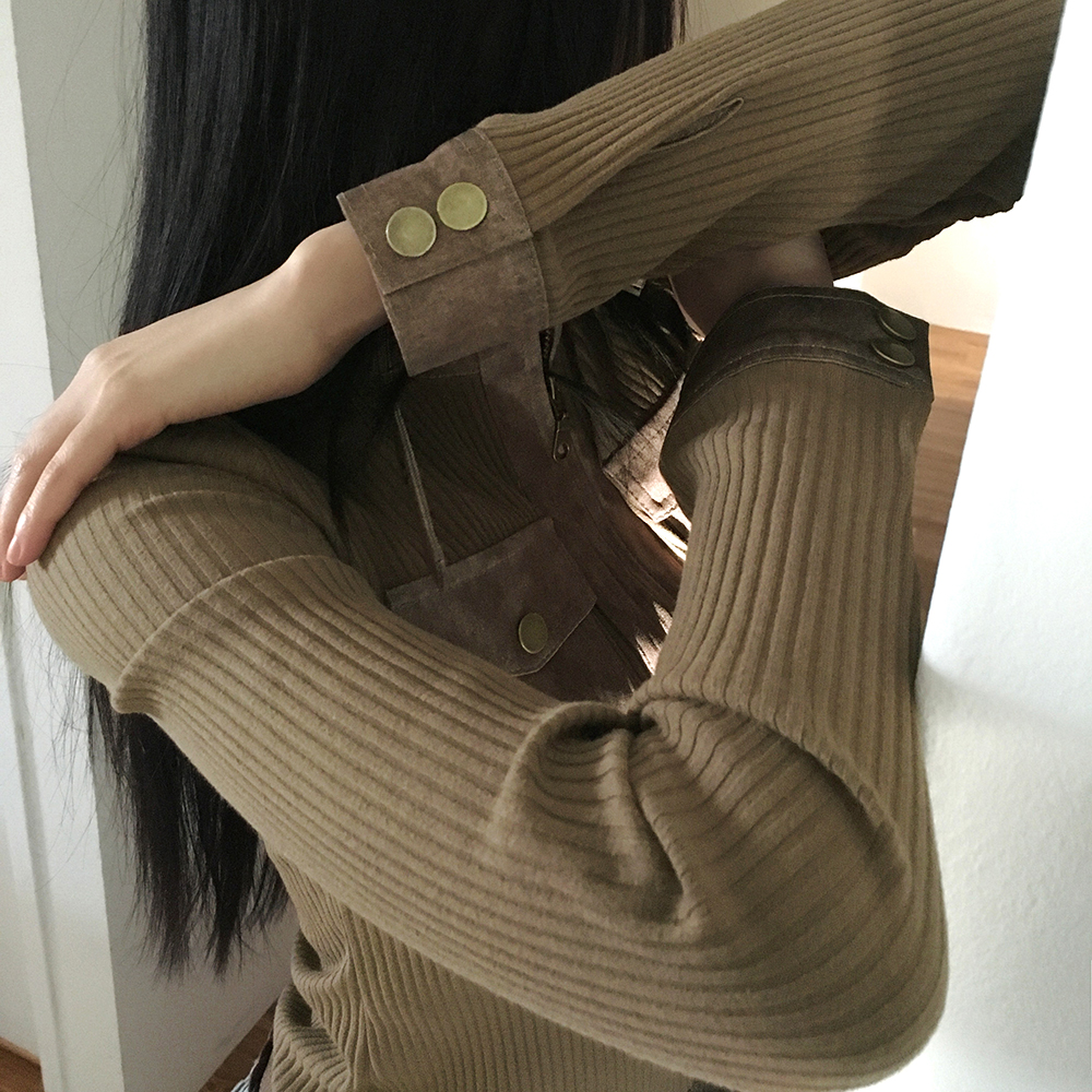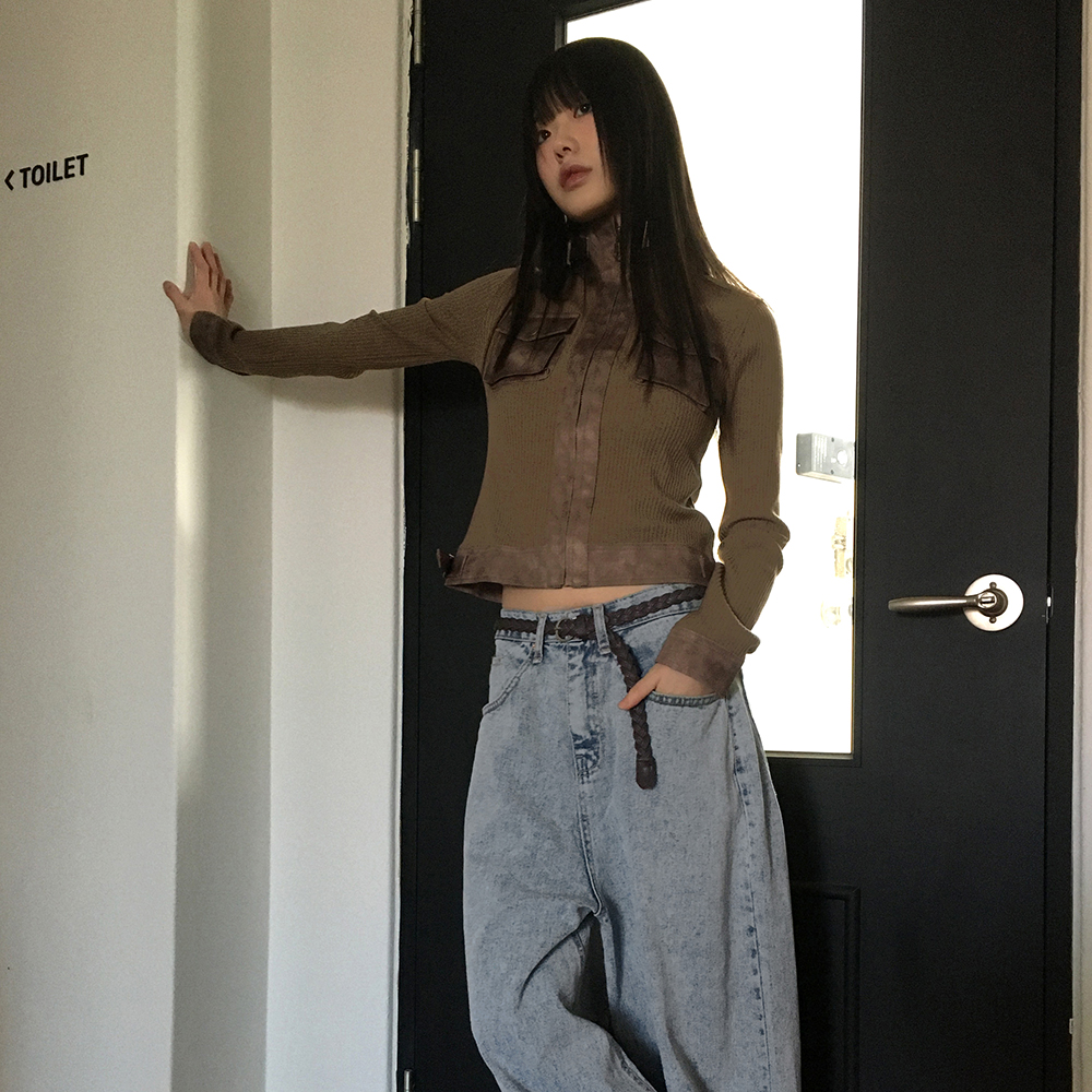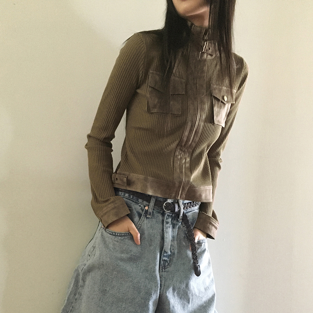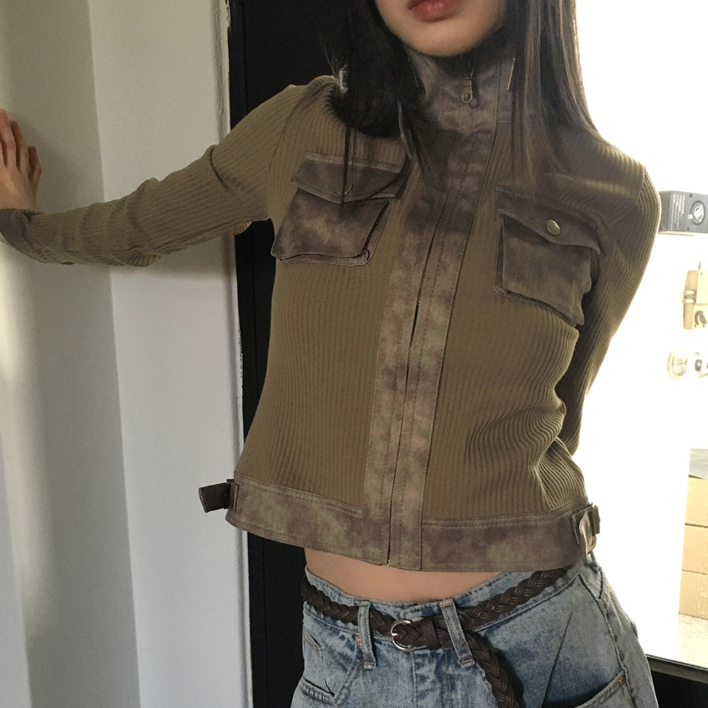 ヴィンテージウォッシュバイカラーリブニットジップ