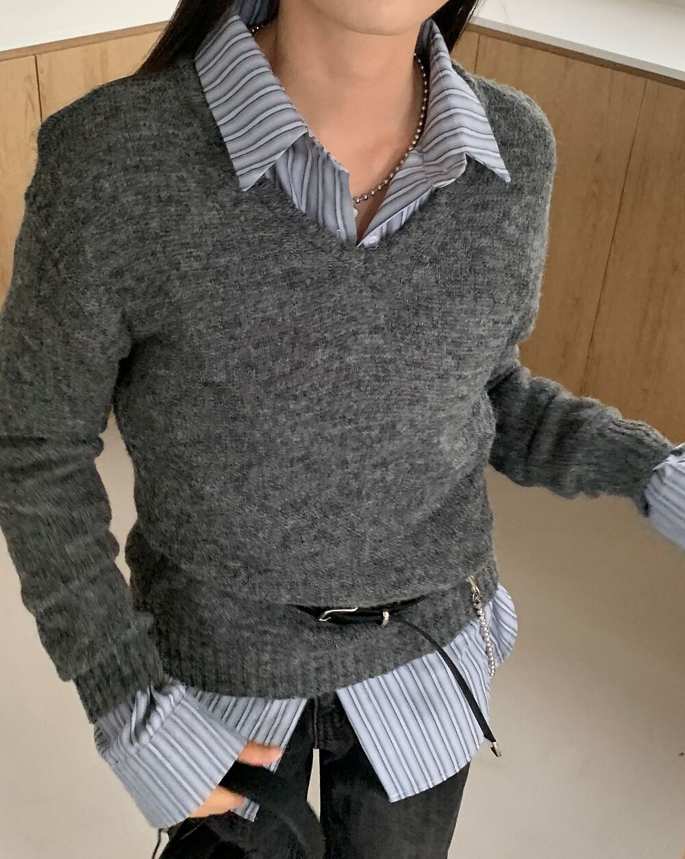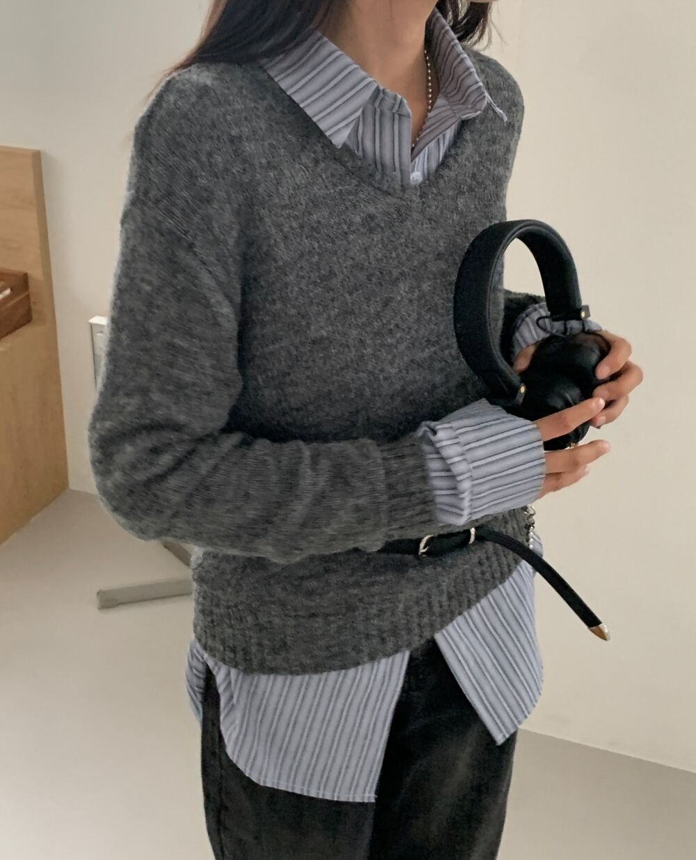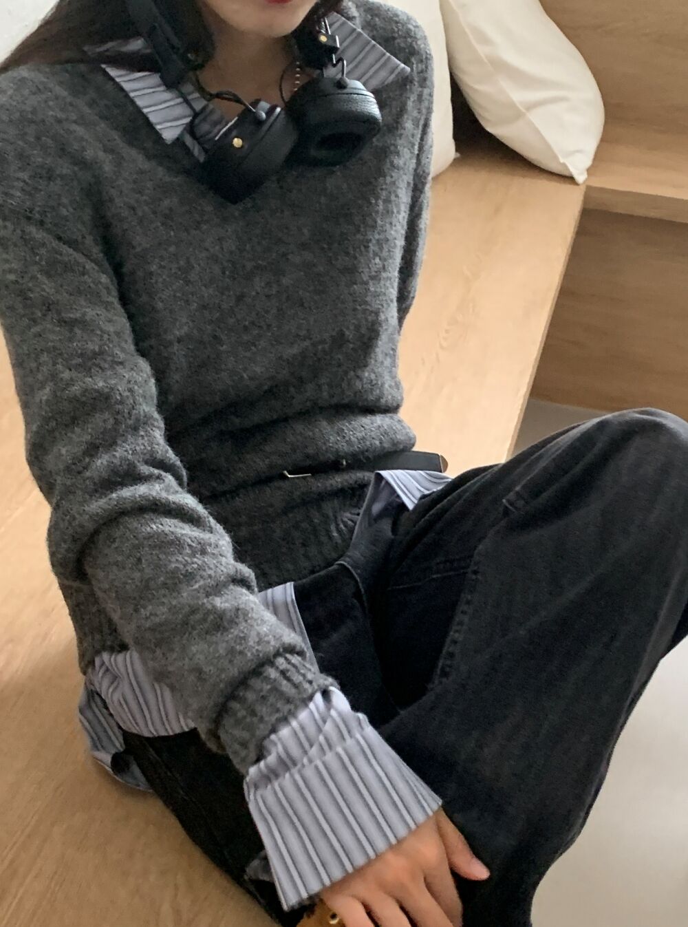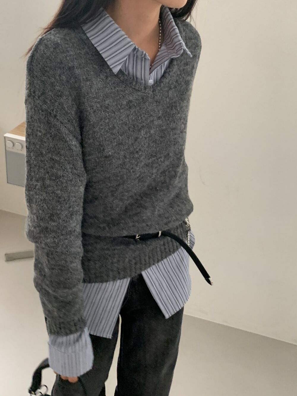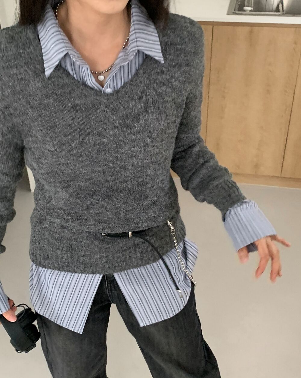 レイヤードVネックルーズフィット長袖ニットレイヤード