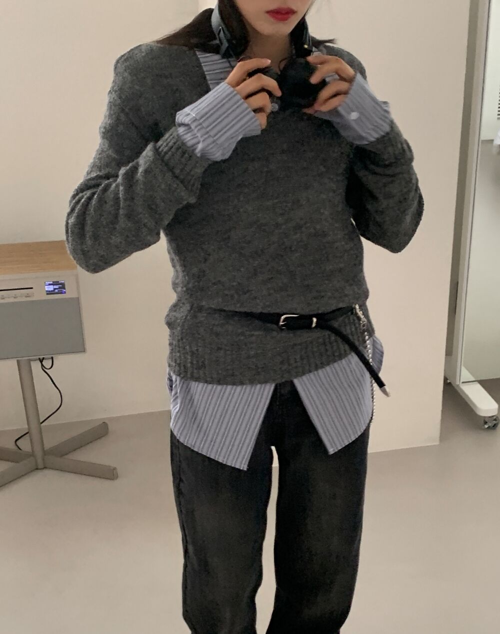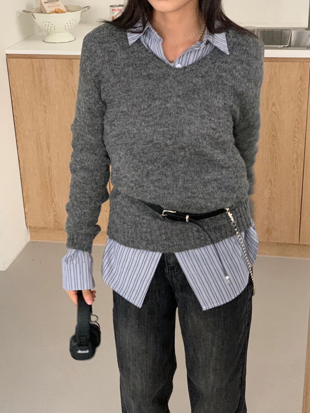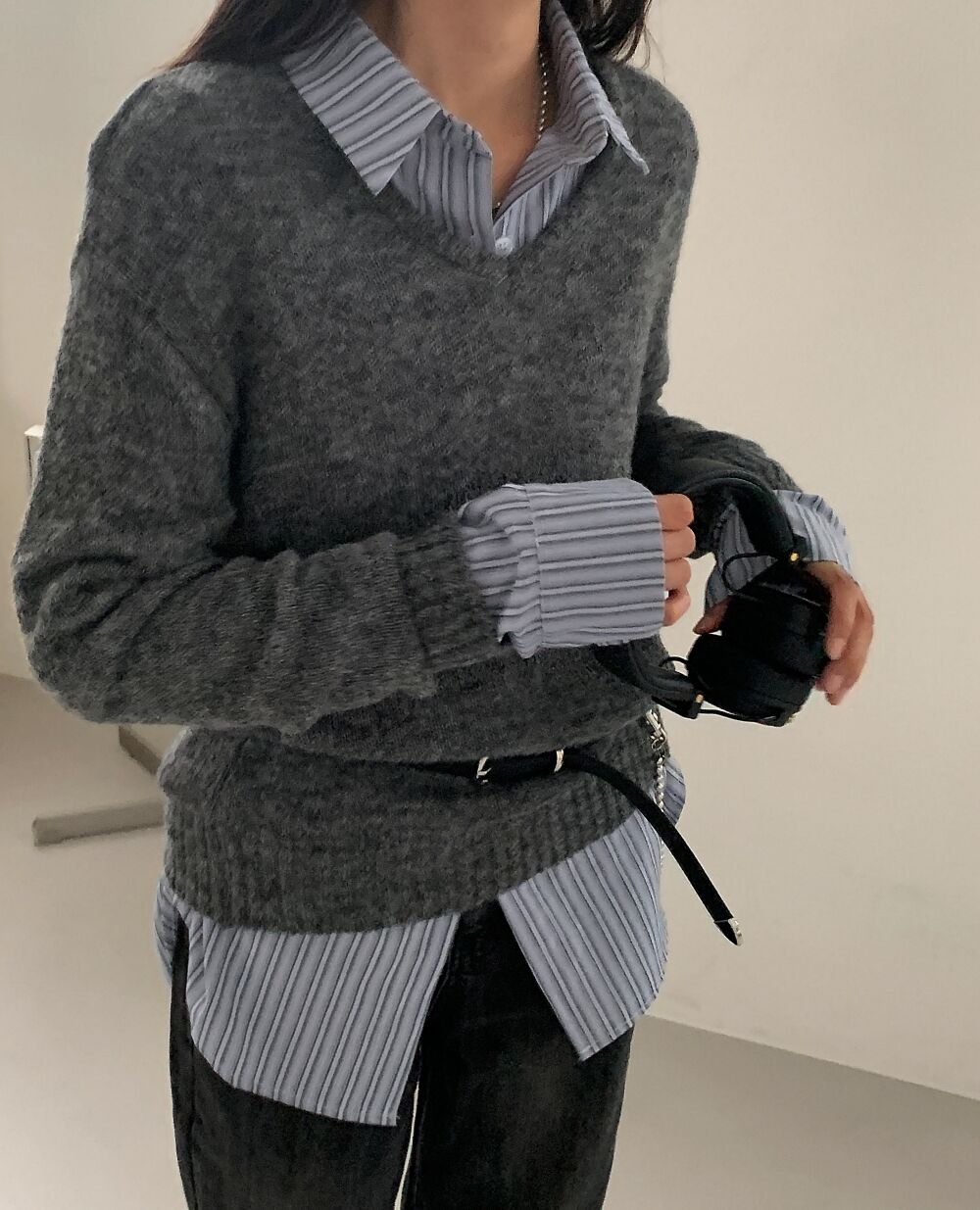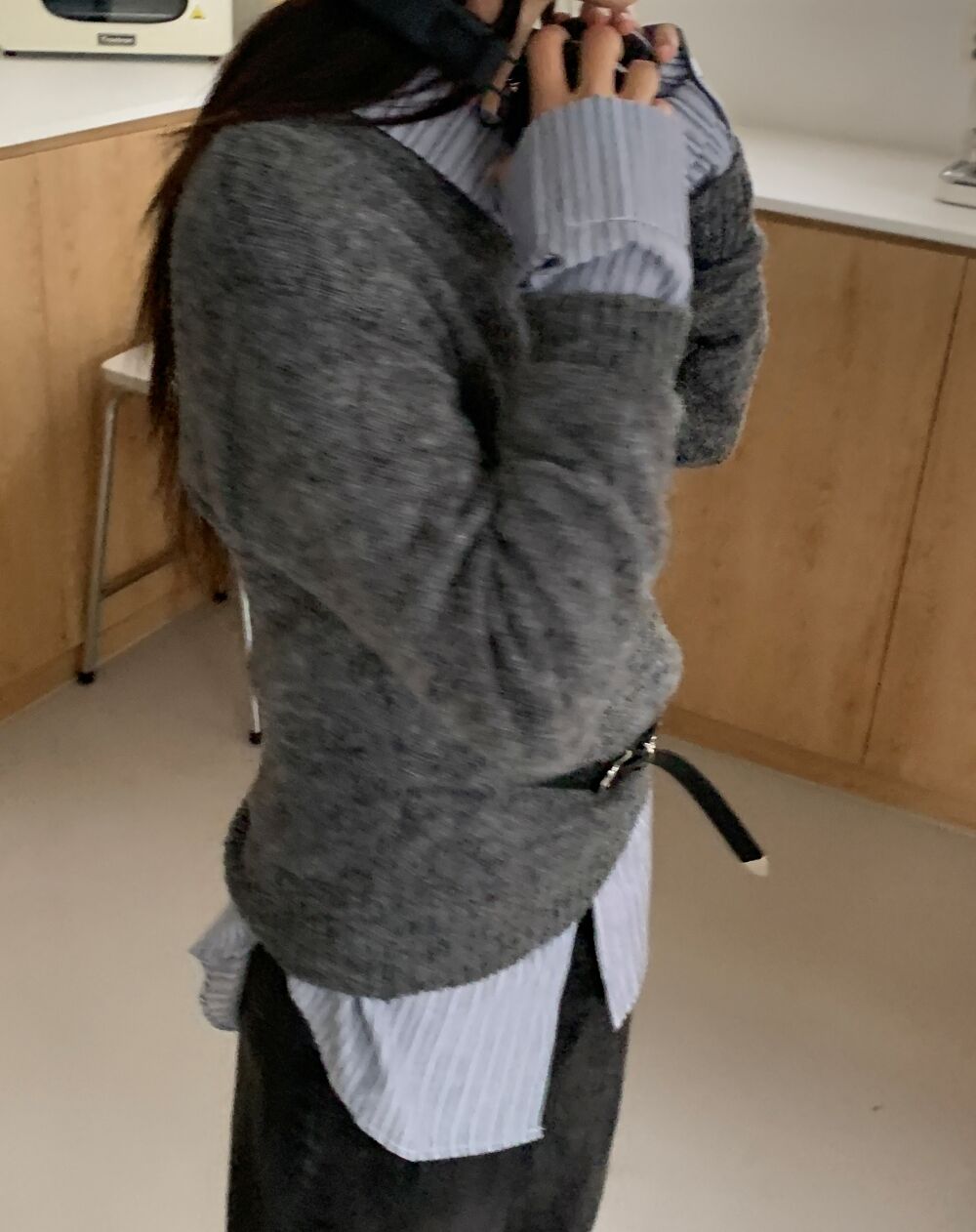 レイヤードVネックルーズフィット長袖ニットレイヤード