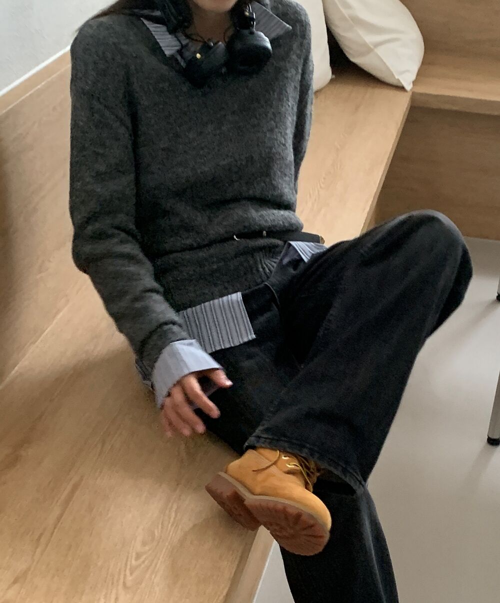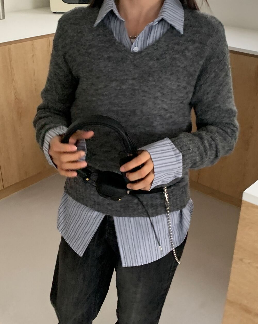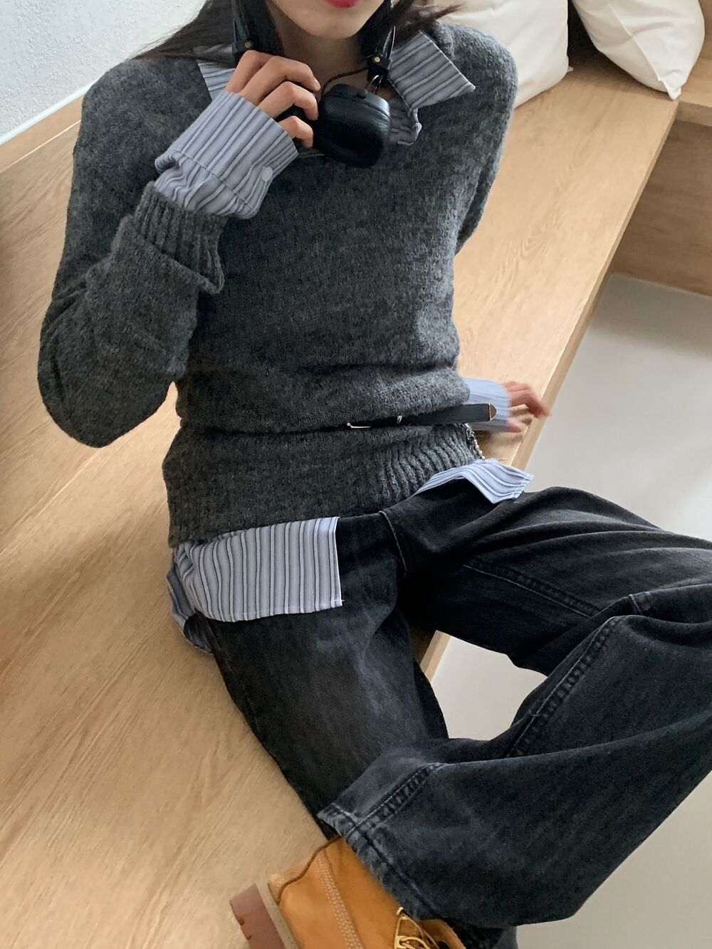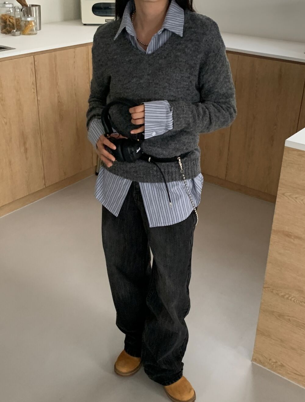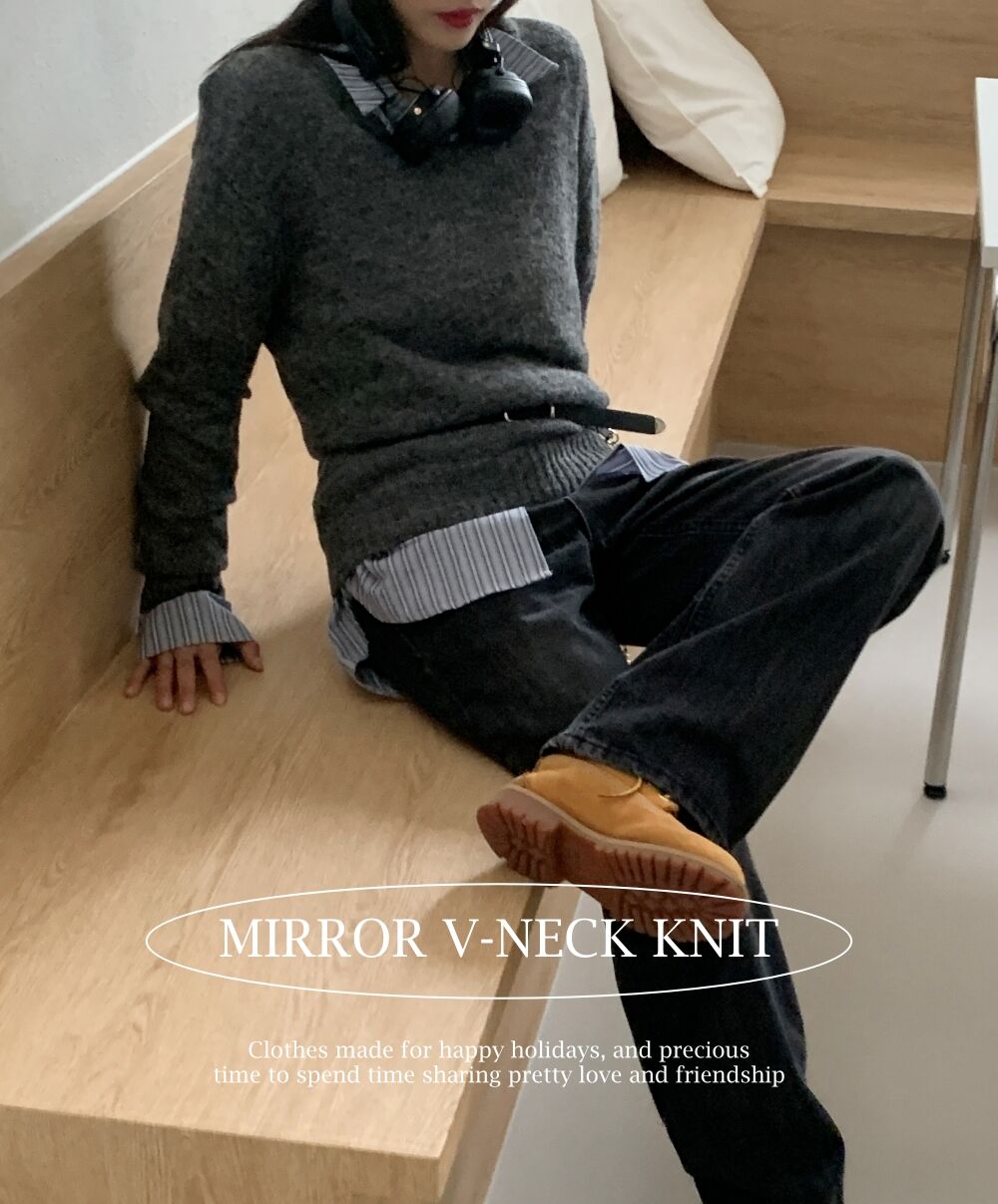 レイヤードVネックルーズフィット長袖ニットレイヤード