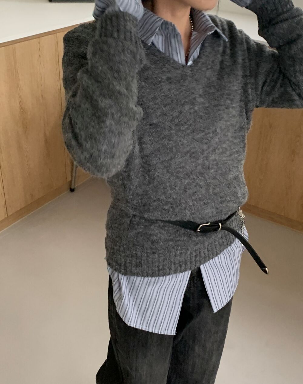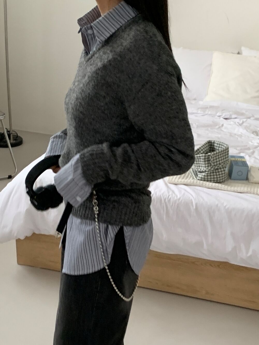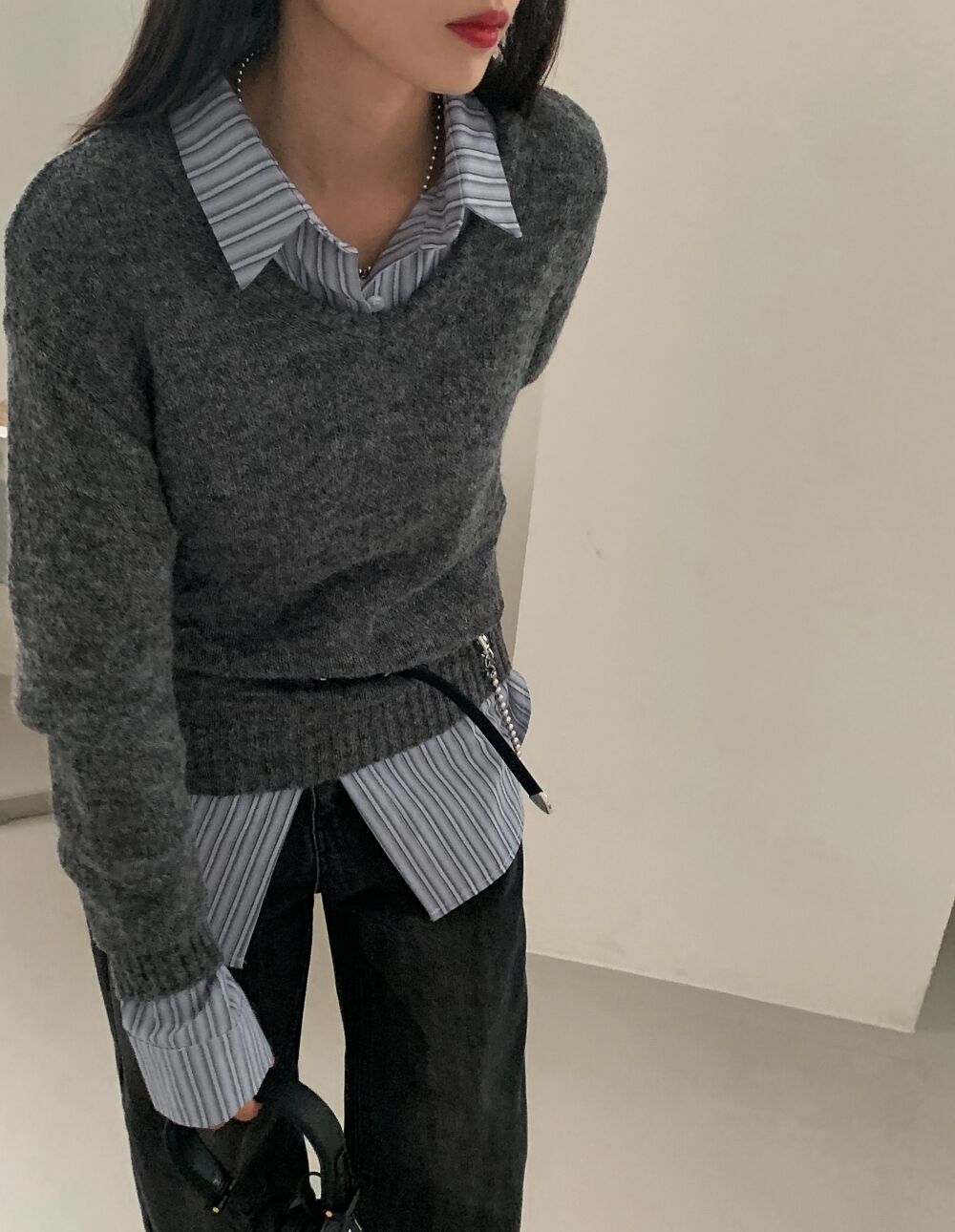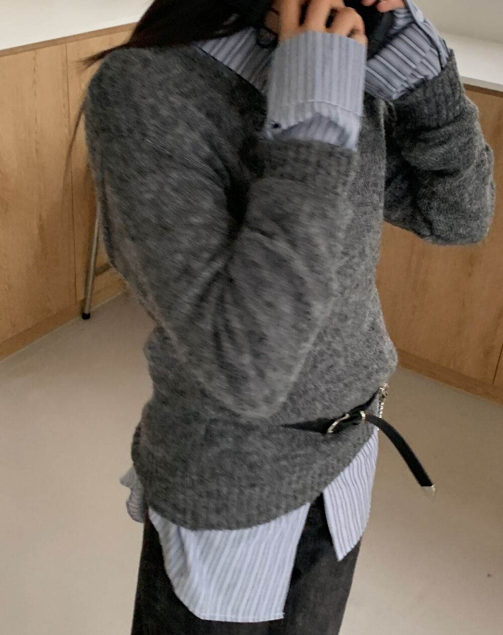 レイヤードVネックルーズフィット長袖ニットレイヤード
