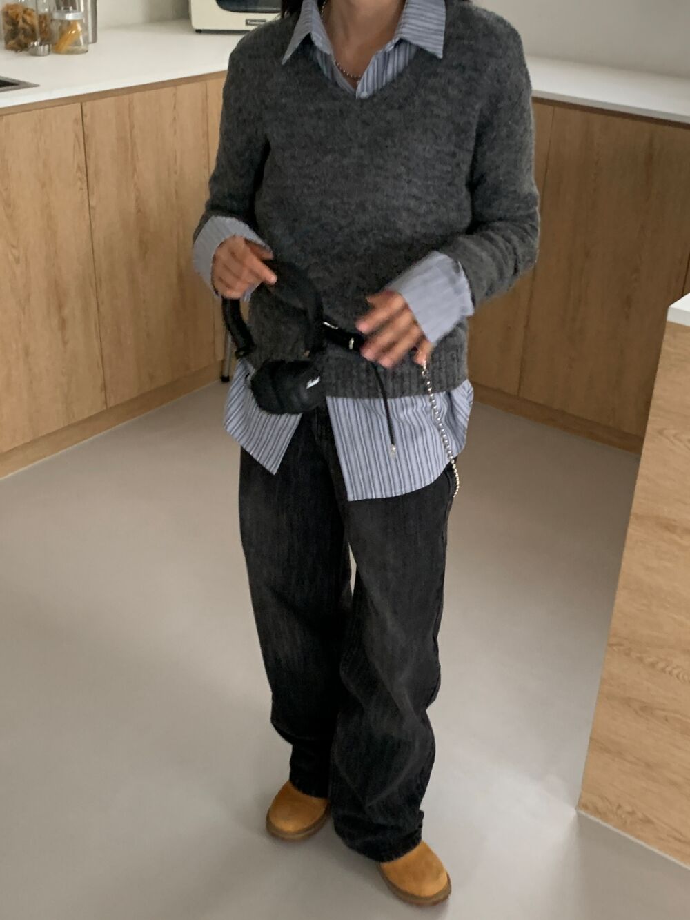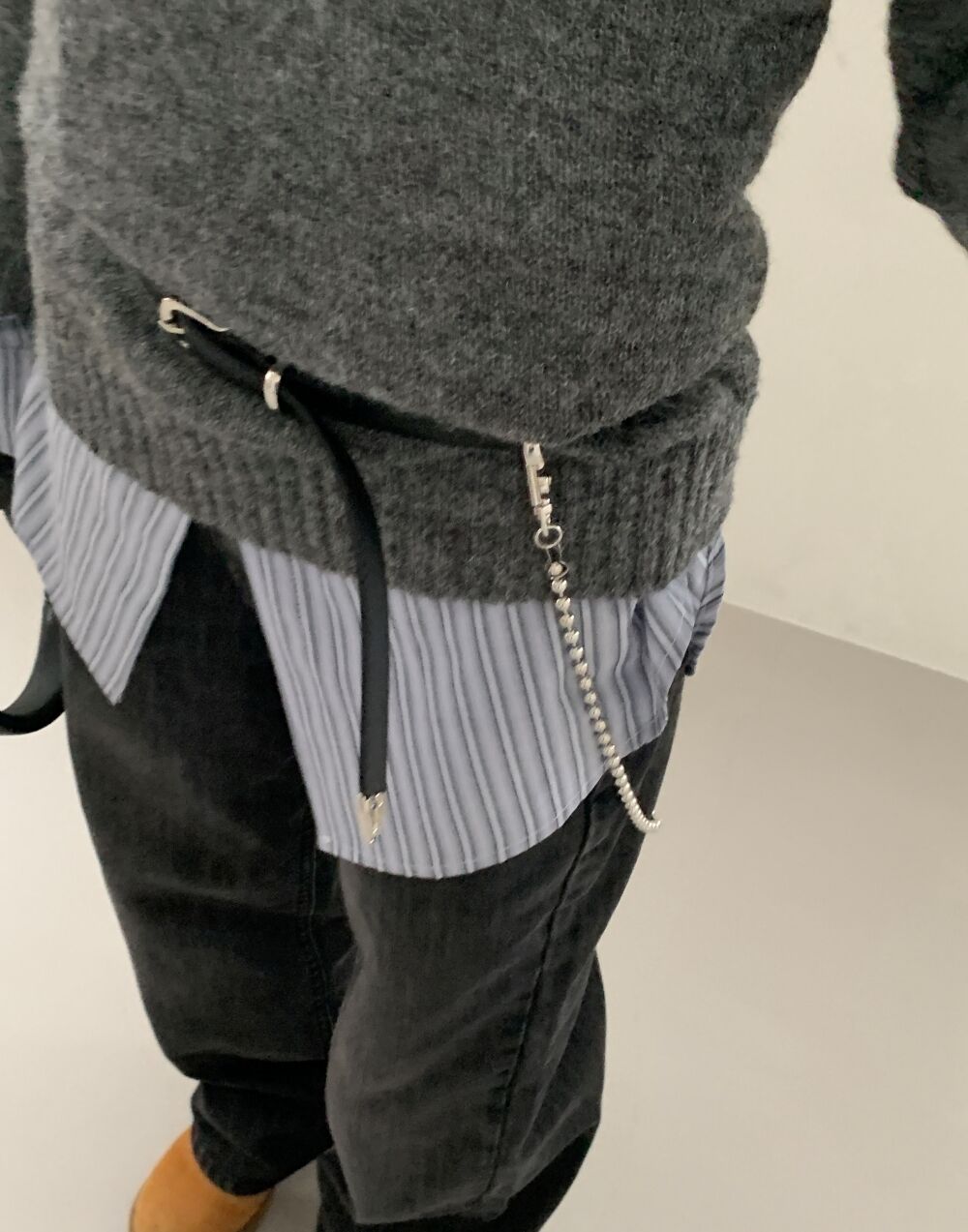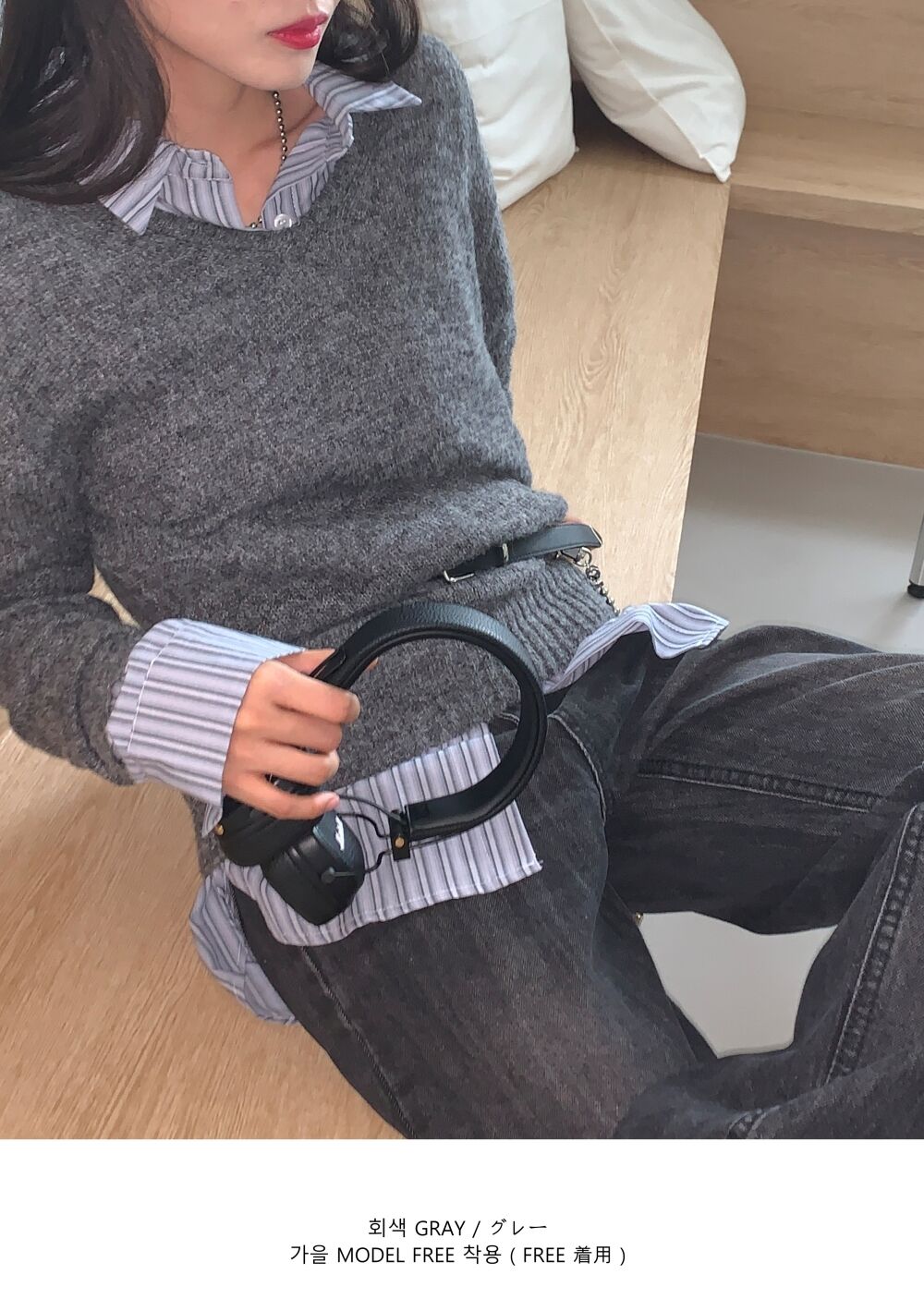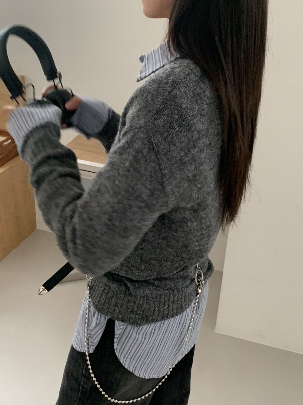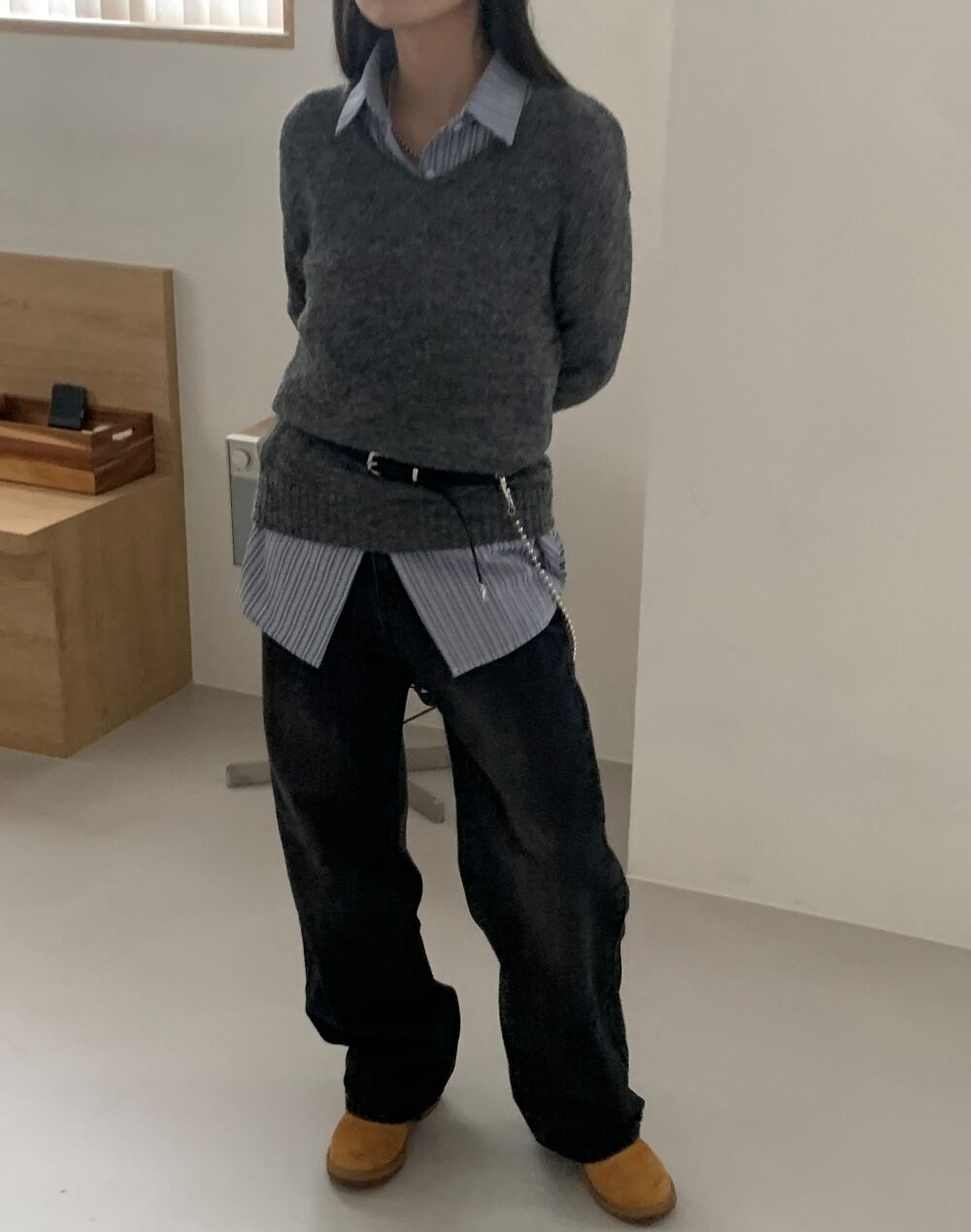 レイヤードVネックルーズフィット長袖ニットレイヤード