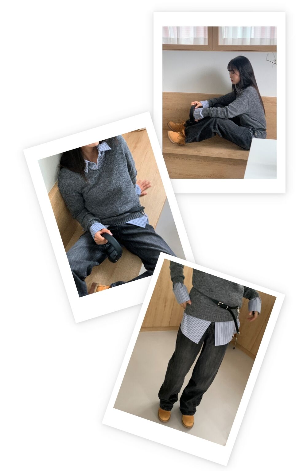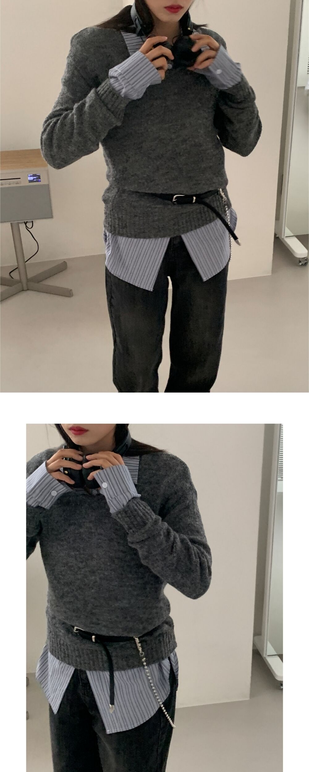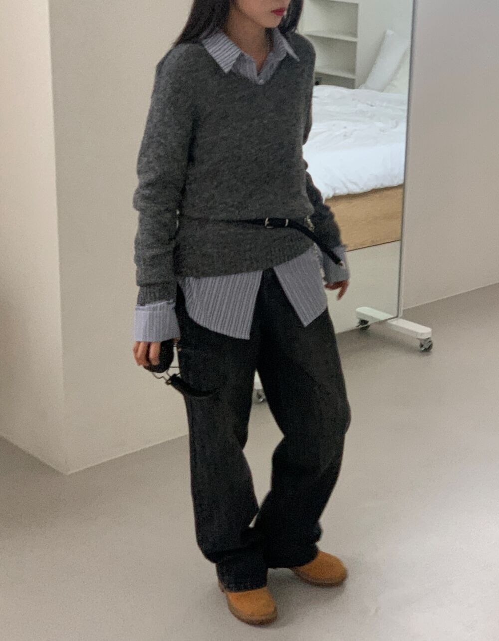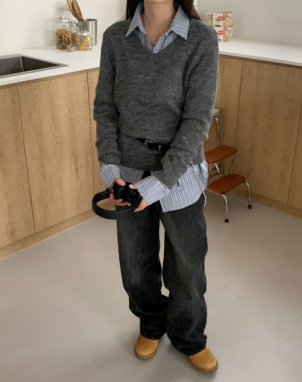 レイヤードVネックルーズフィット長袖ニットレイヤード
