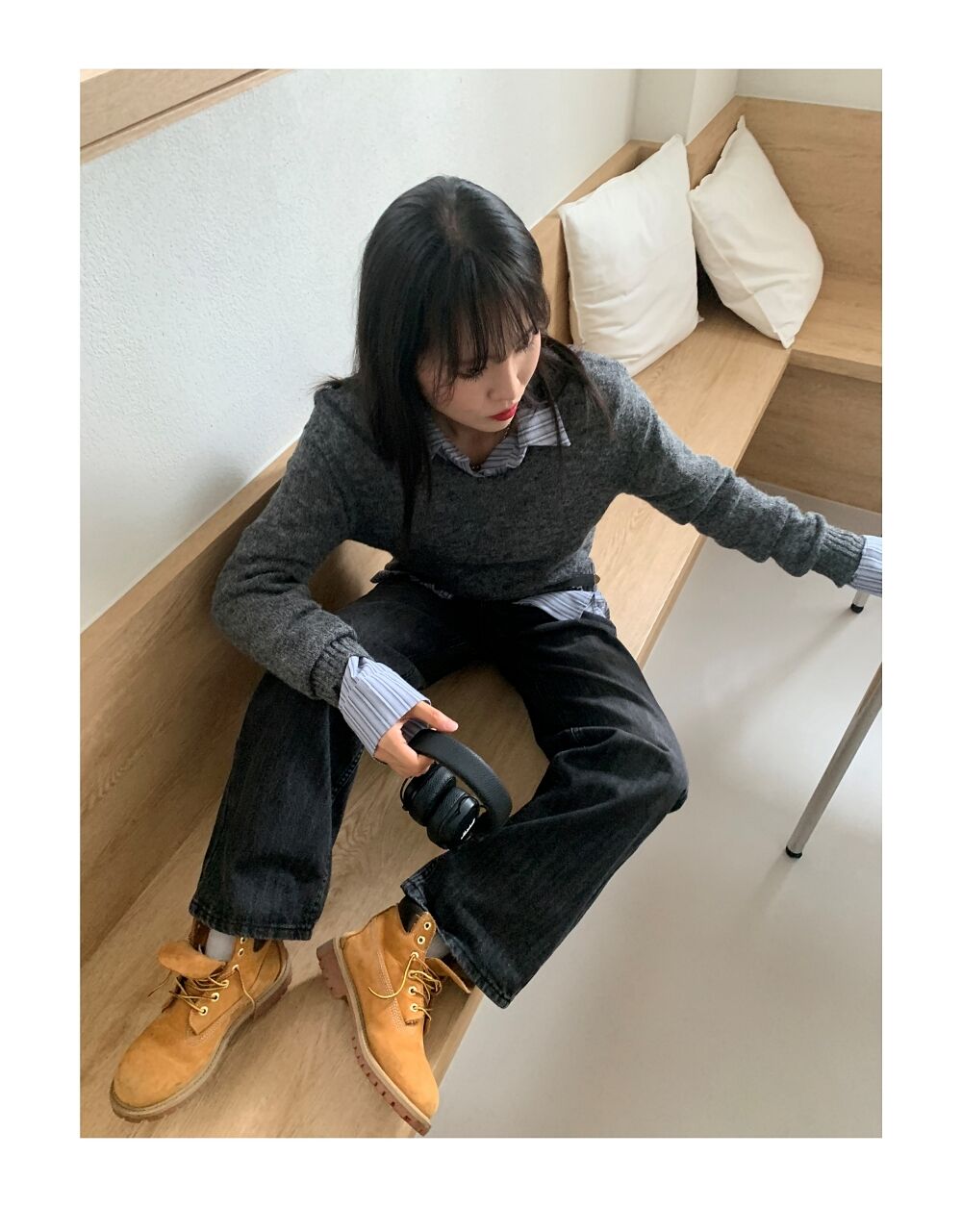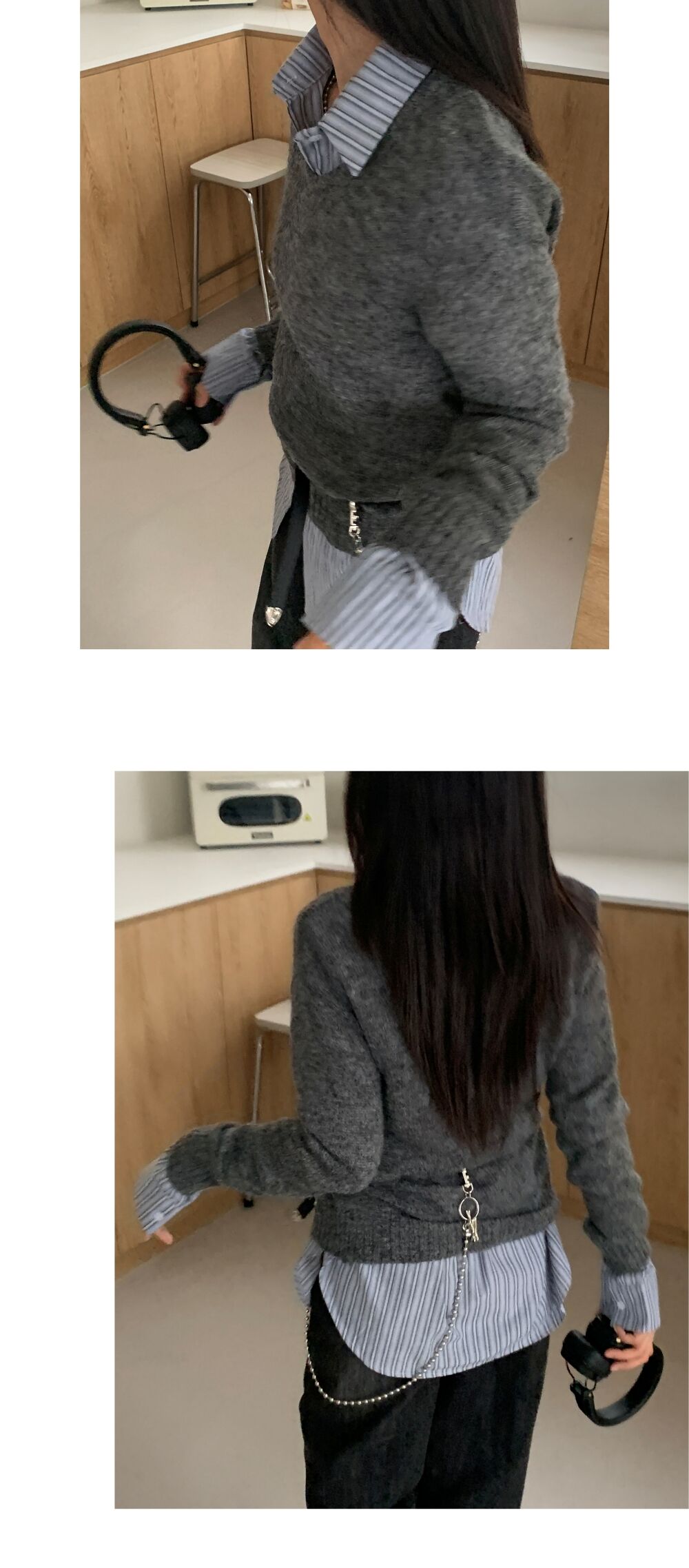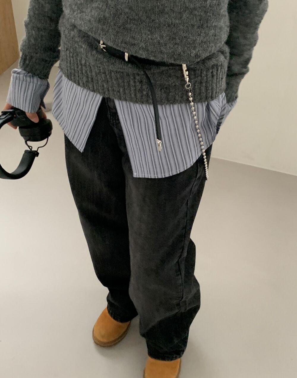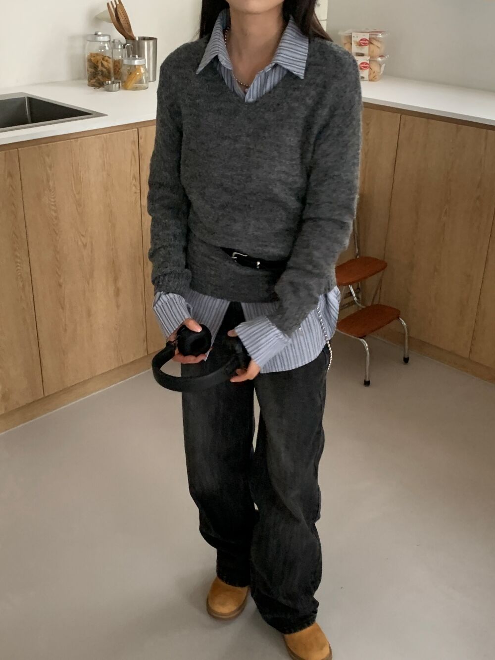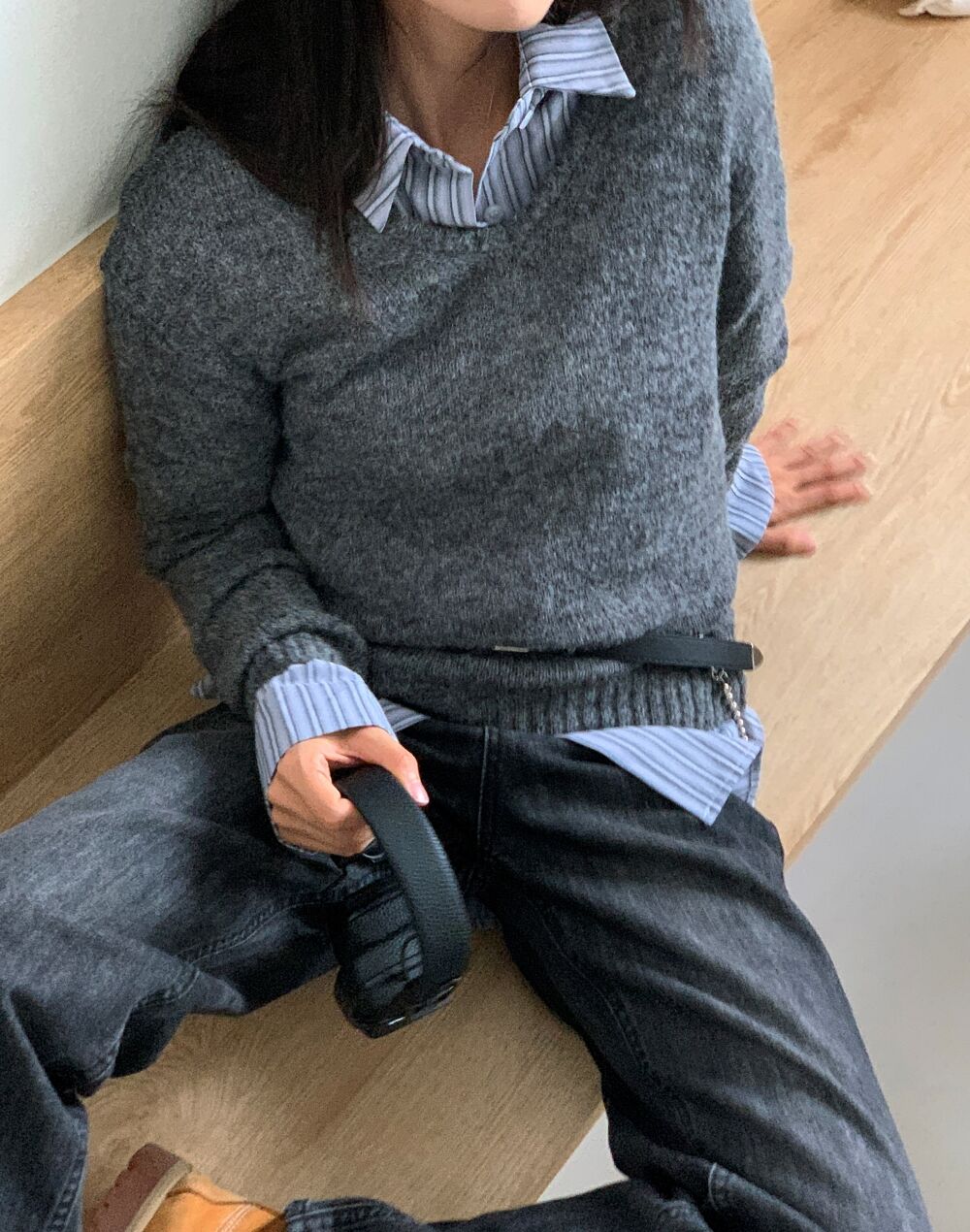 レイヤードVネックルーズフィット長袖ニットレイヤード