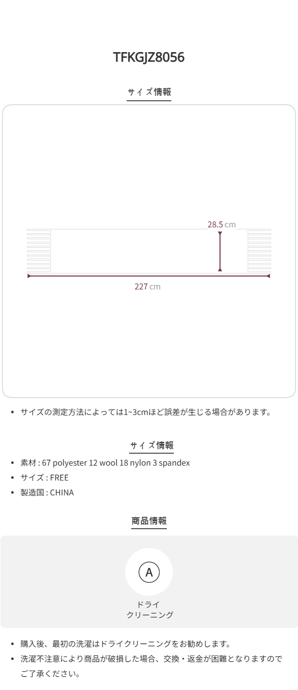 폴리에스테르 67%, 울 12%, 나일론 18%, 스판 3%