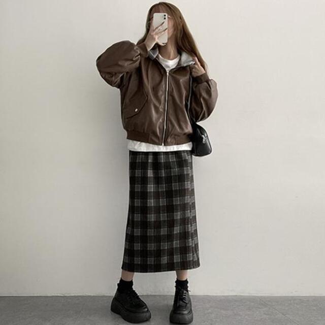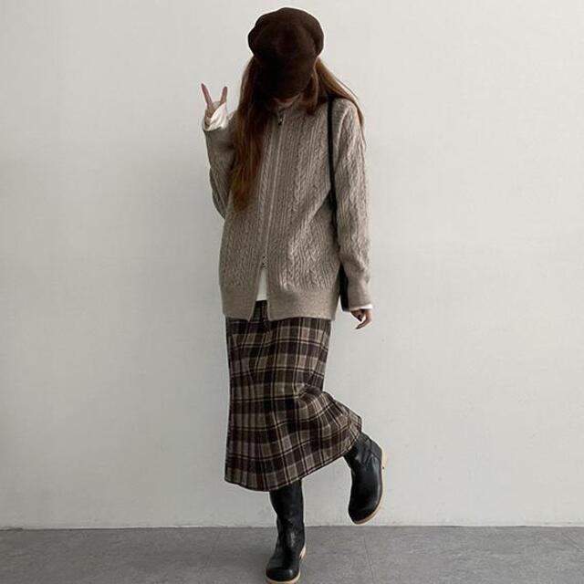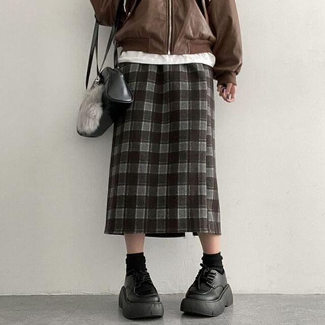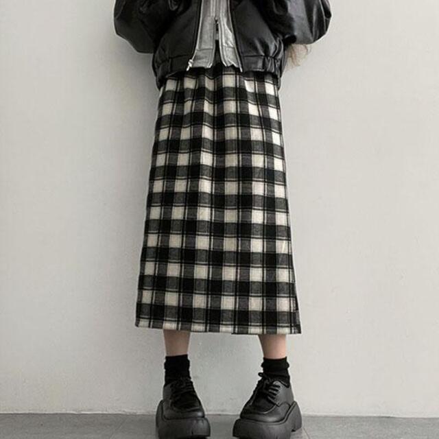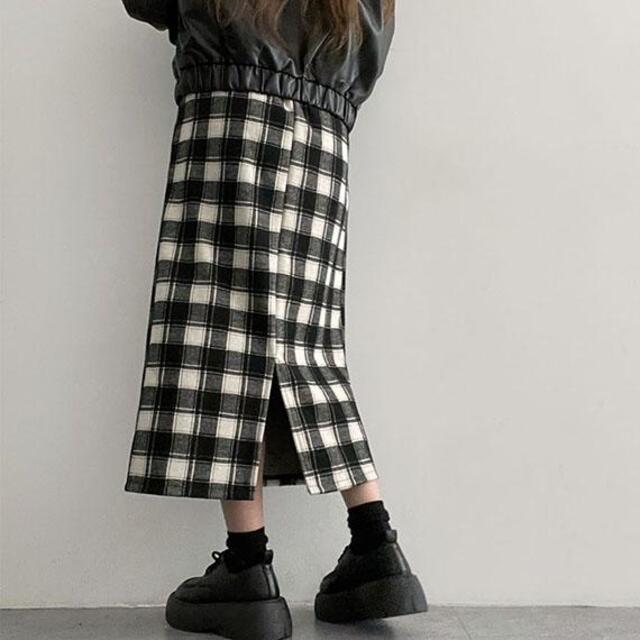 バックスリットチェックウエストゴムロングスカート