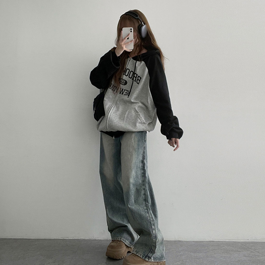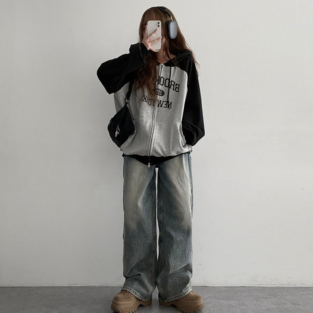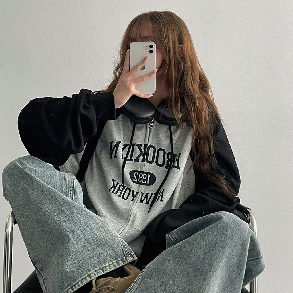 [3color]オーバーラグランフード付きパーカー