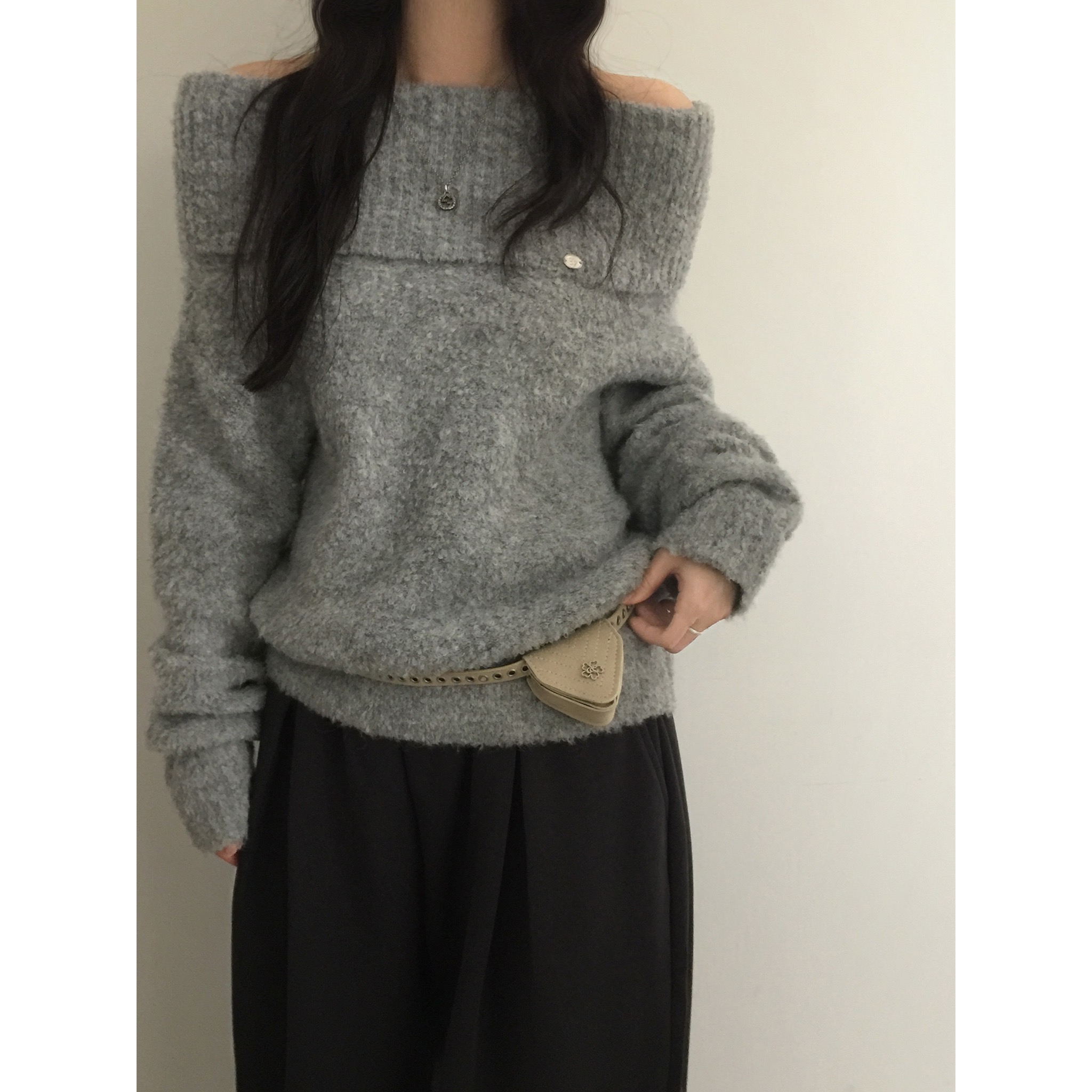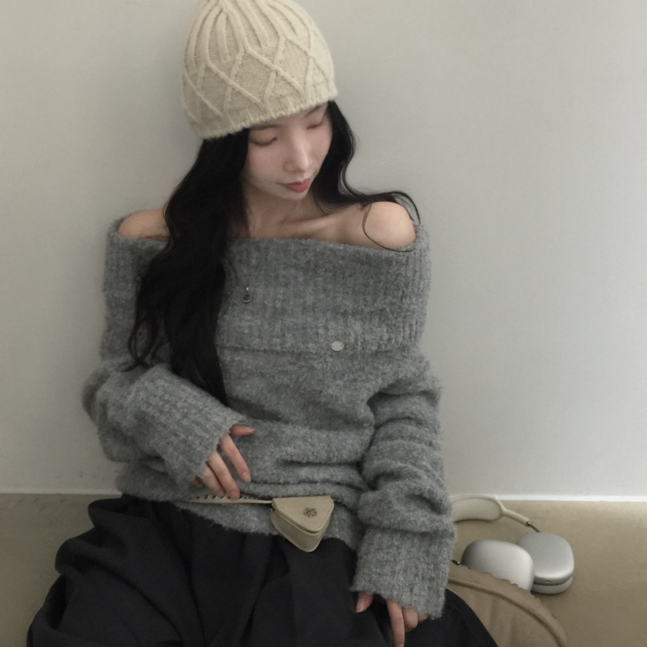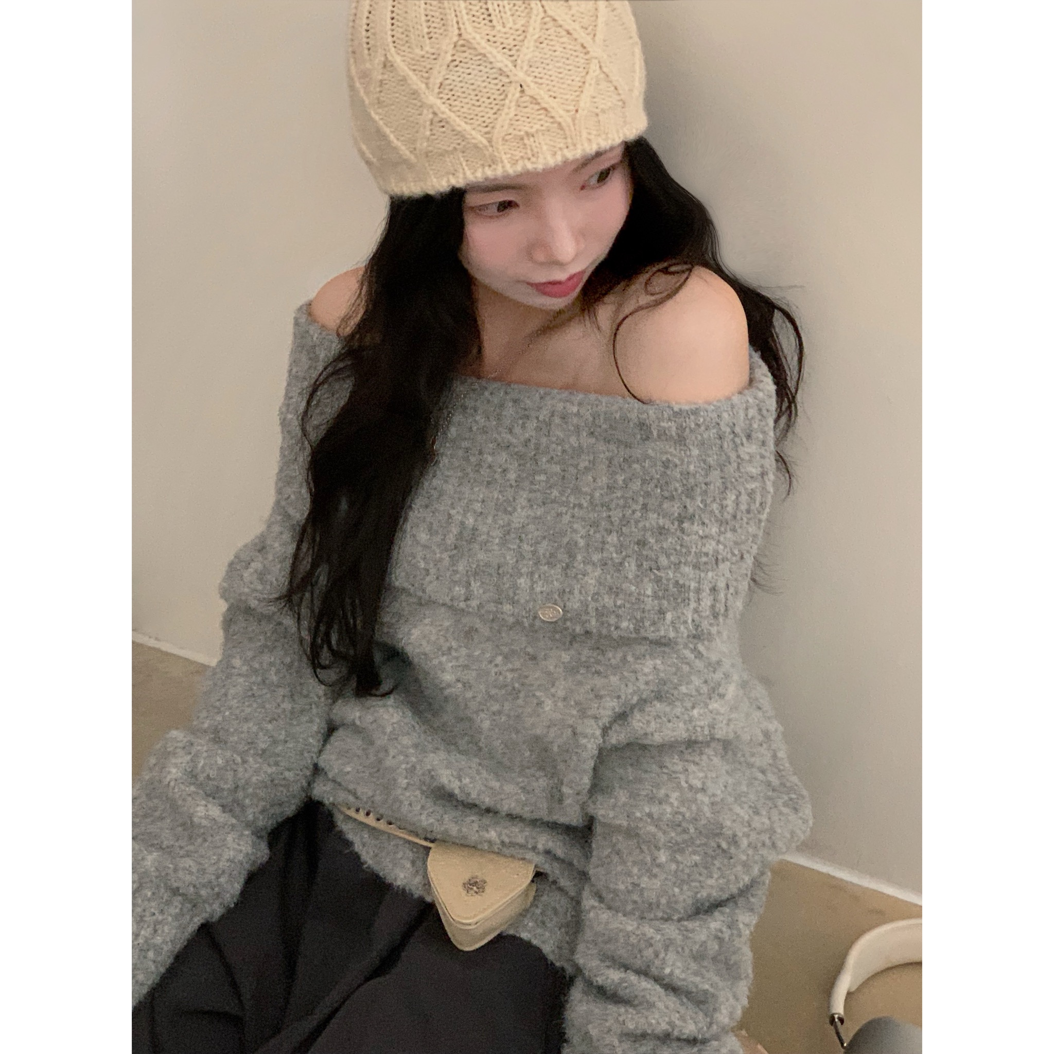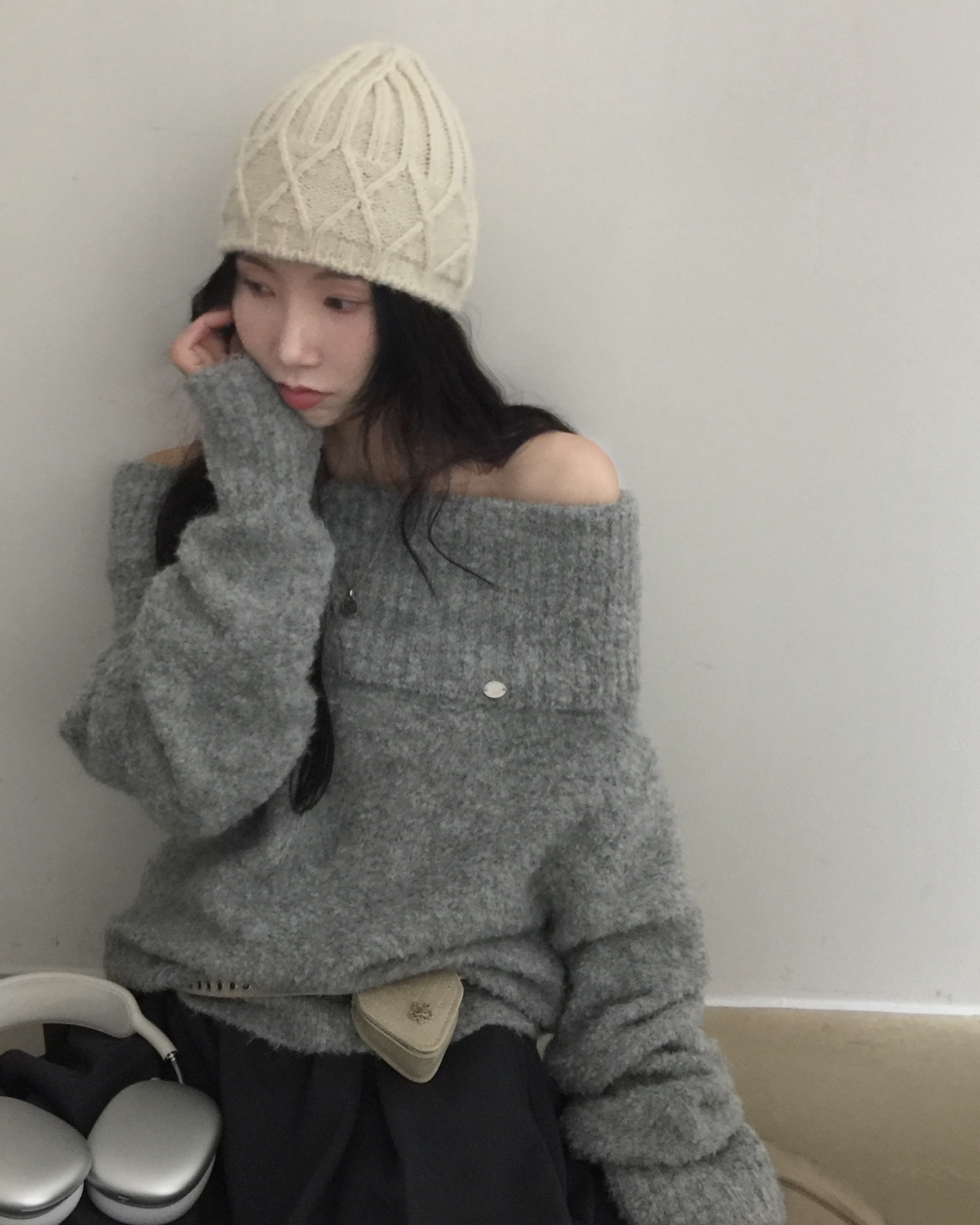 (3color)オフショルダーニット