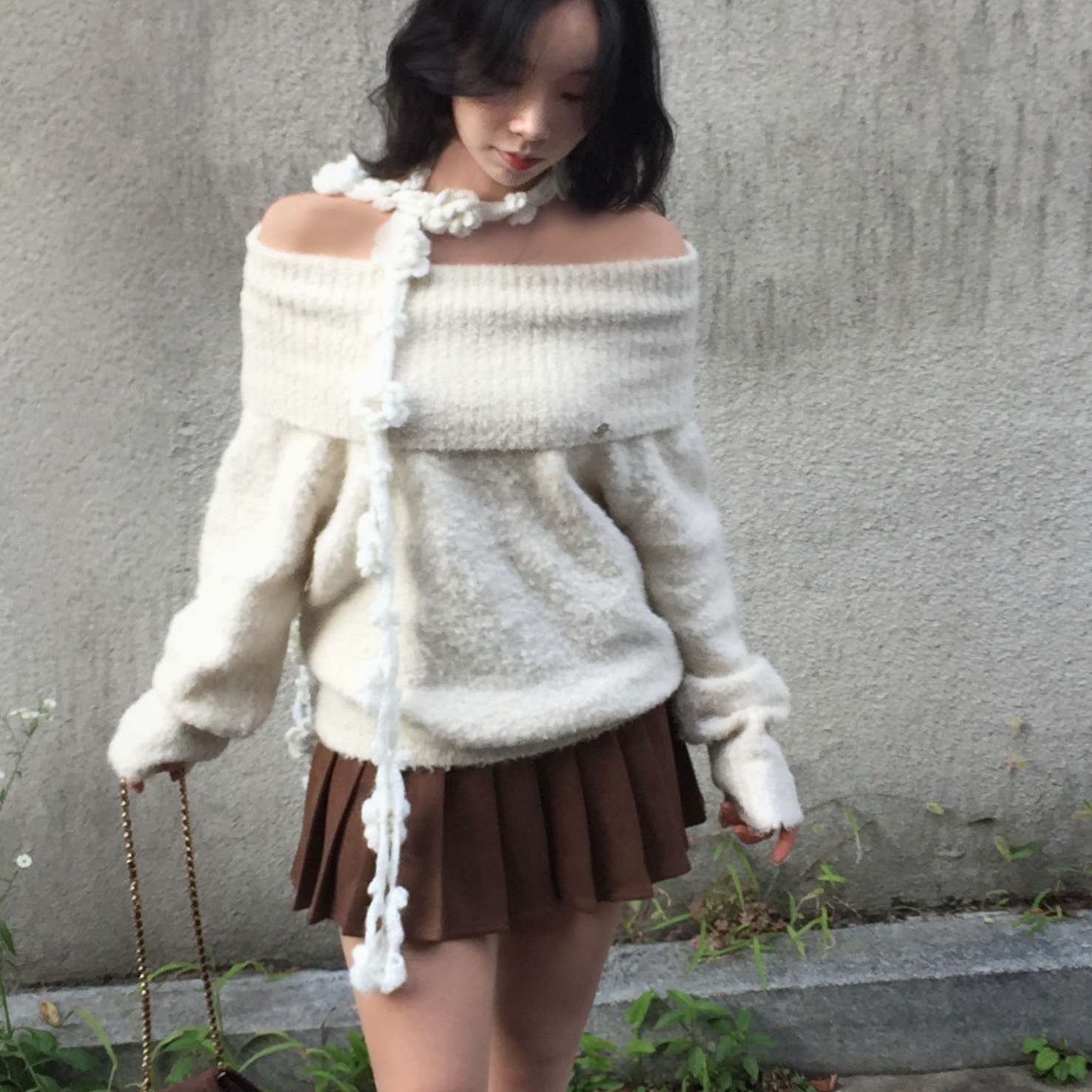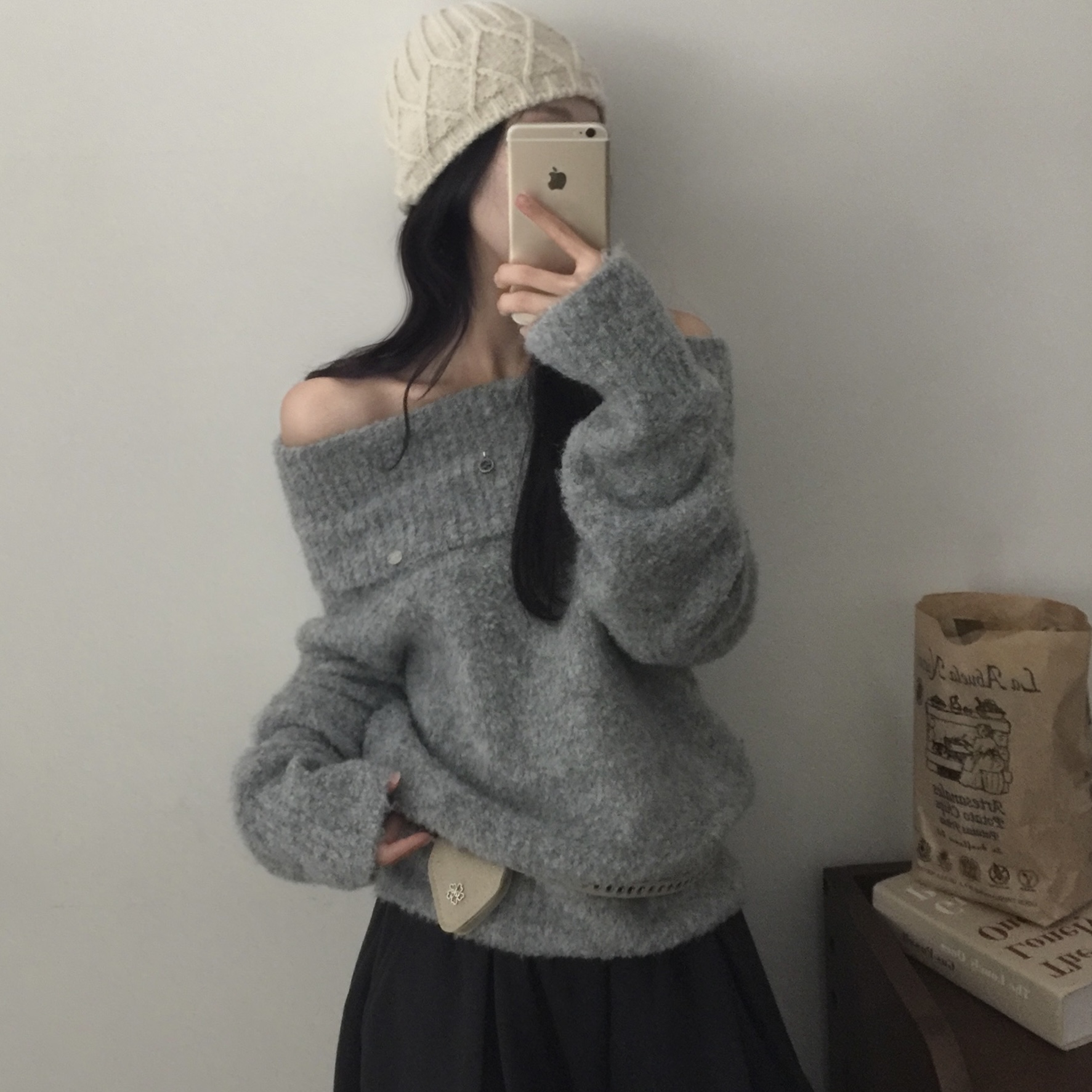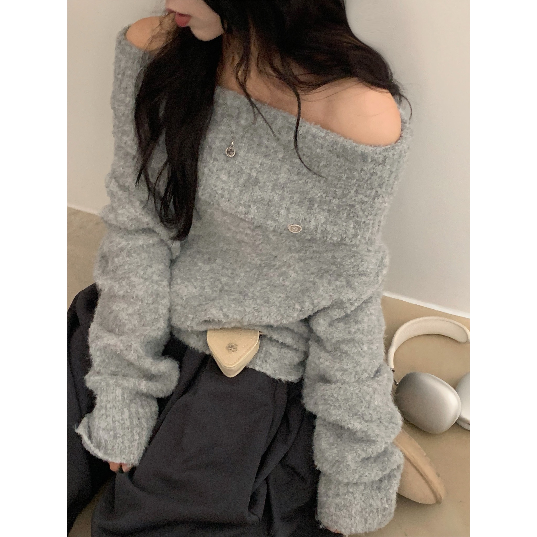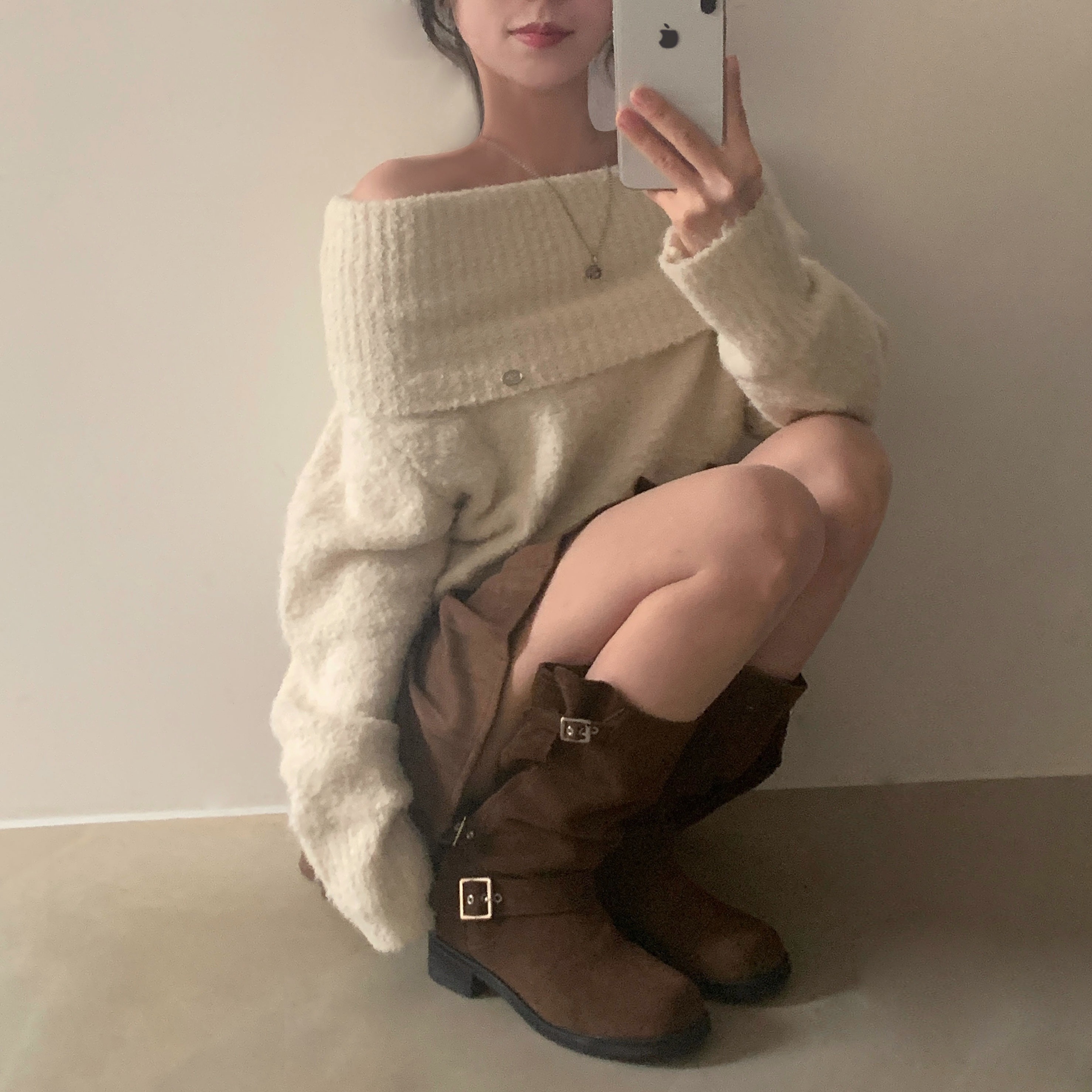 (3color)オフショルダーニット