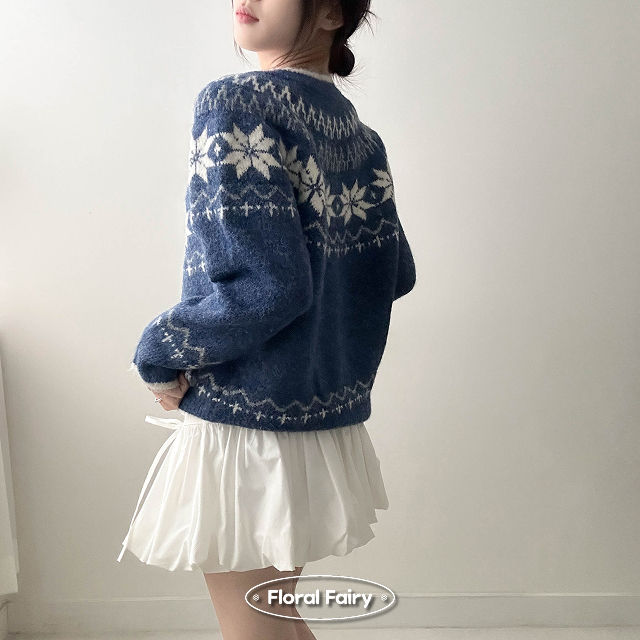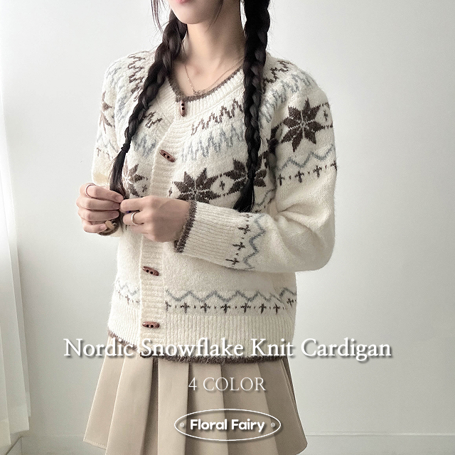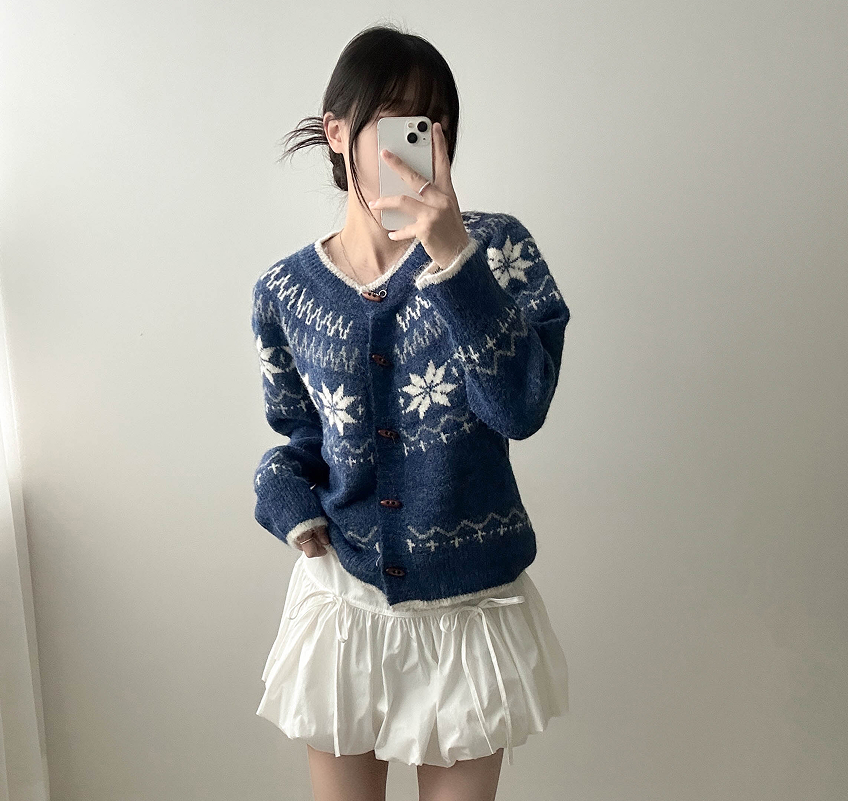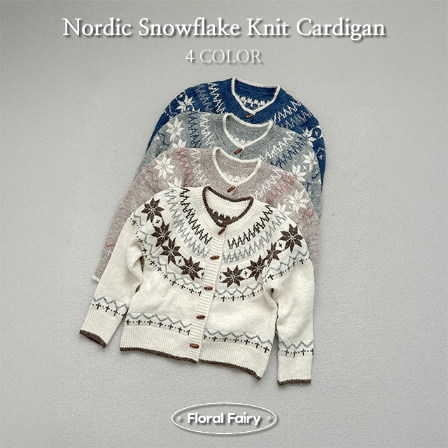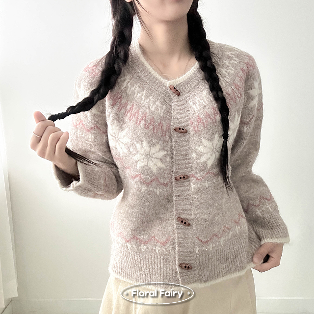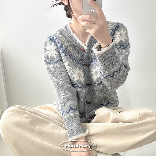 ノルディック雪柄ニットカーディガン
