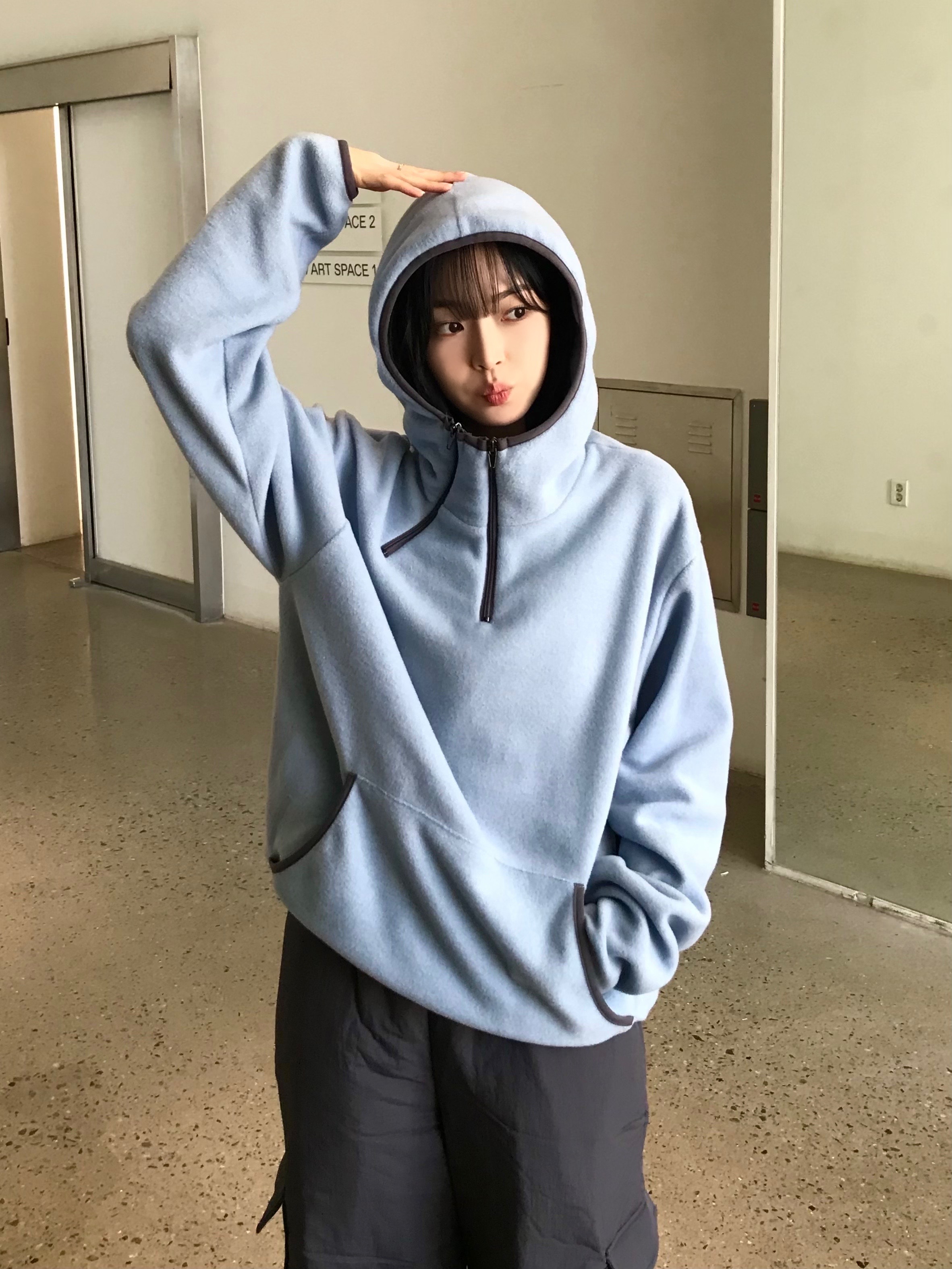 (3color)フリースハーフジップパーカー