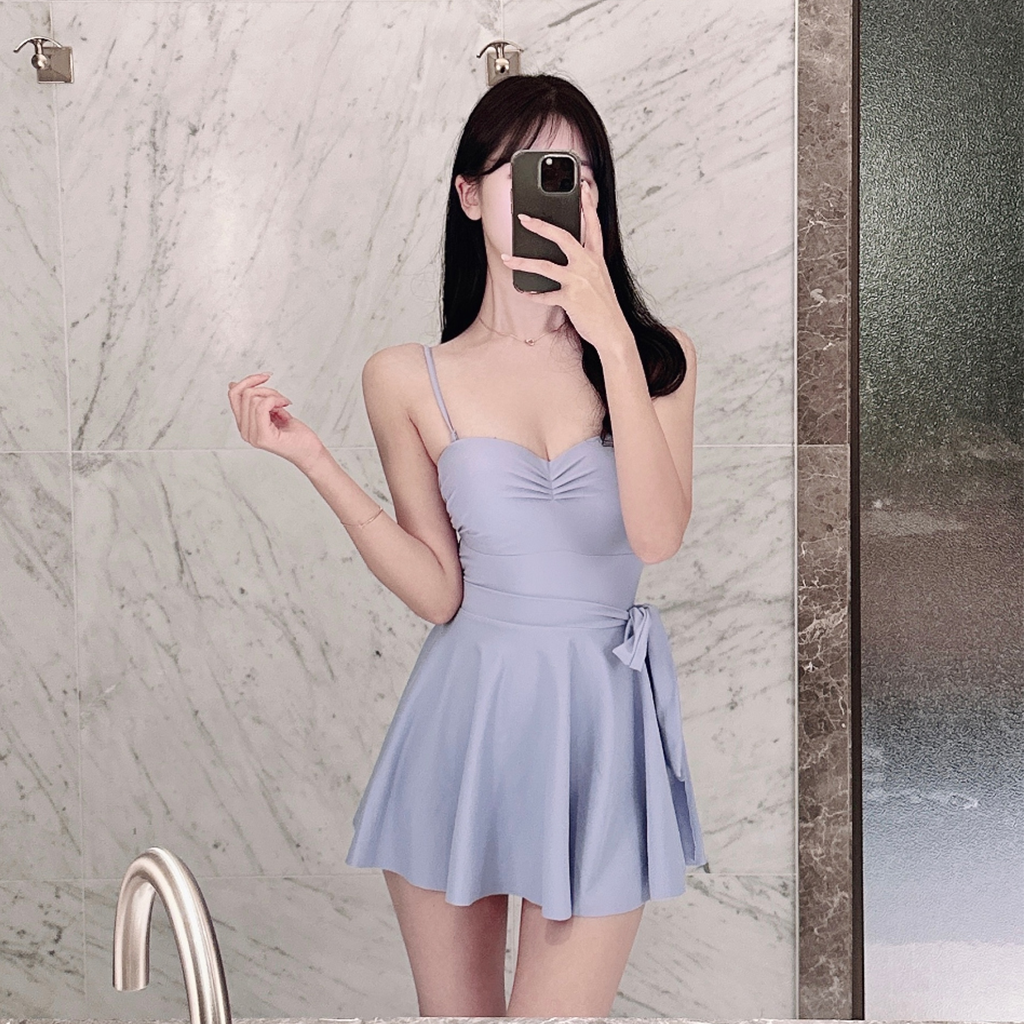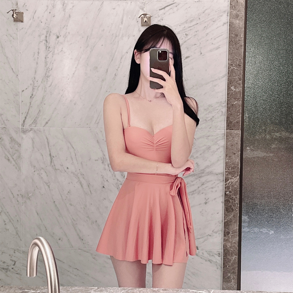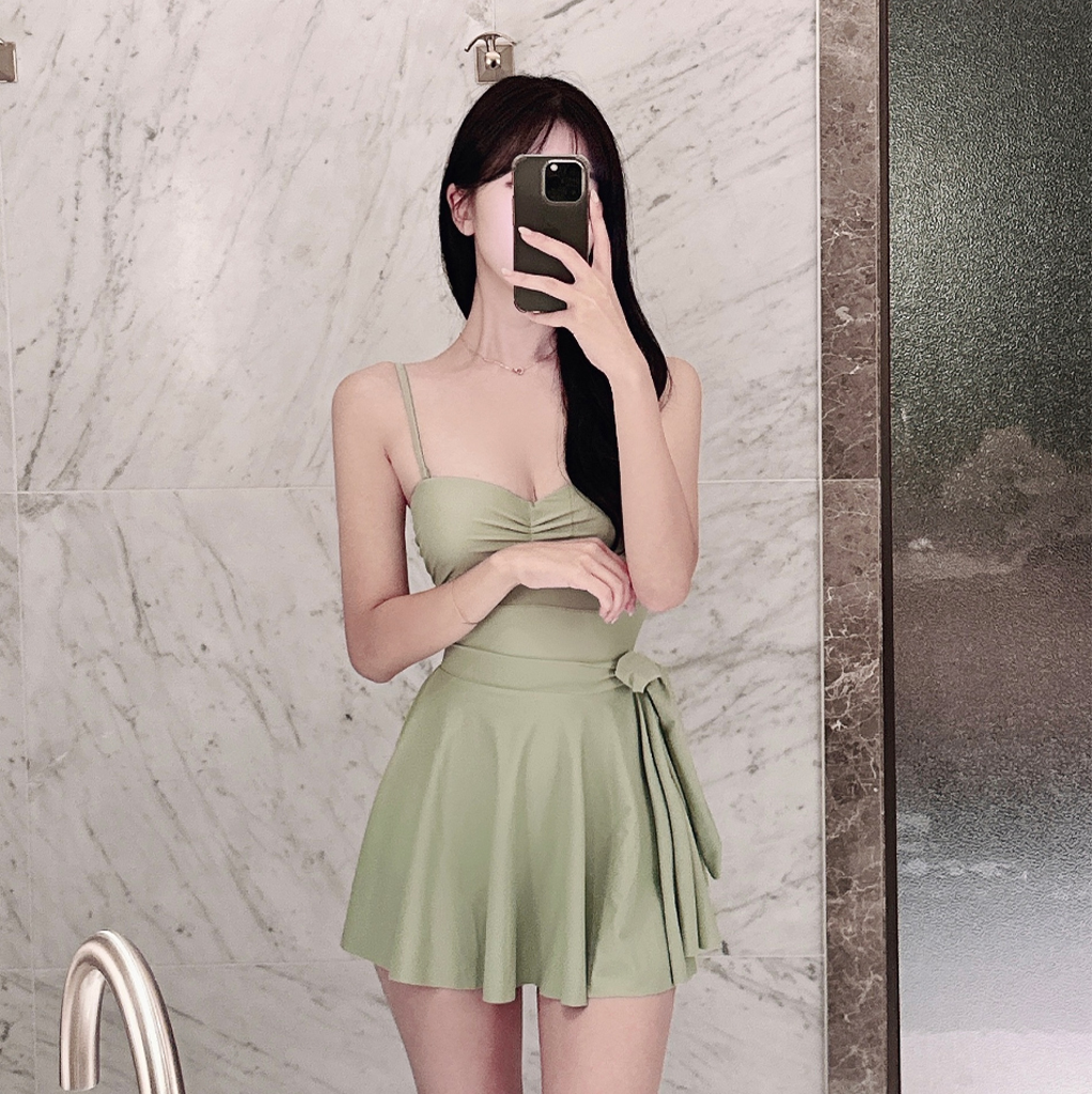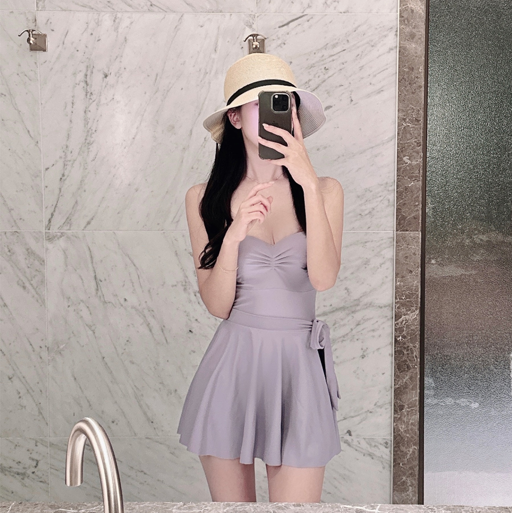 [SET] シャーリング水着モノキニ+シンプルスカートセット