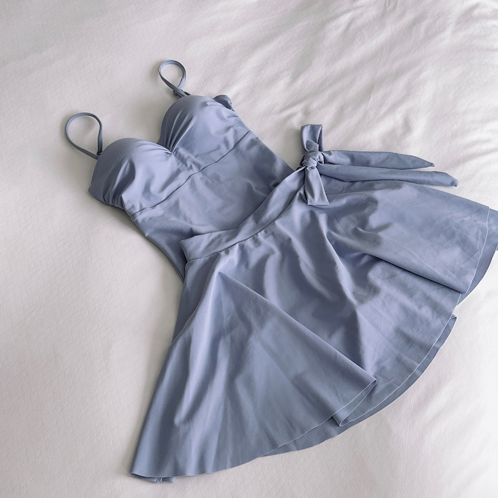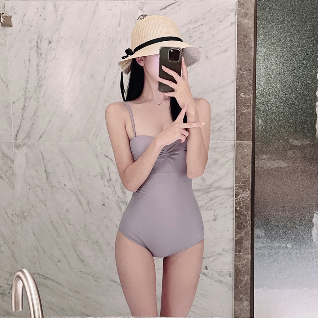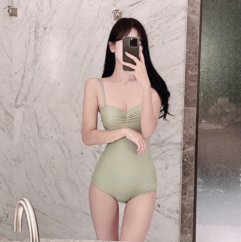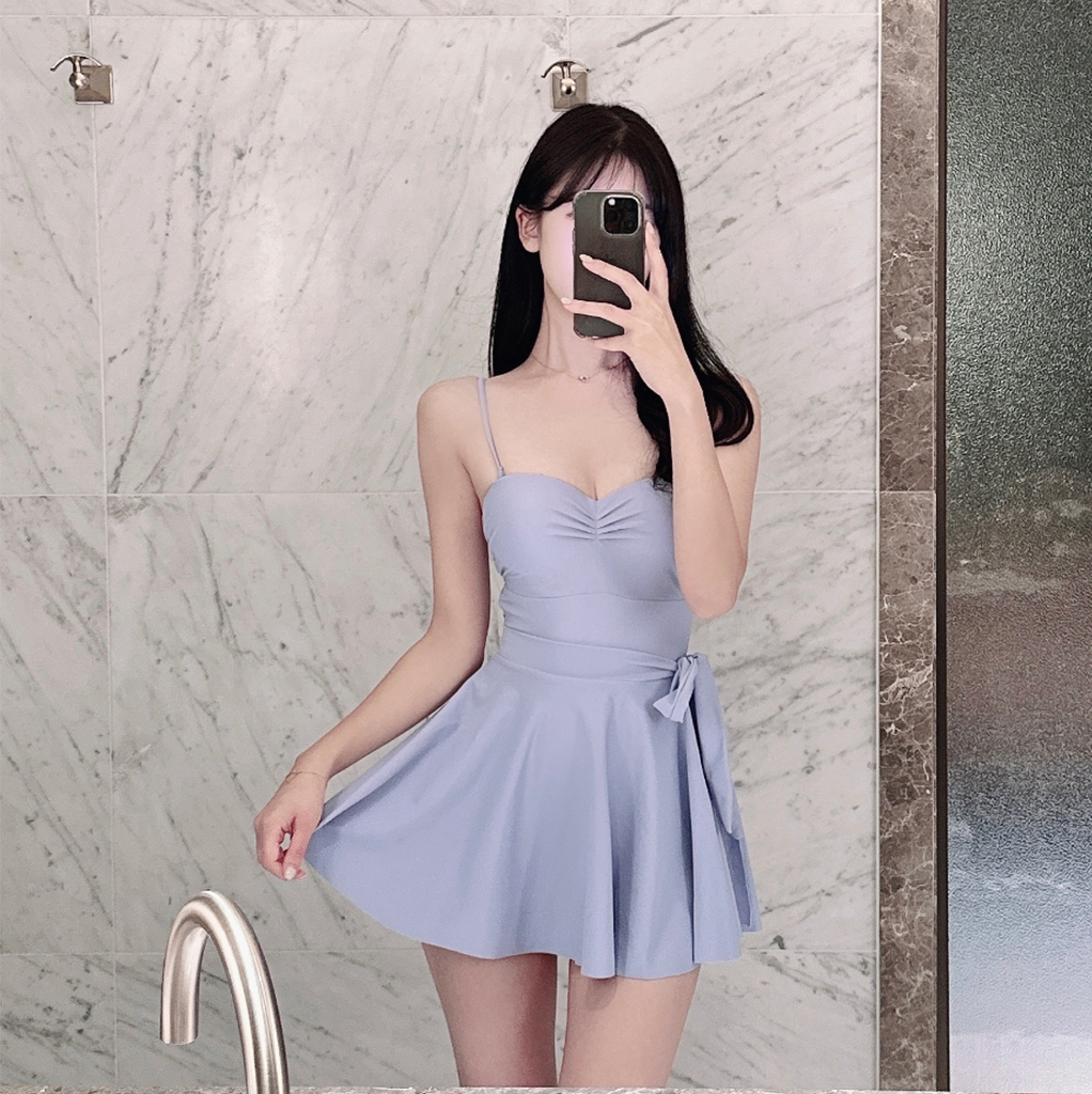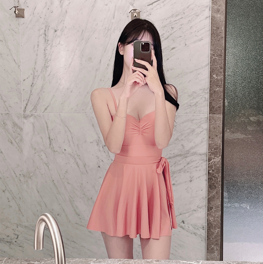 [SET] シャーリング水着モノキニ+シンプルスカートセット