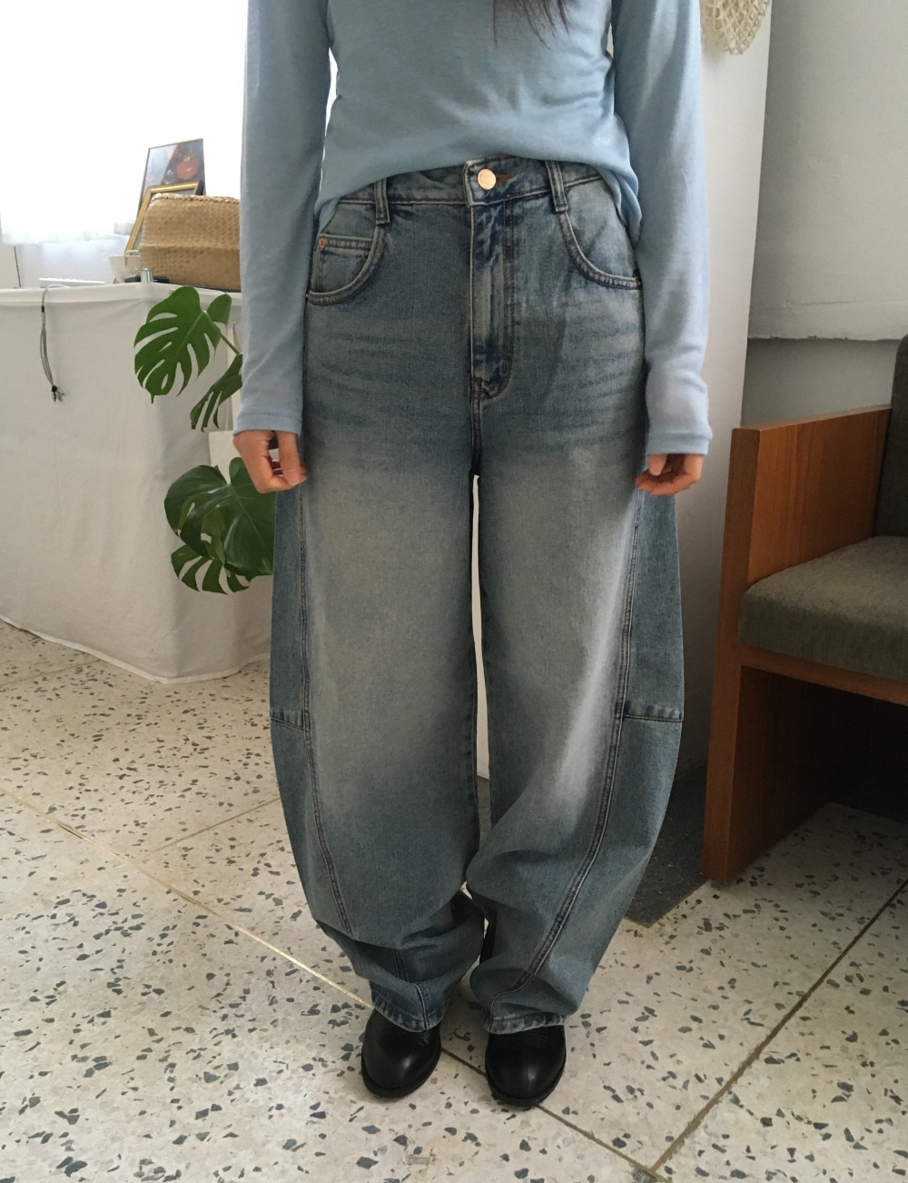 ウォッシュワイドバルーンデニムパンツ