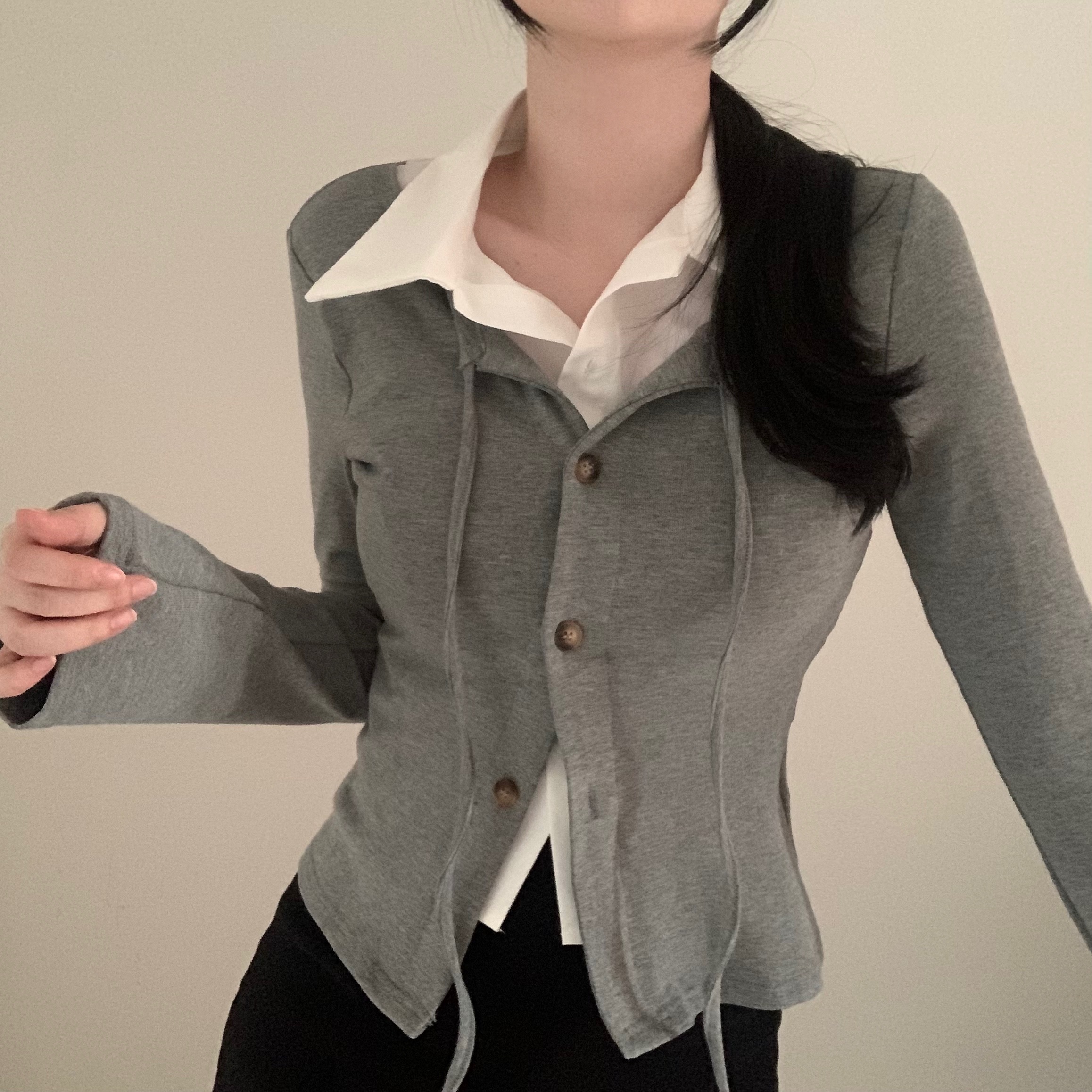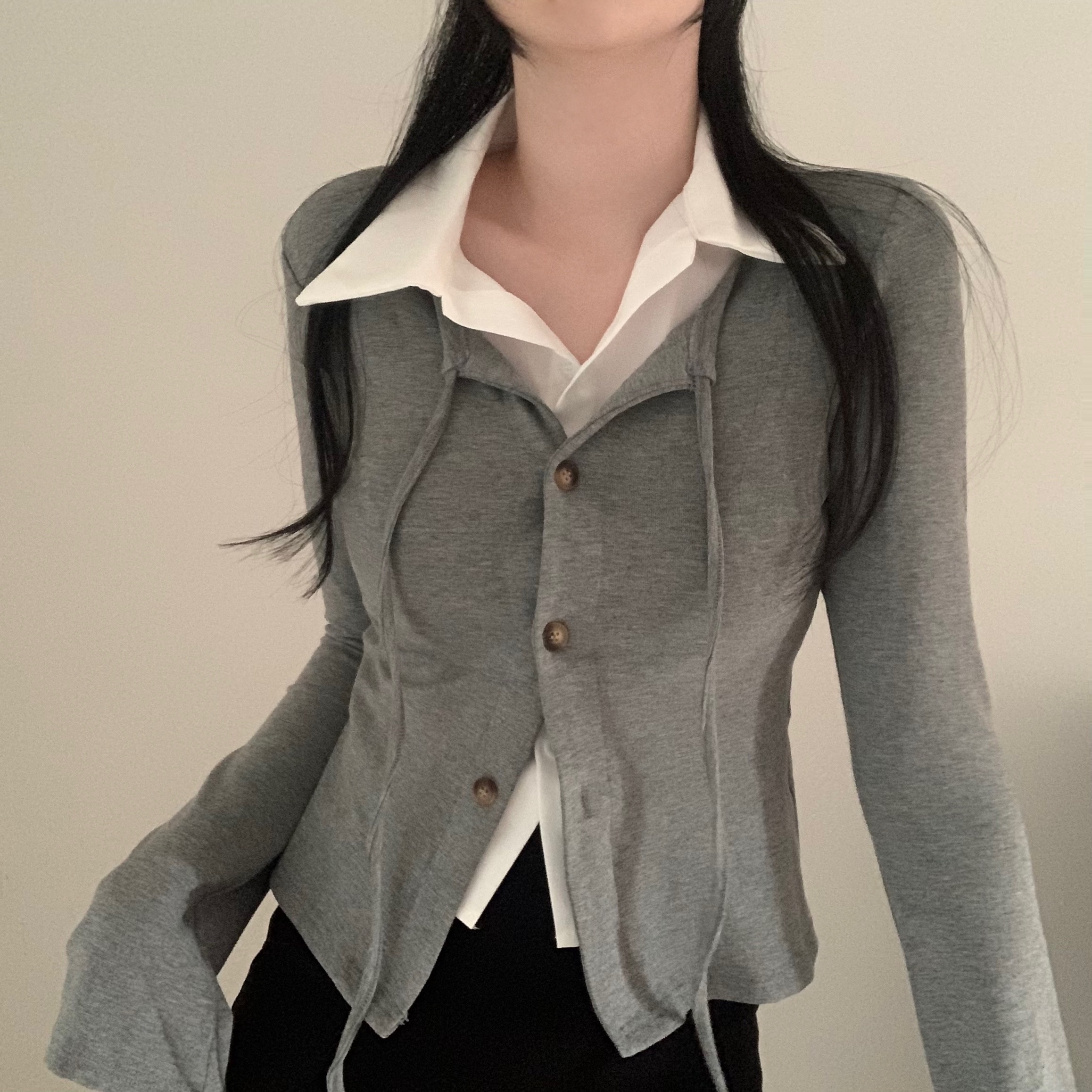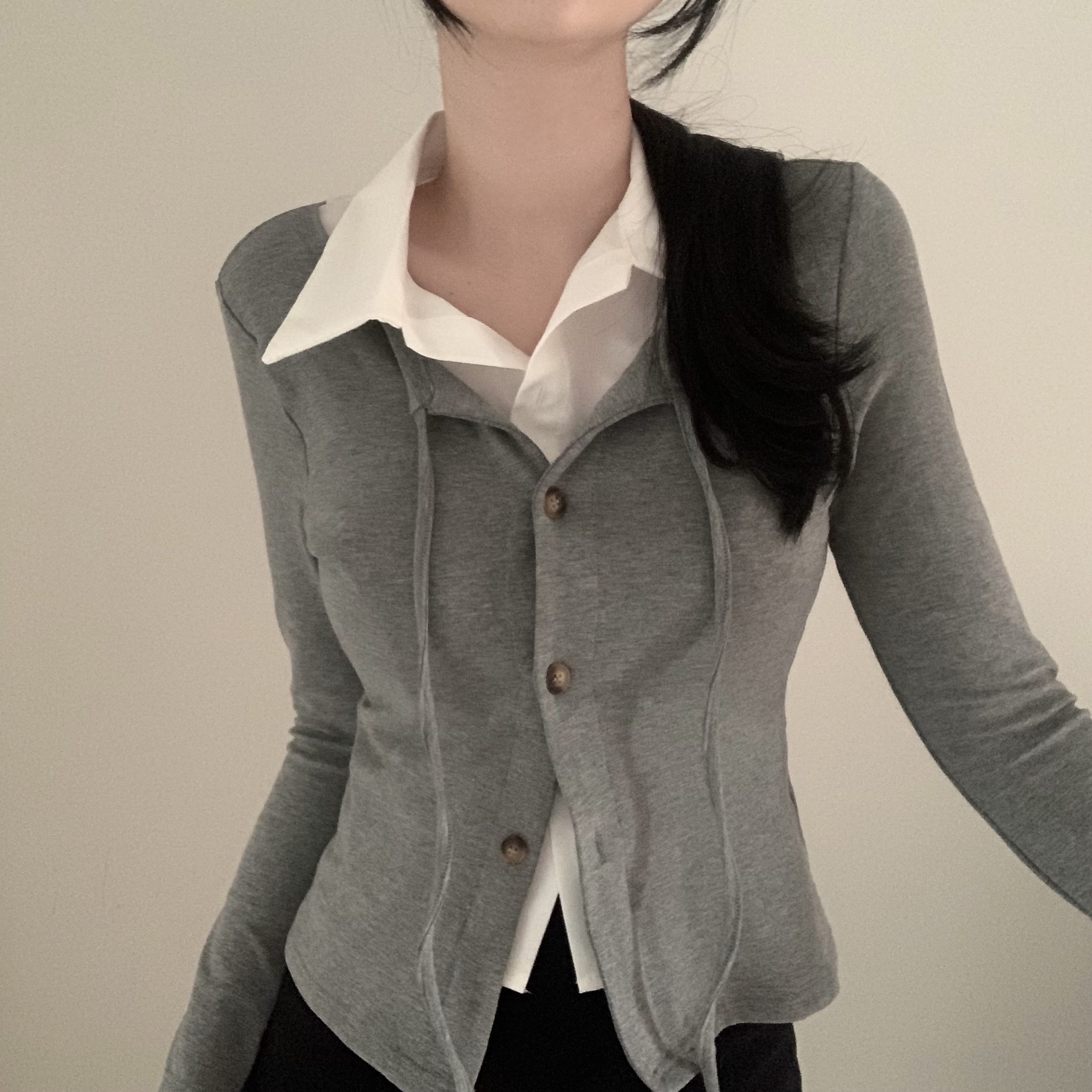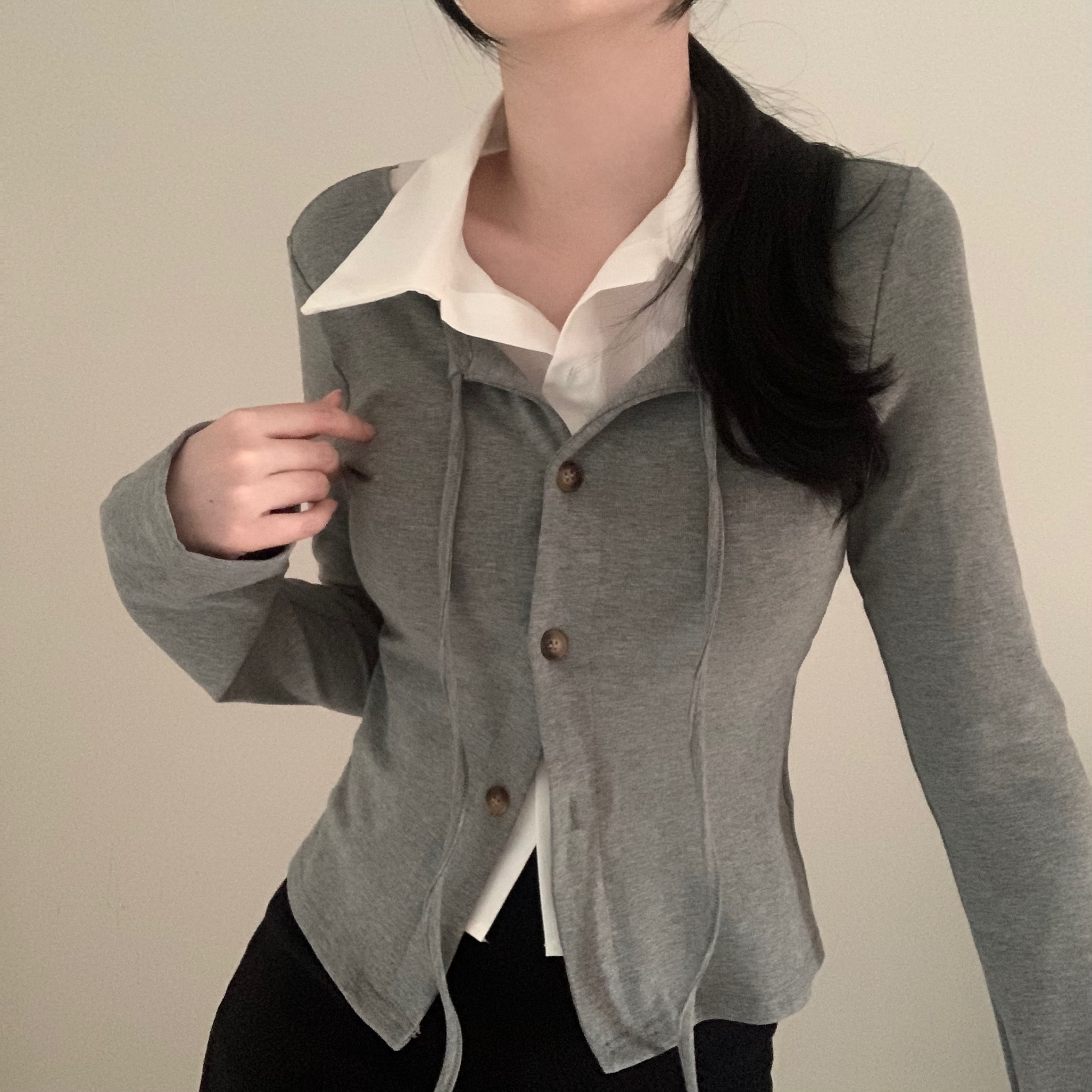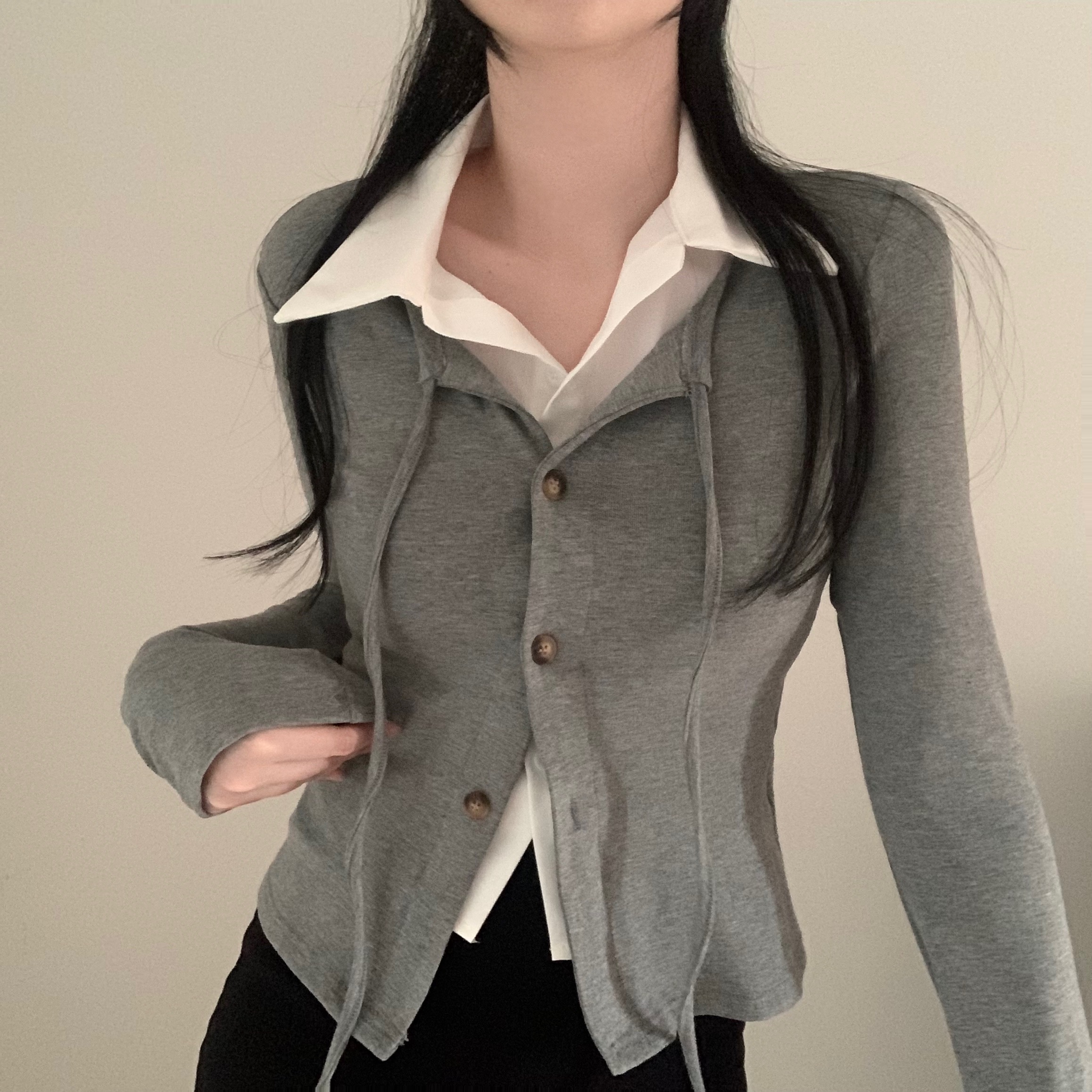 [一体型]レイヤードスリムカーディガン長袖Tシャツ