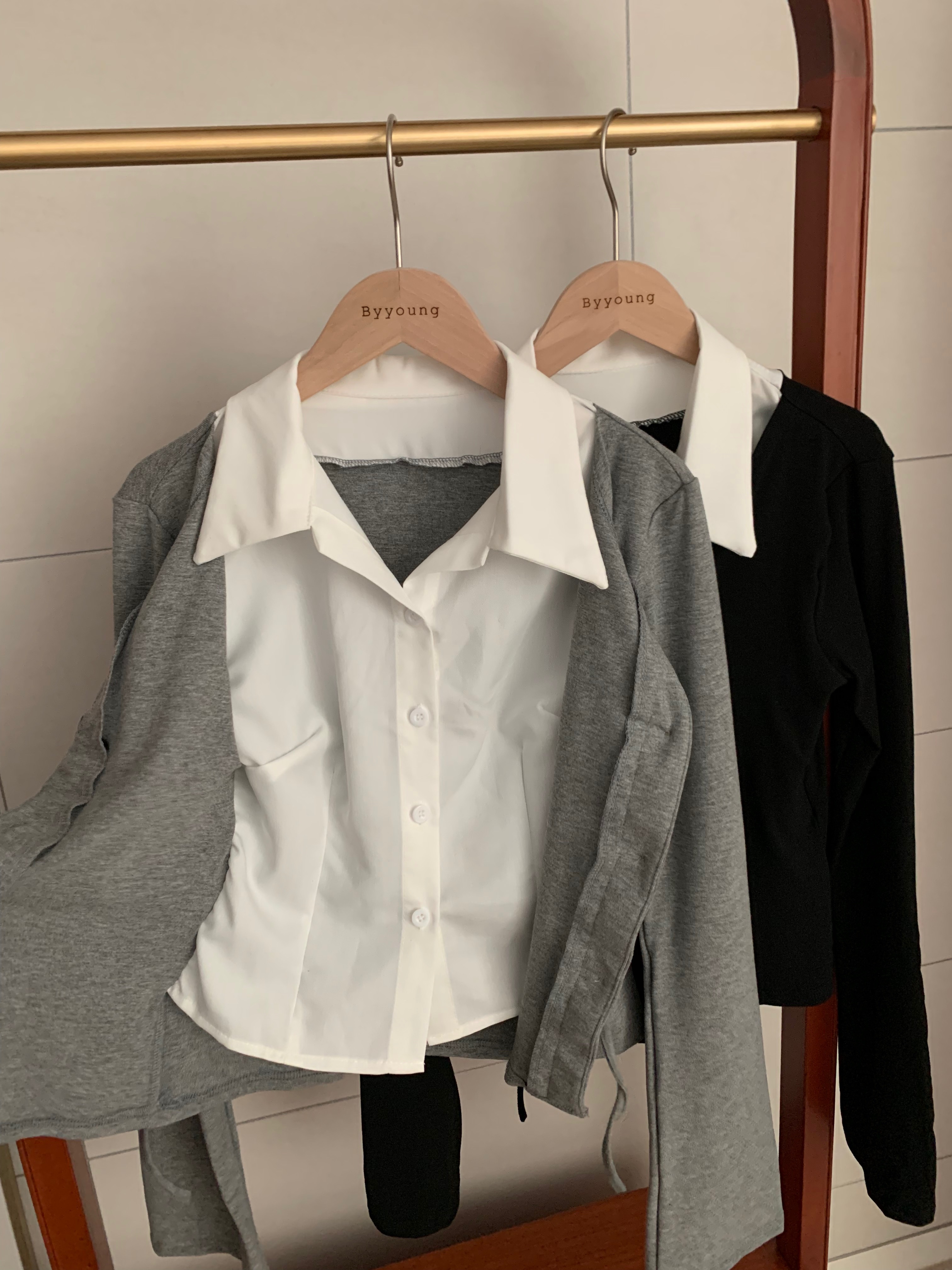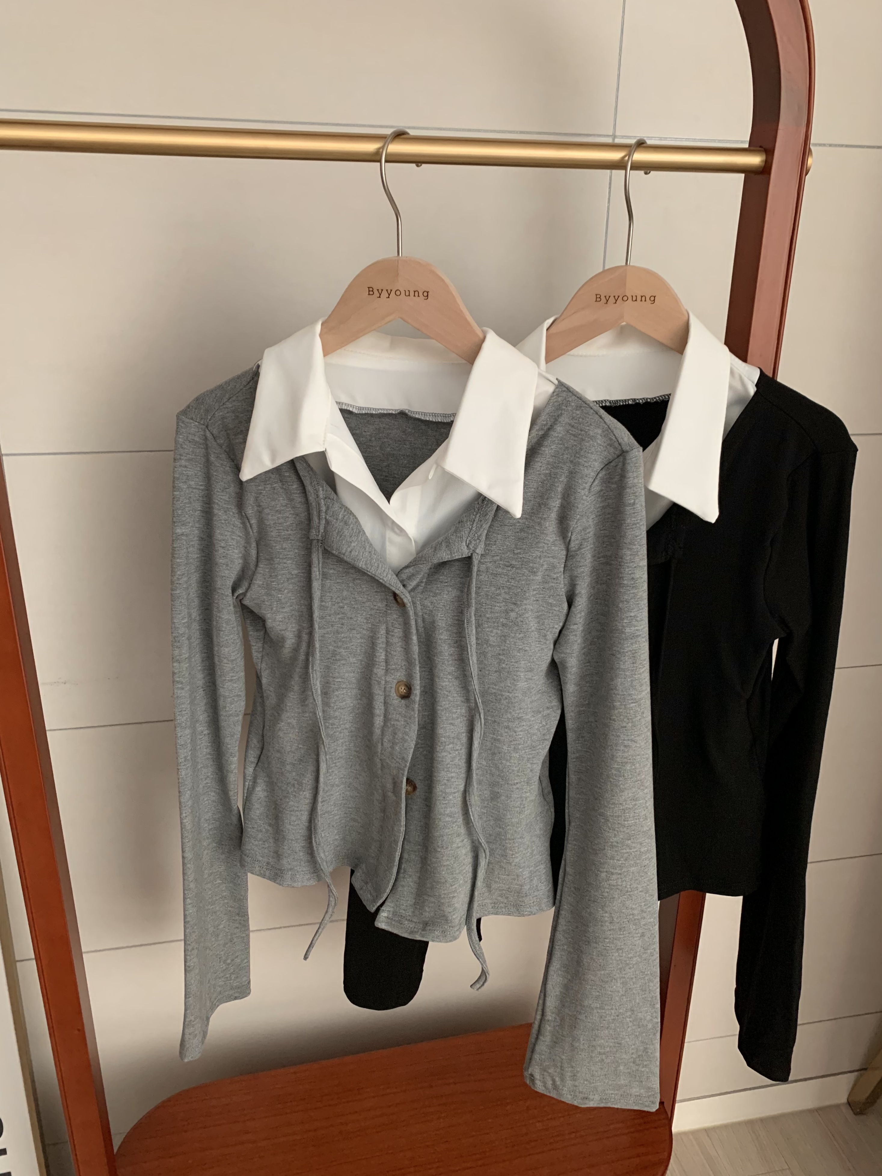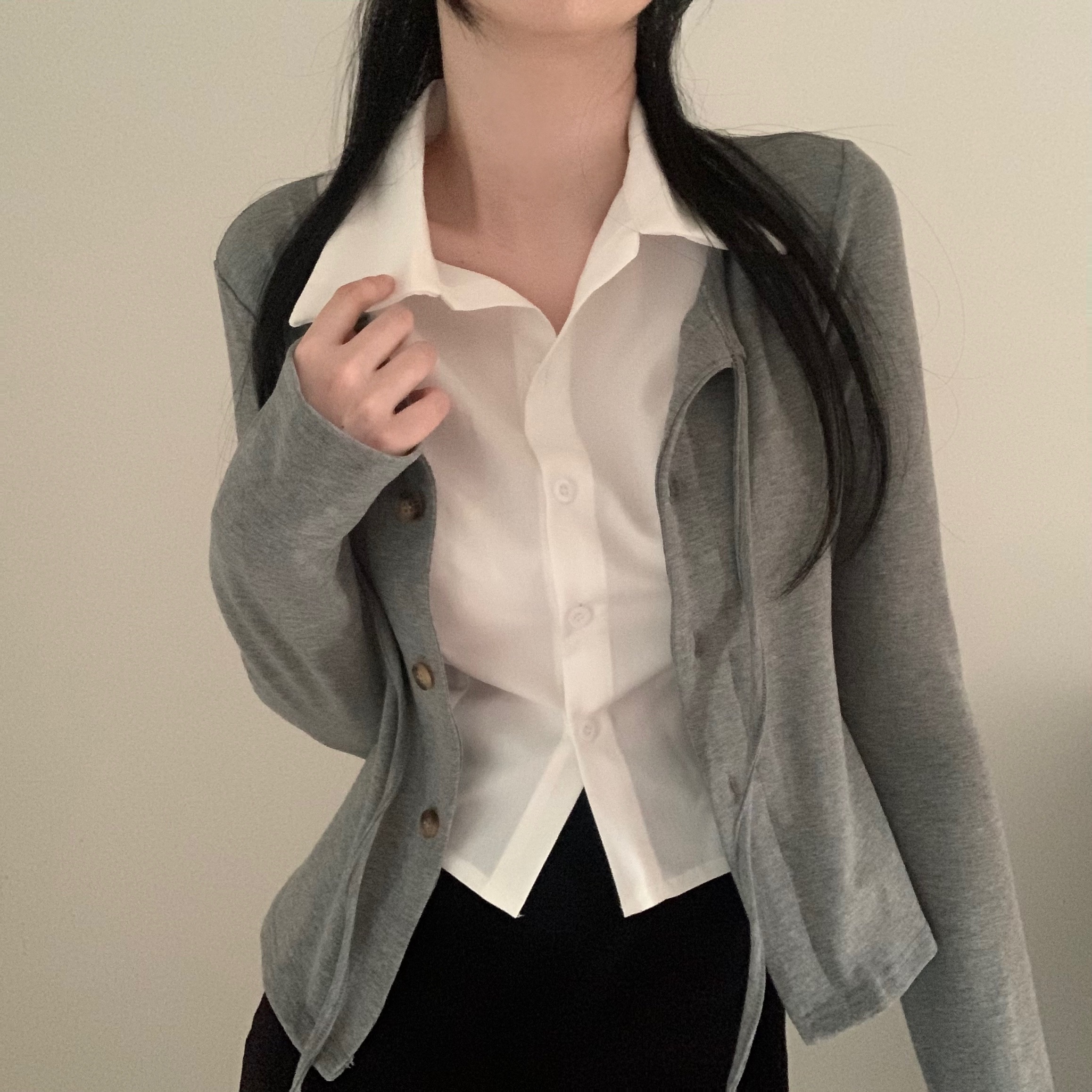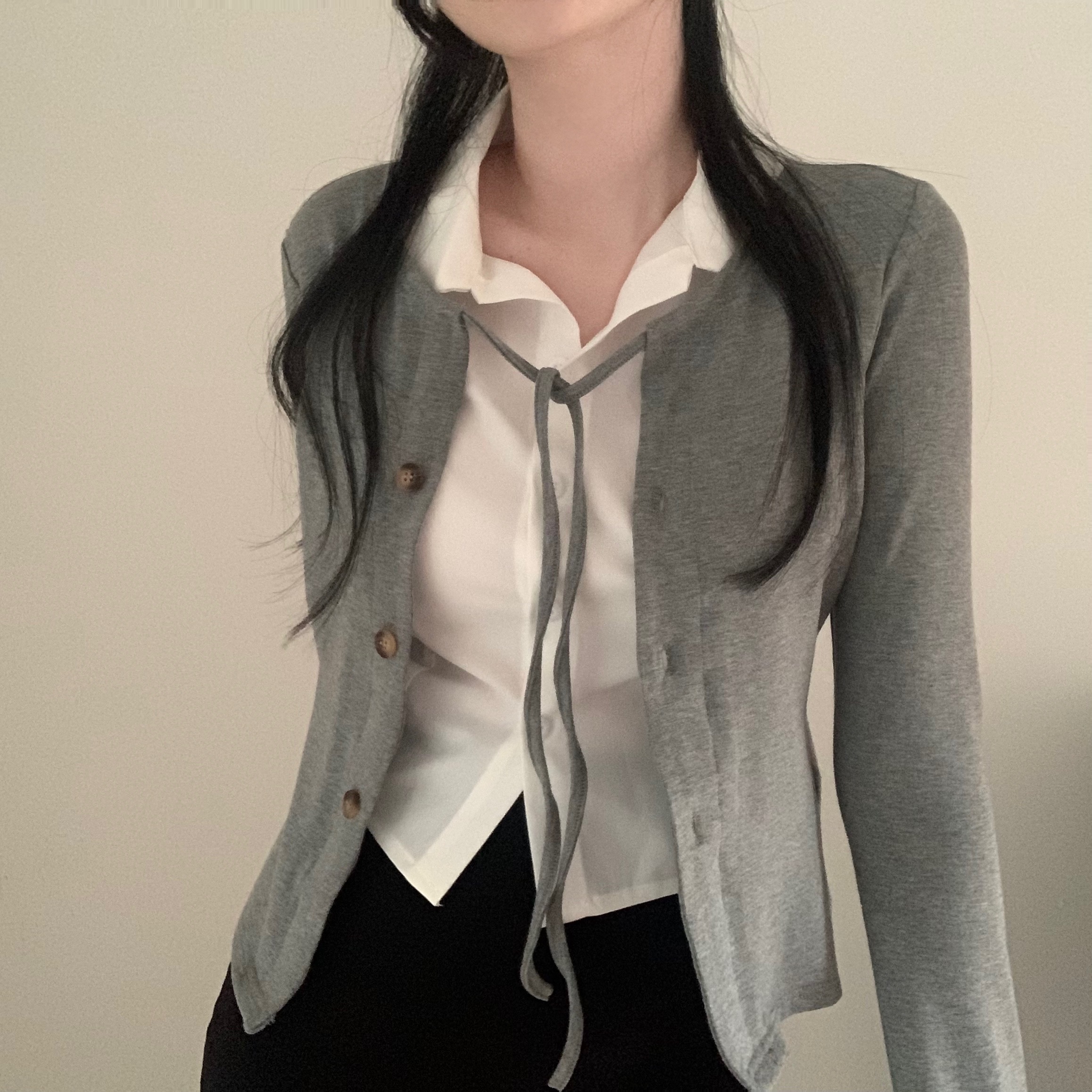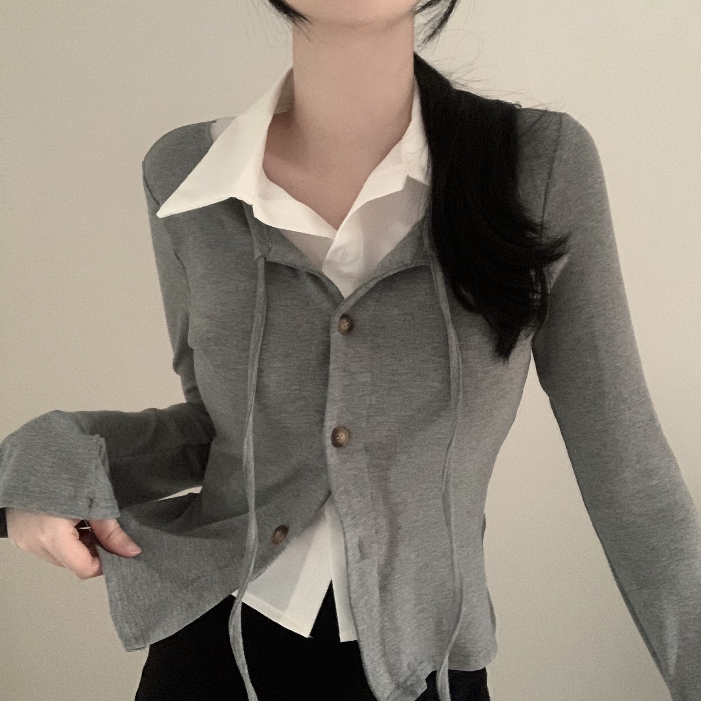 [一体型]レイヤードスリムカーディガン長袖Tシャツ