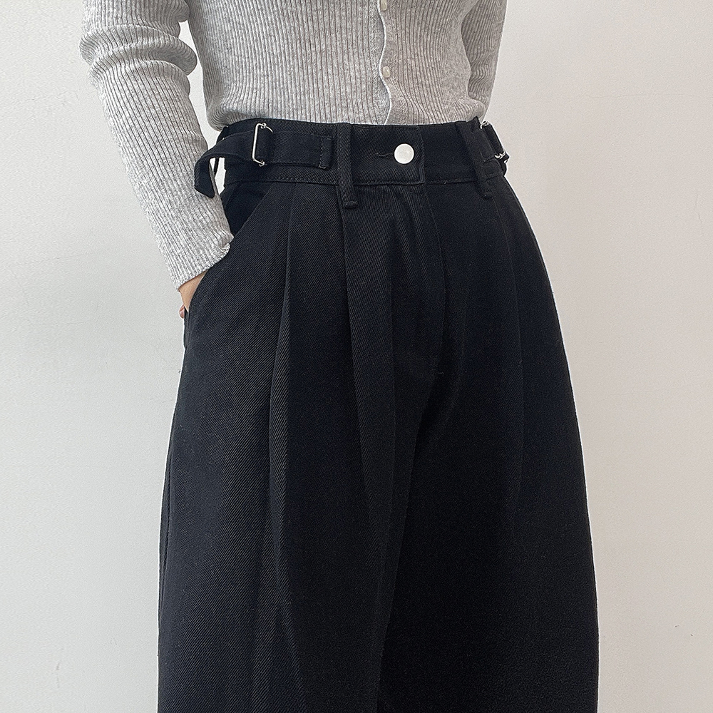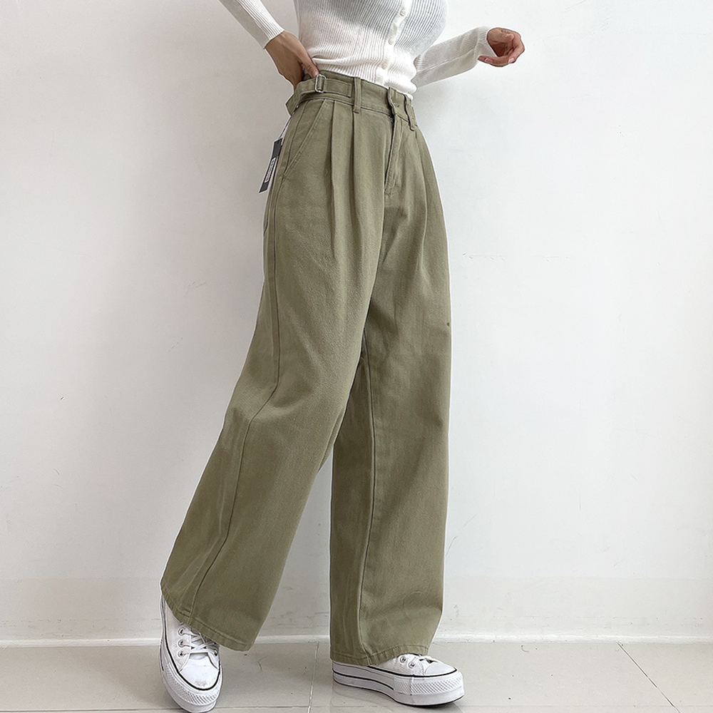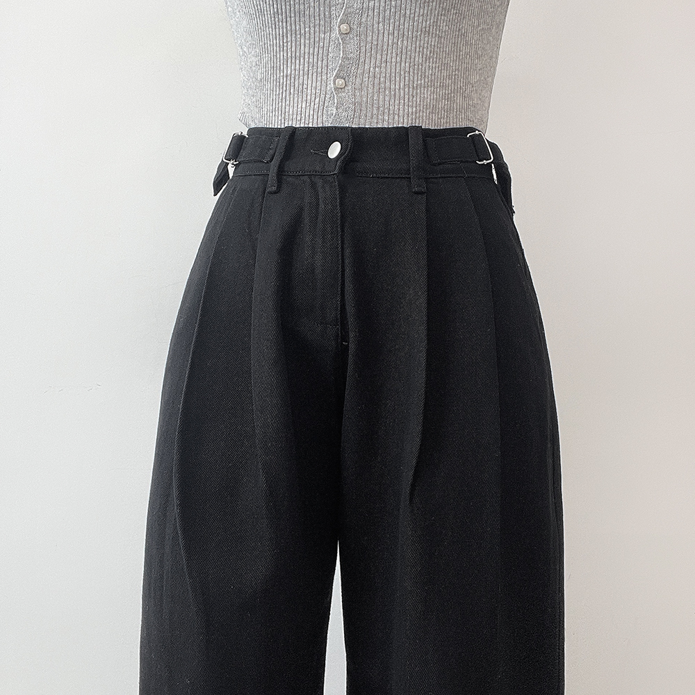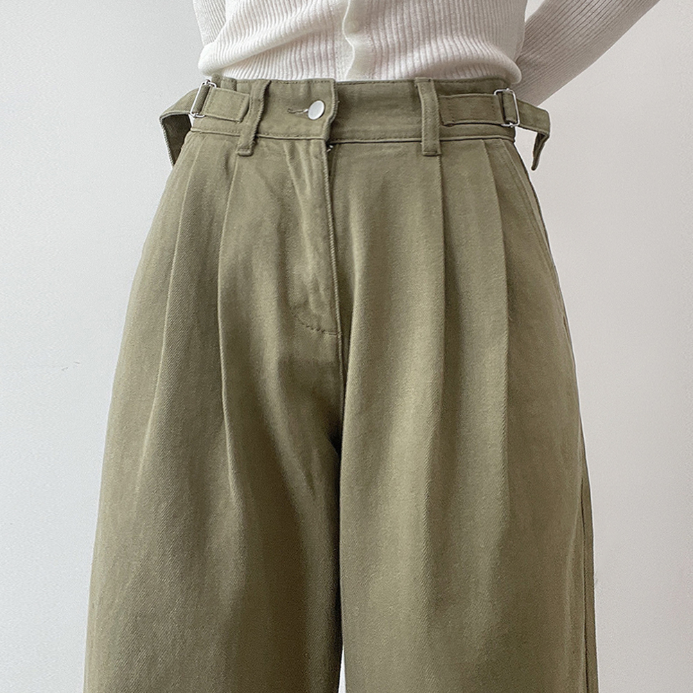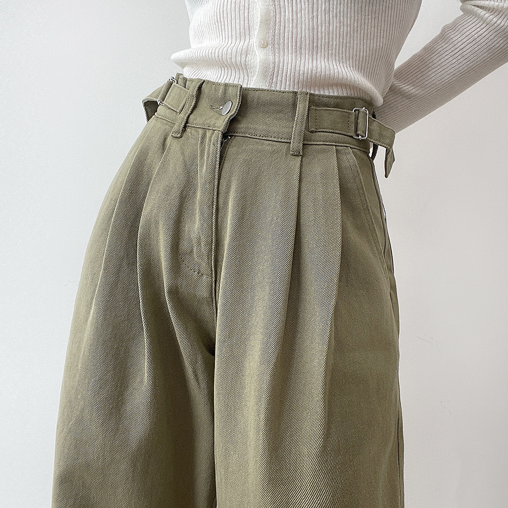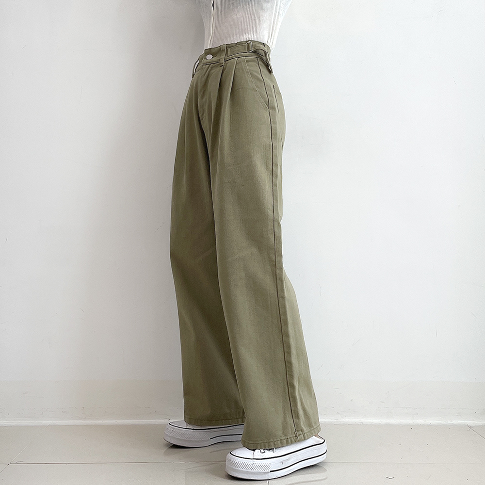 [丈選択/ウエスト調節可能] ストラップタック入りワイドコットンパンツ