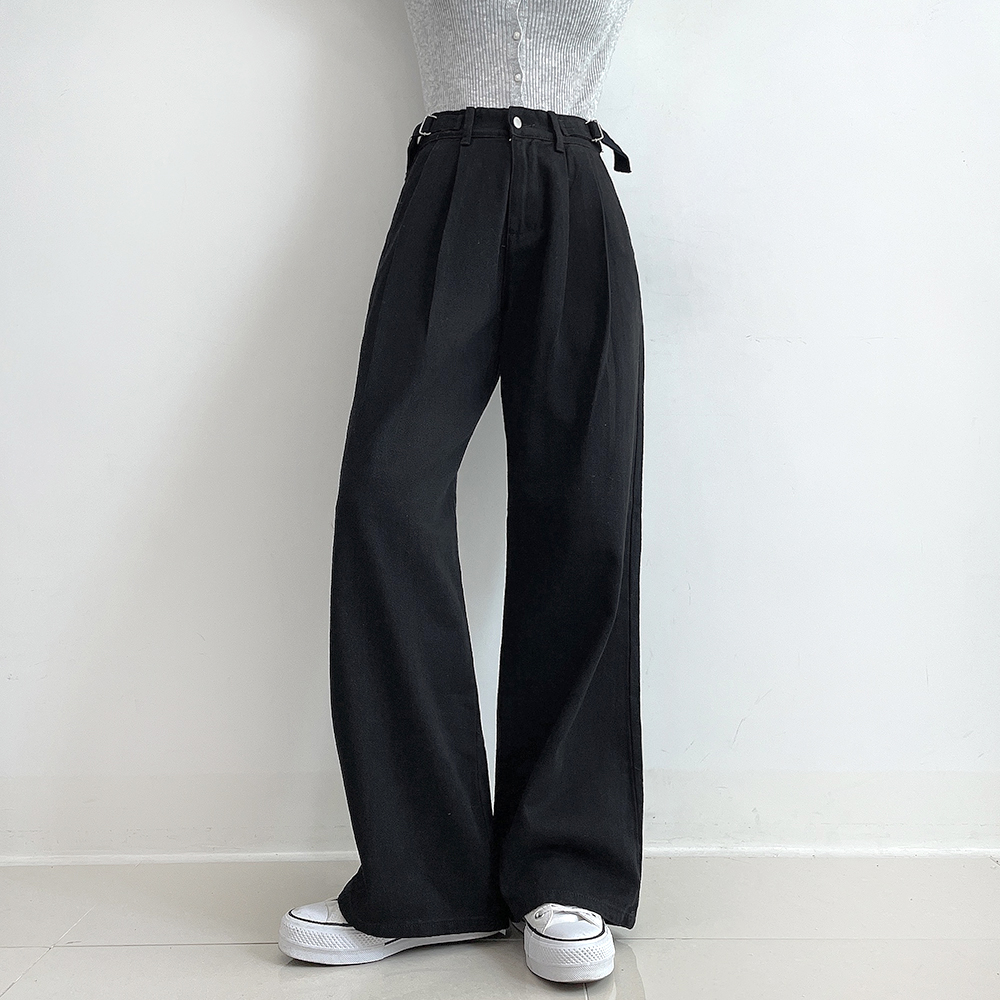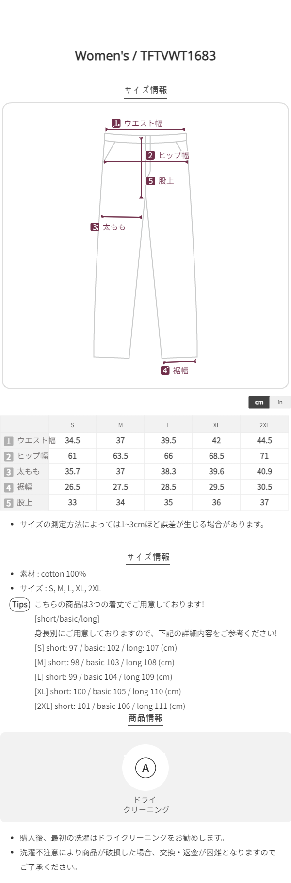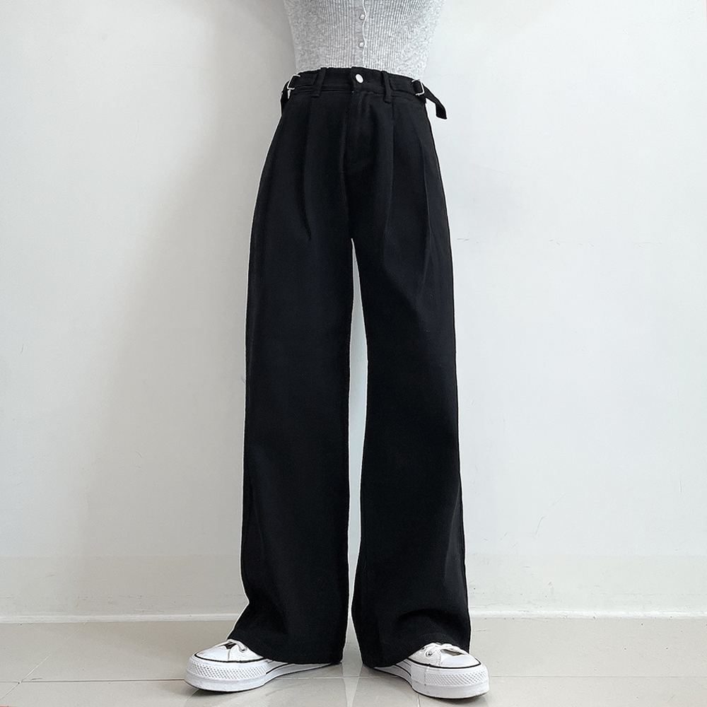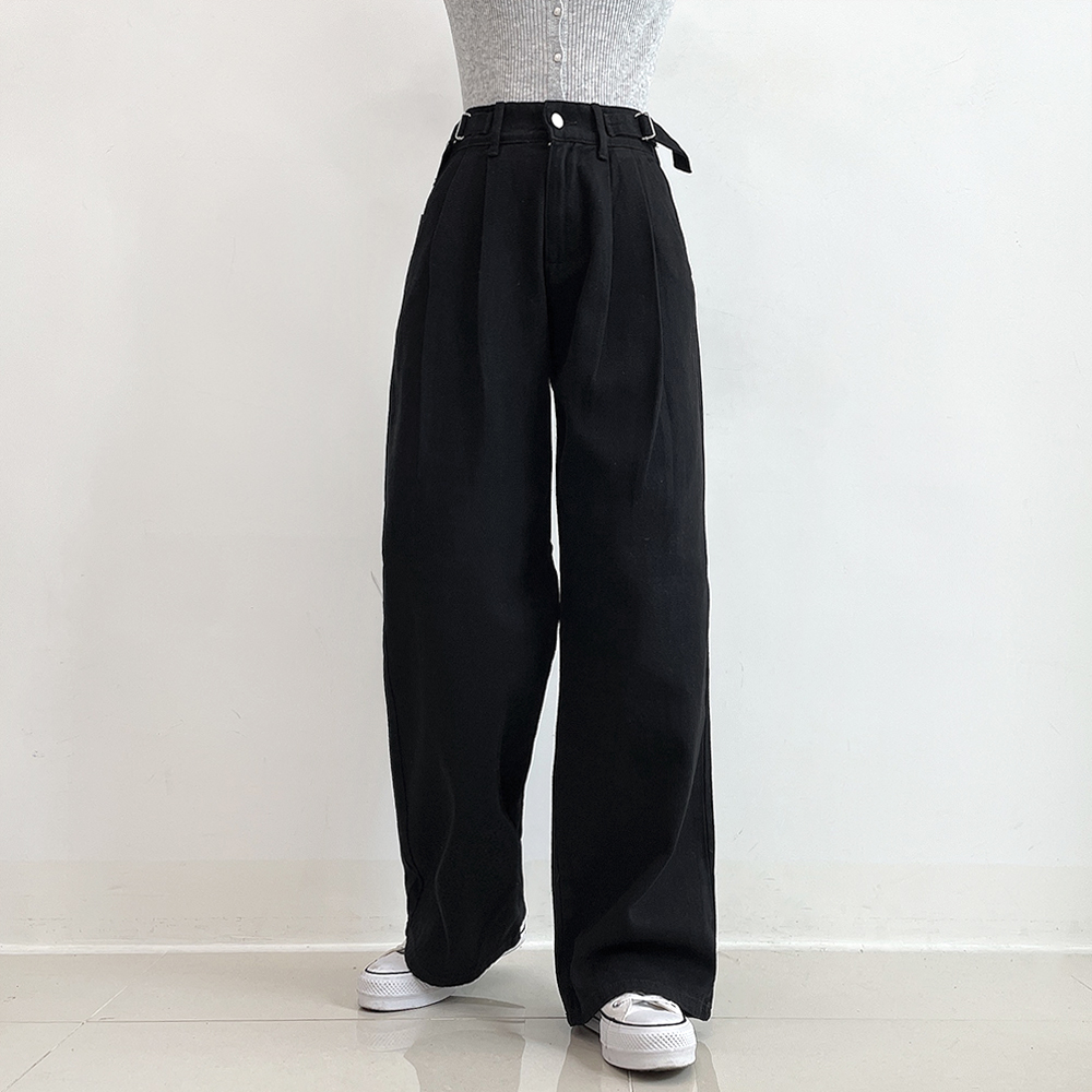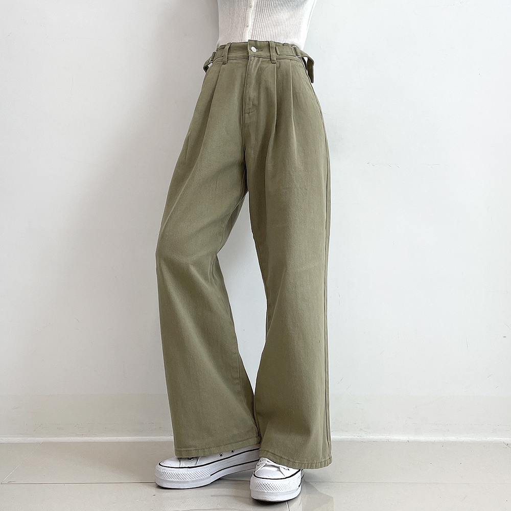 [丈選択/ウエスト調節可能] ストラップタック入りワイドコットンパンツ